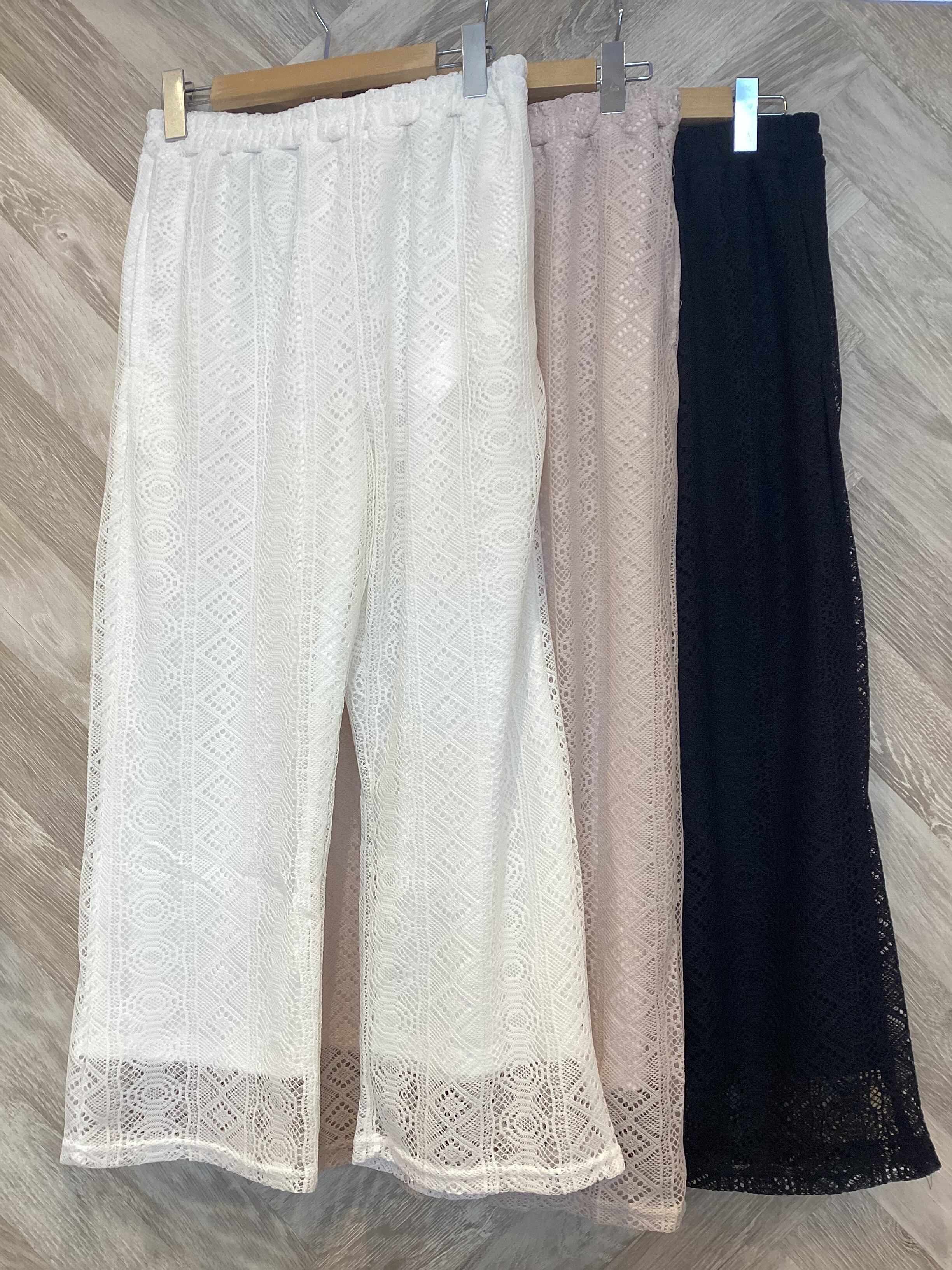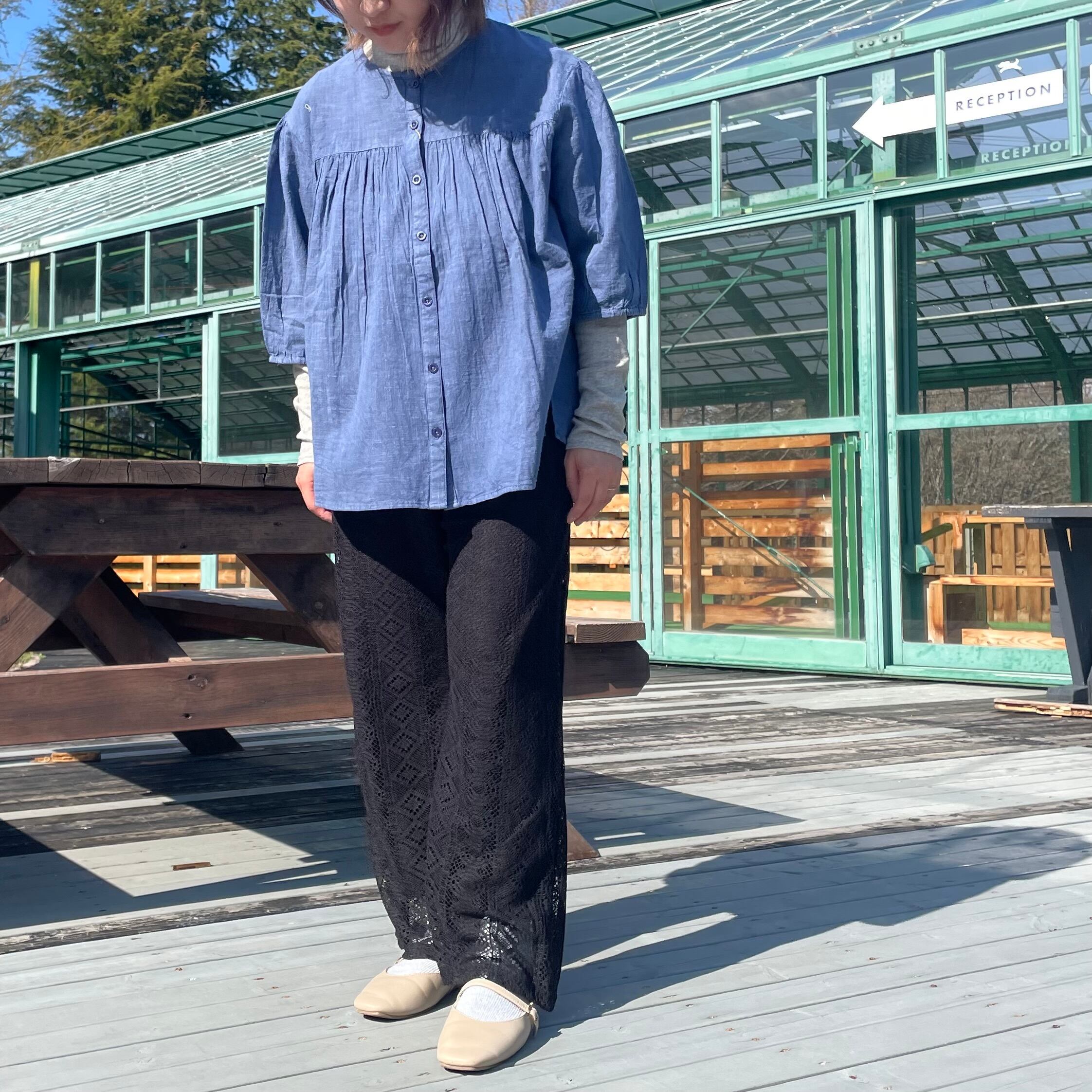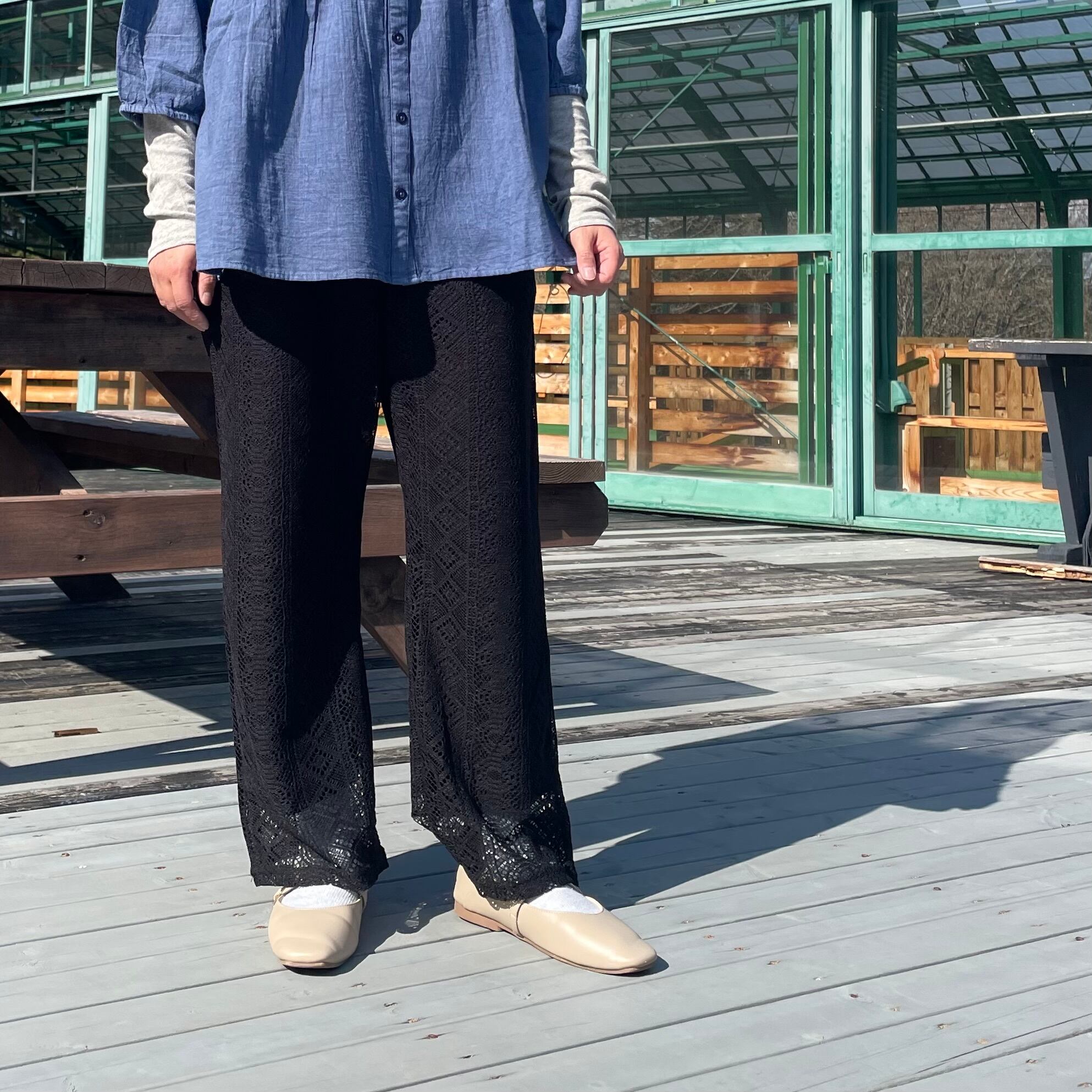 総レースの軽やかなパンツで季節感のあるコーディネートが完成します