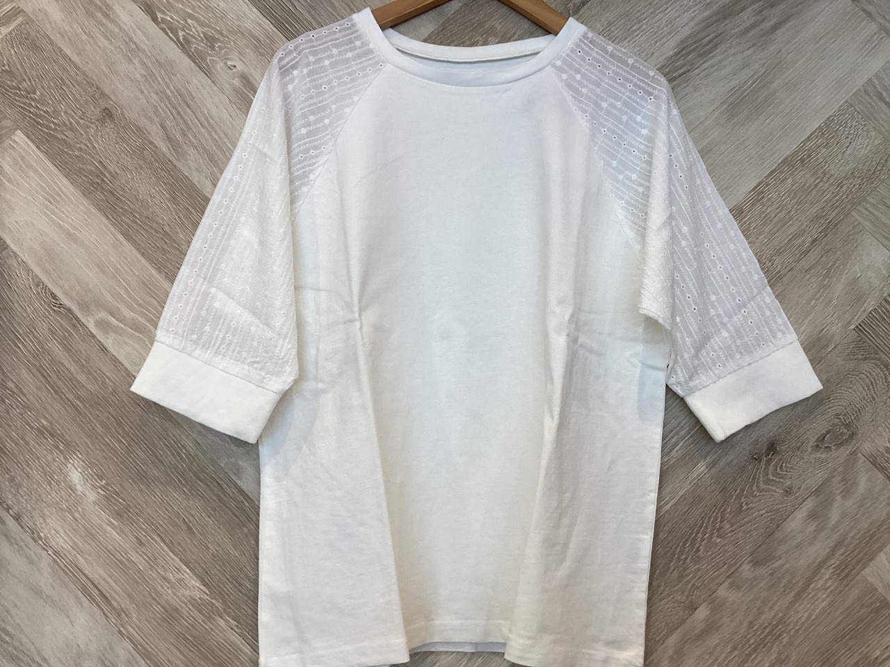 ラグランの袖部分が刺繍になっているちょっぴりフェミニンな雰囲気のプルオーバー