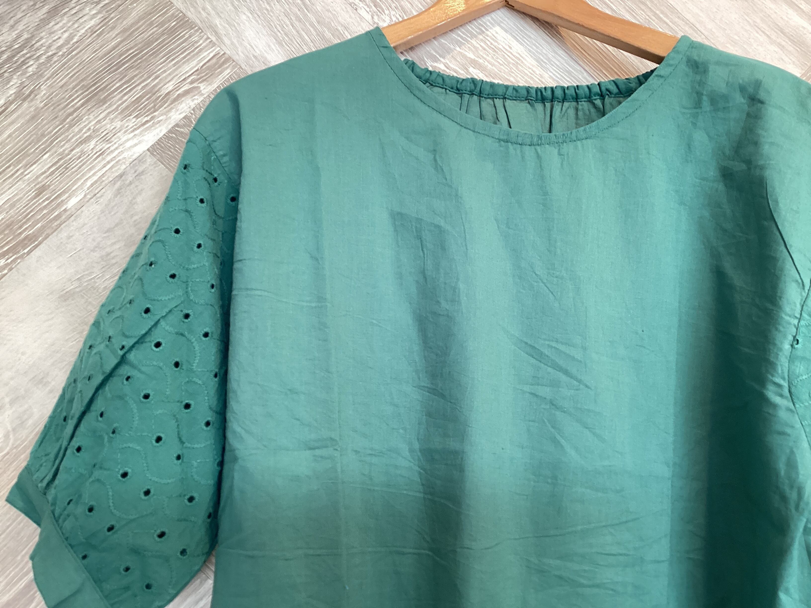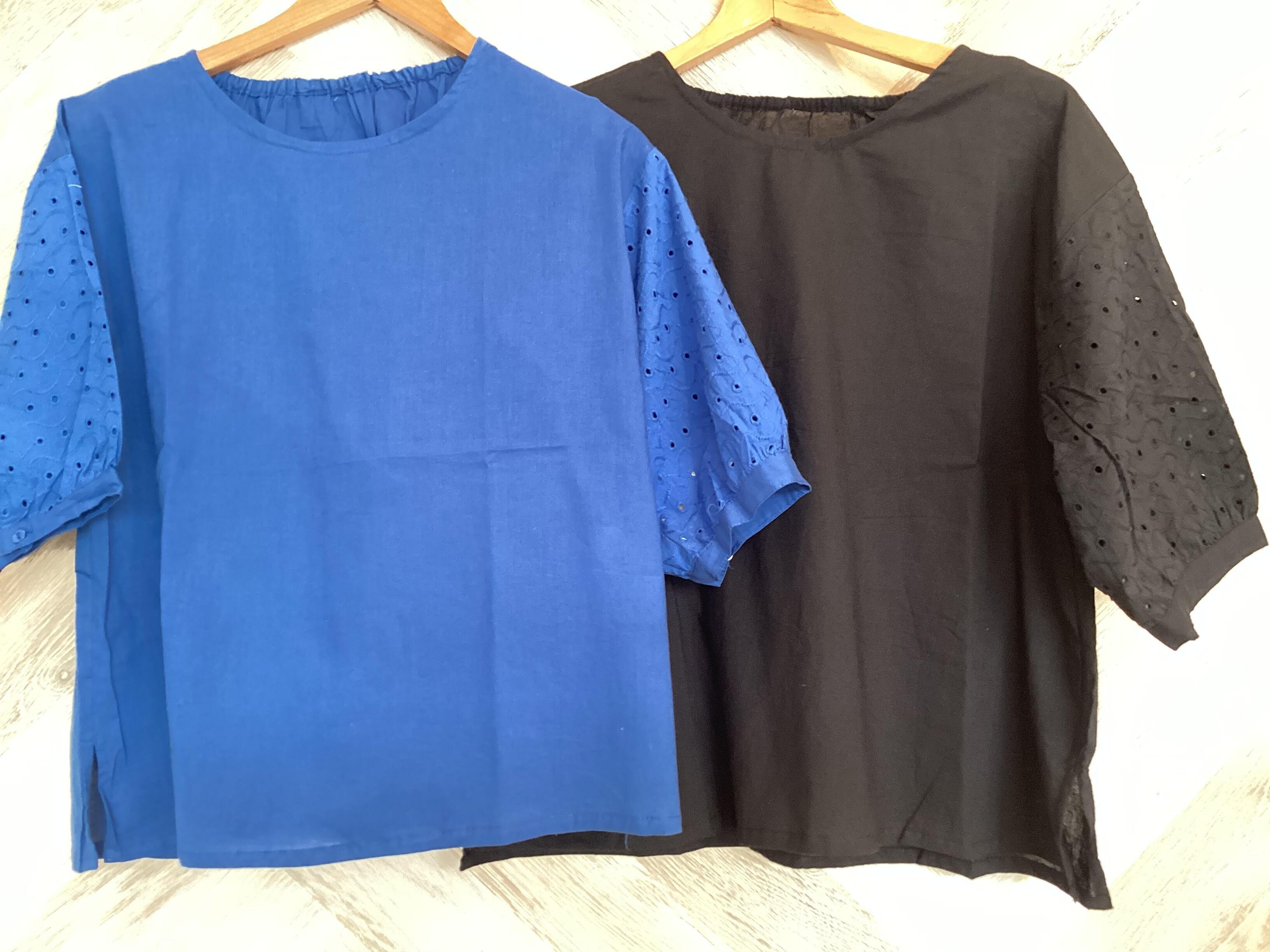 柔らかいコットン100%を使用した袖刺繍ブラウス