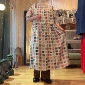 プリントクルーネックウエストギャザーワンピース | moja*