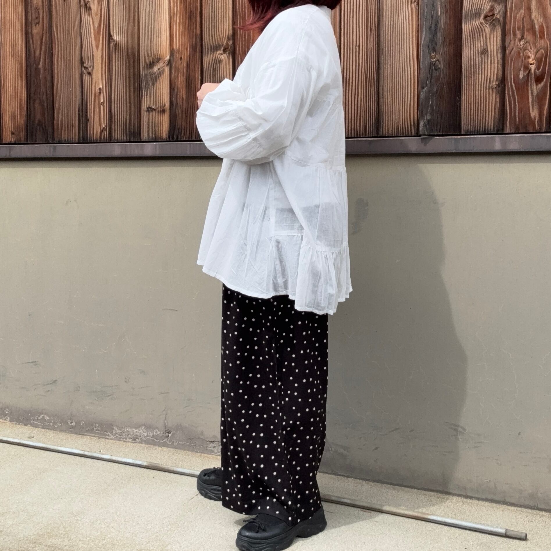 旬の水玉柄で、どんなスタイルにもナチュラルにフィットします