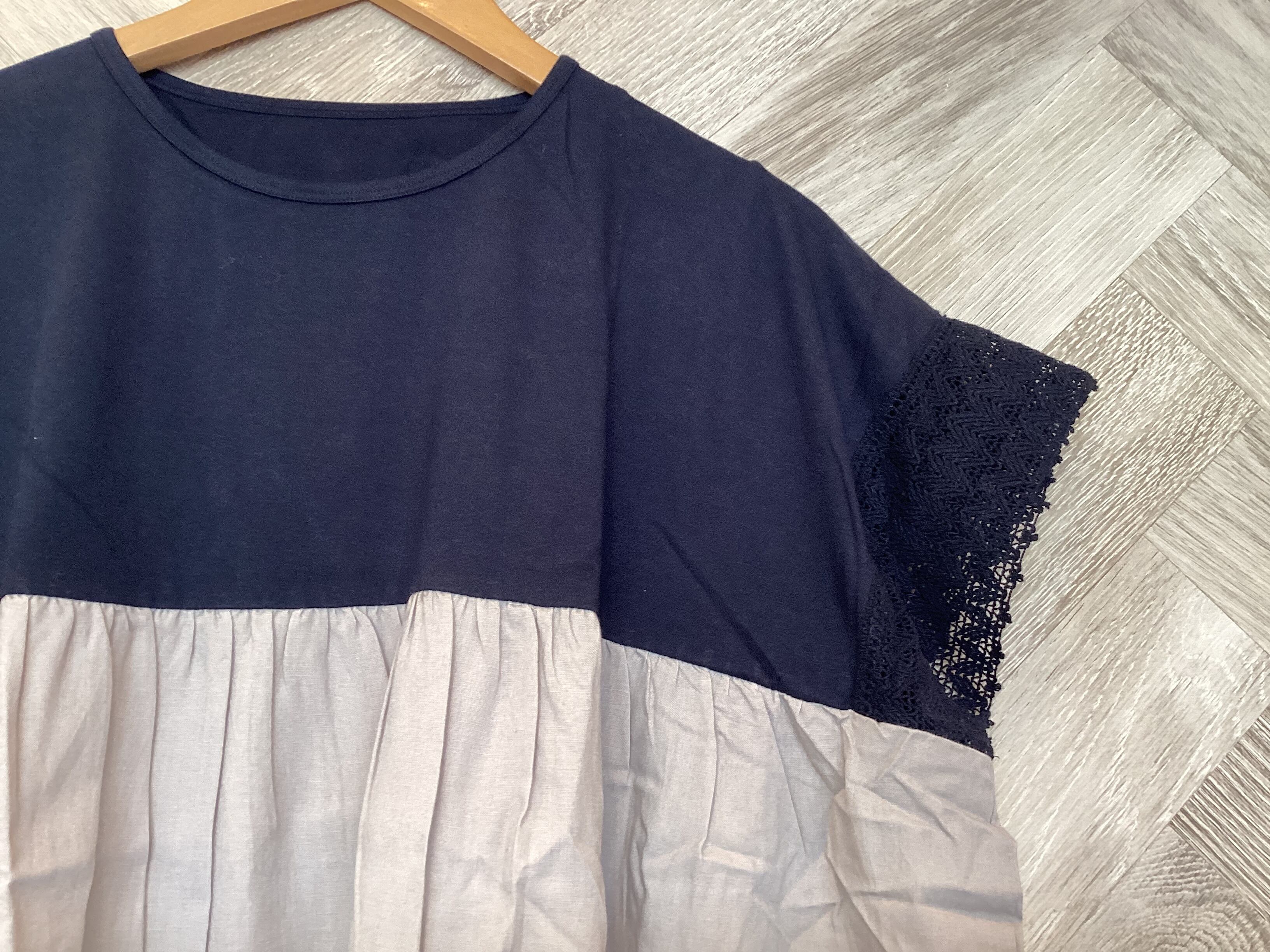 袖口の繊細なレースで華やかな印象に
