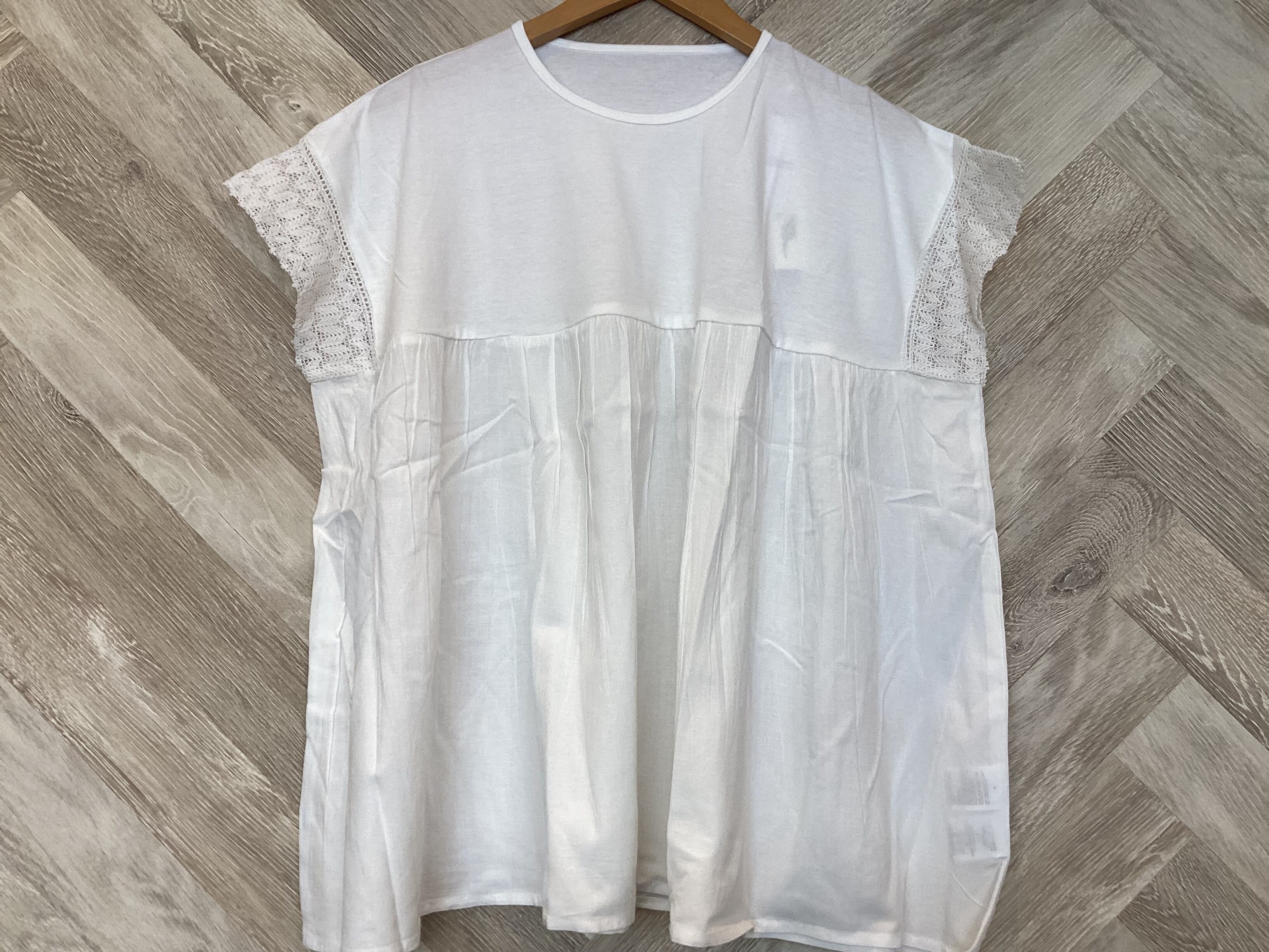 ワイドなシルエットにギャザーを施したふんわり落ち感のある生地を使ったブラウス