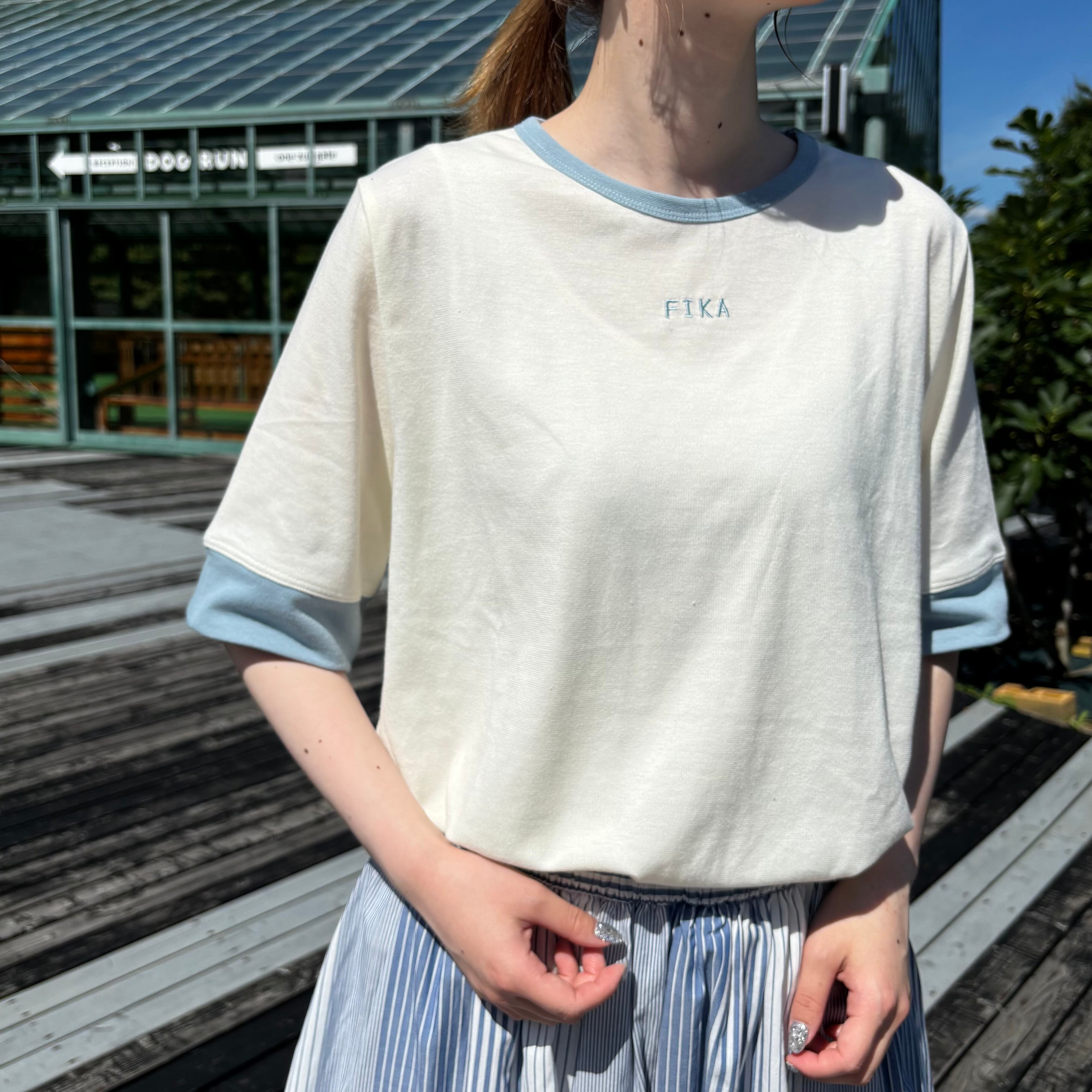 スッキリとしたラインのセットイン袖のTシャツ