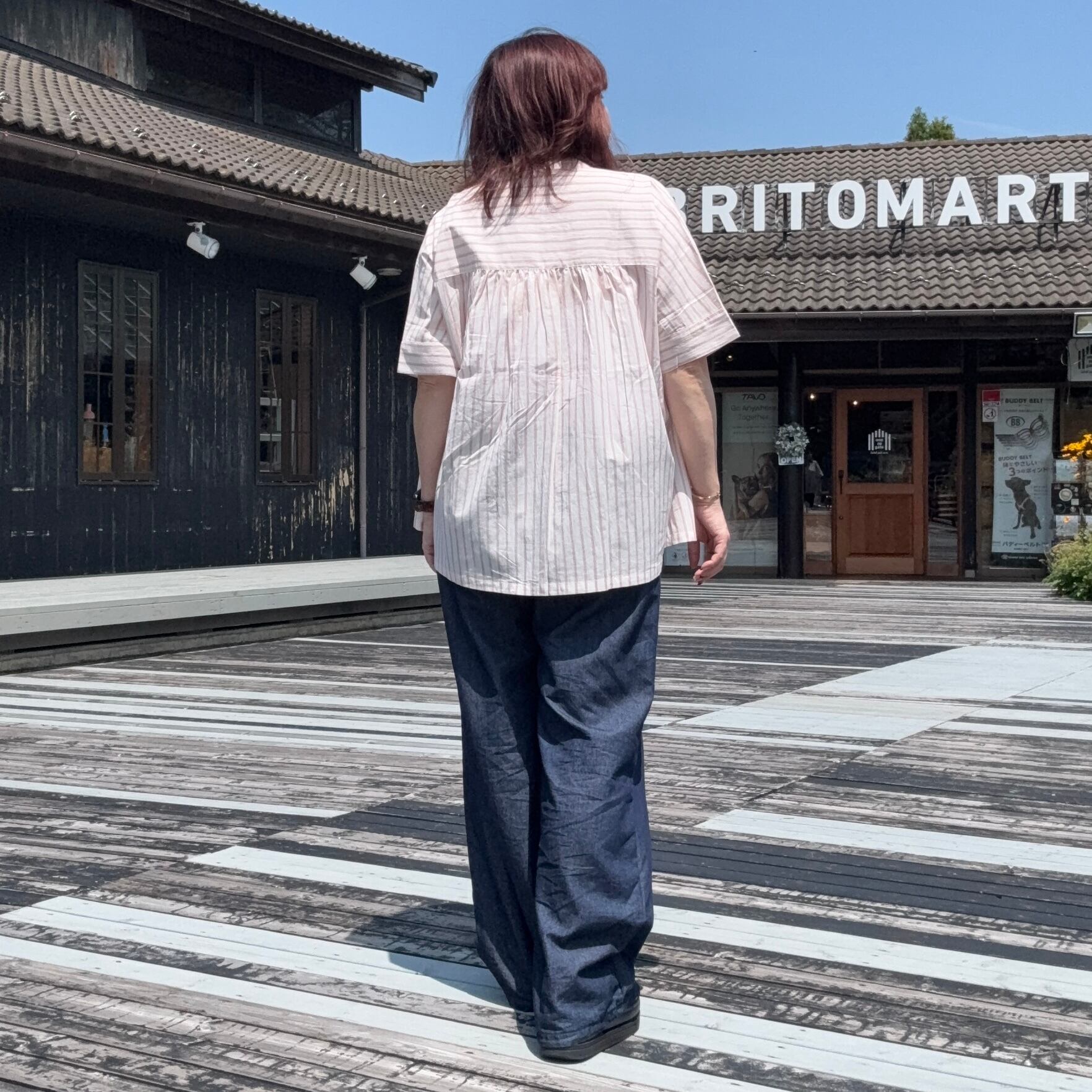 ヨーク切り替え部分に細やかなギャザーを入れてふんわりシルエットを表現しました