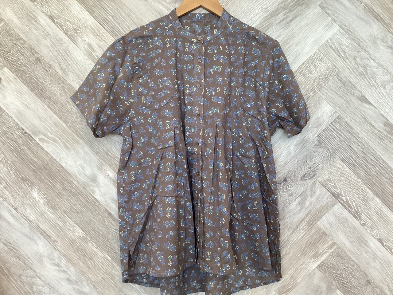 花柄フロントタック5分袖前開きブラウスです