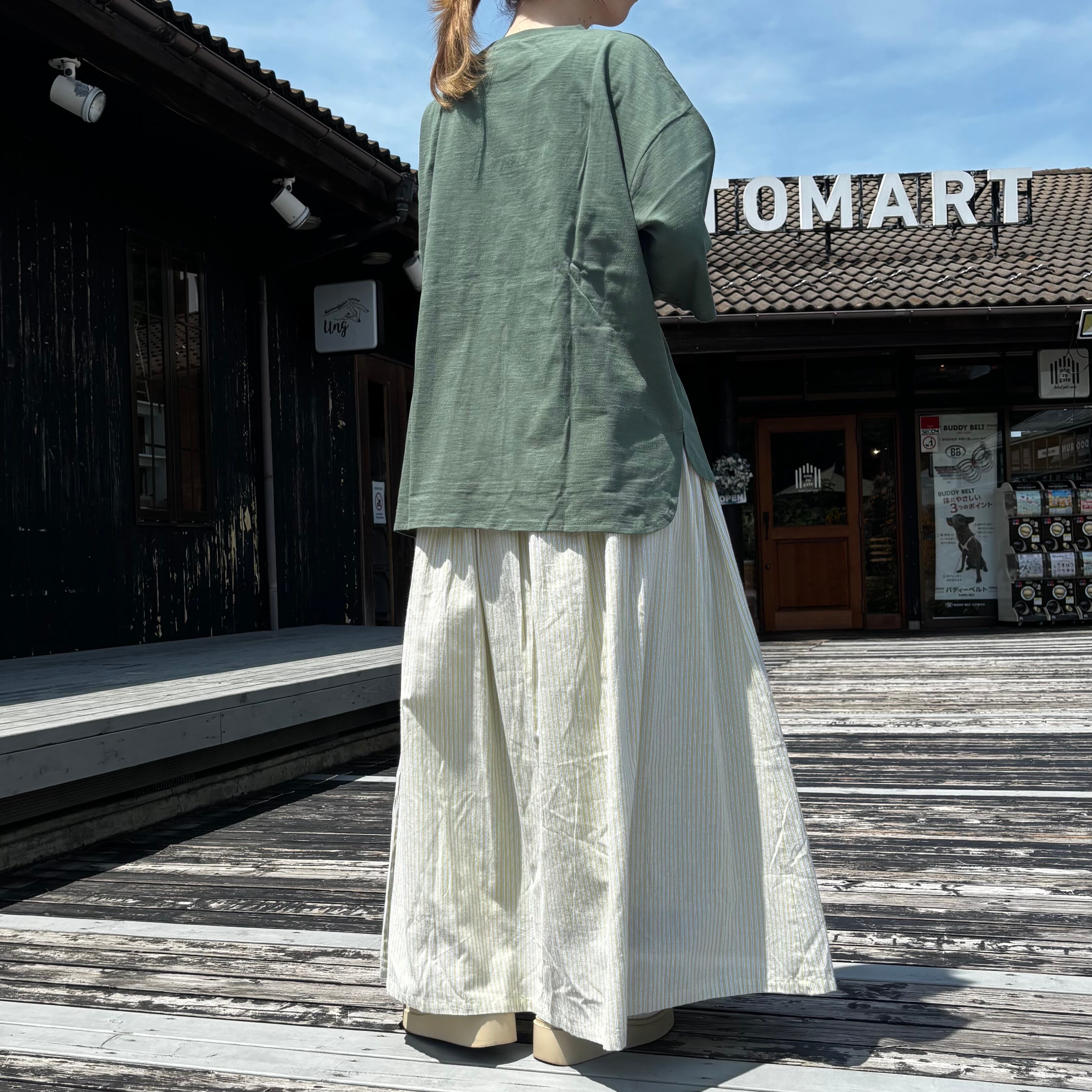 印象的なモチーフでシンプルなスタイリングでもコーディネートが様になる1枚です