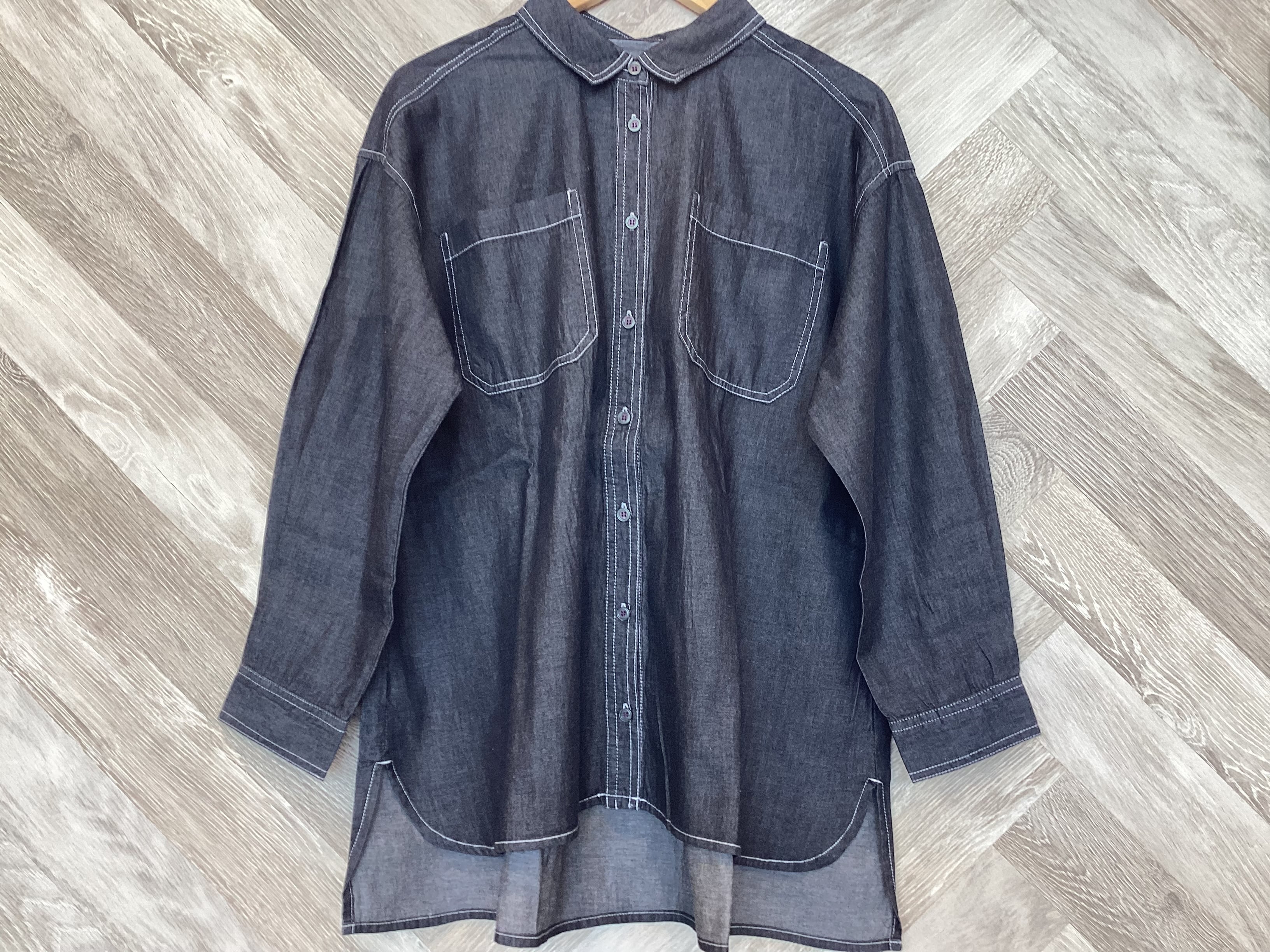 前開きのデザインでTシャツの上にサッと羽織ってもボタンを留めても1枚で着ても◎