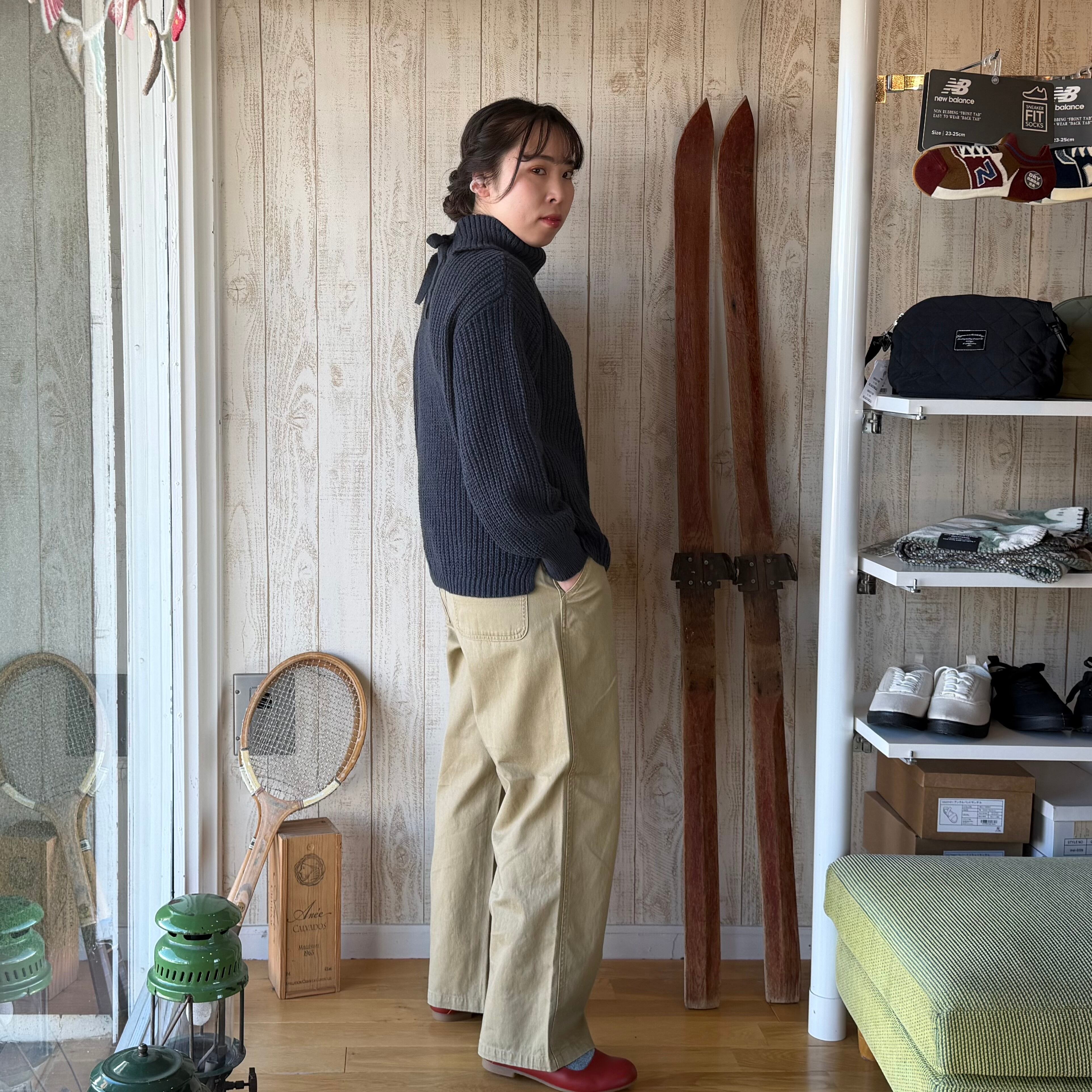 ゆったりとしたシルエットでニットやアウターとも好相性です