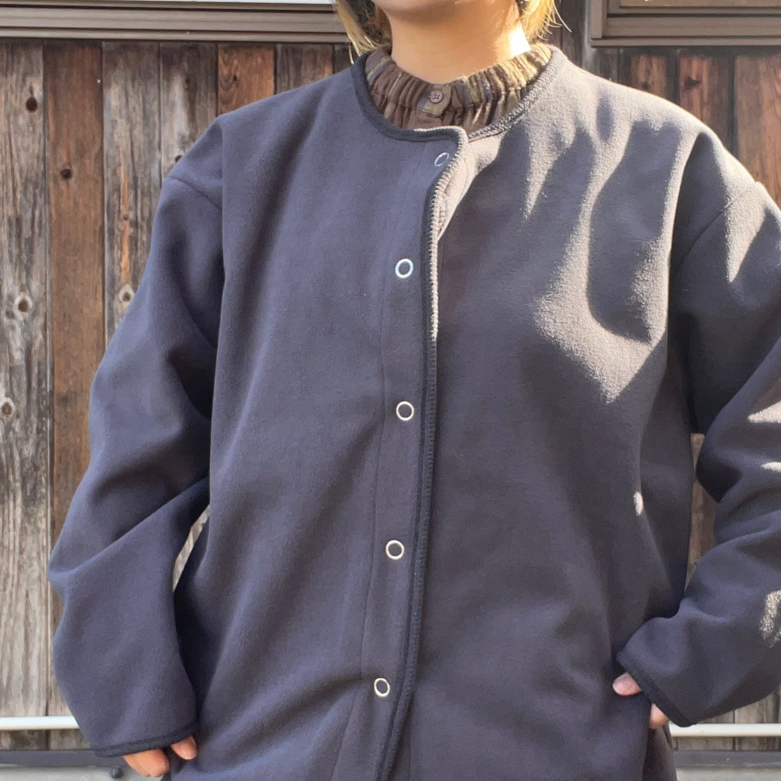 裏面が配色された可愛らしいダブルフェイスカーディガン
