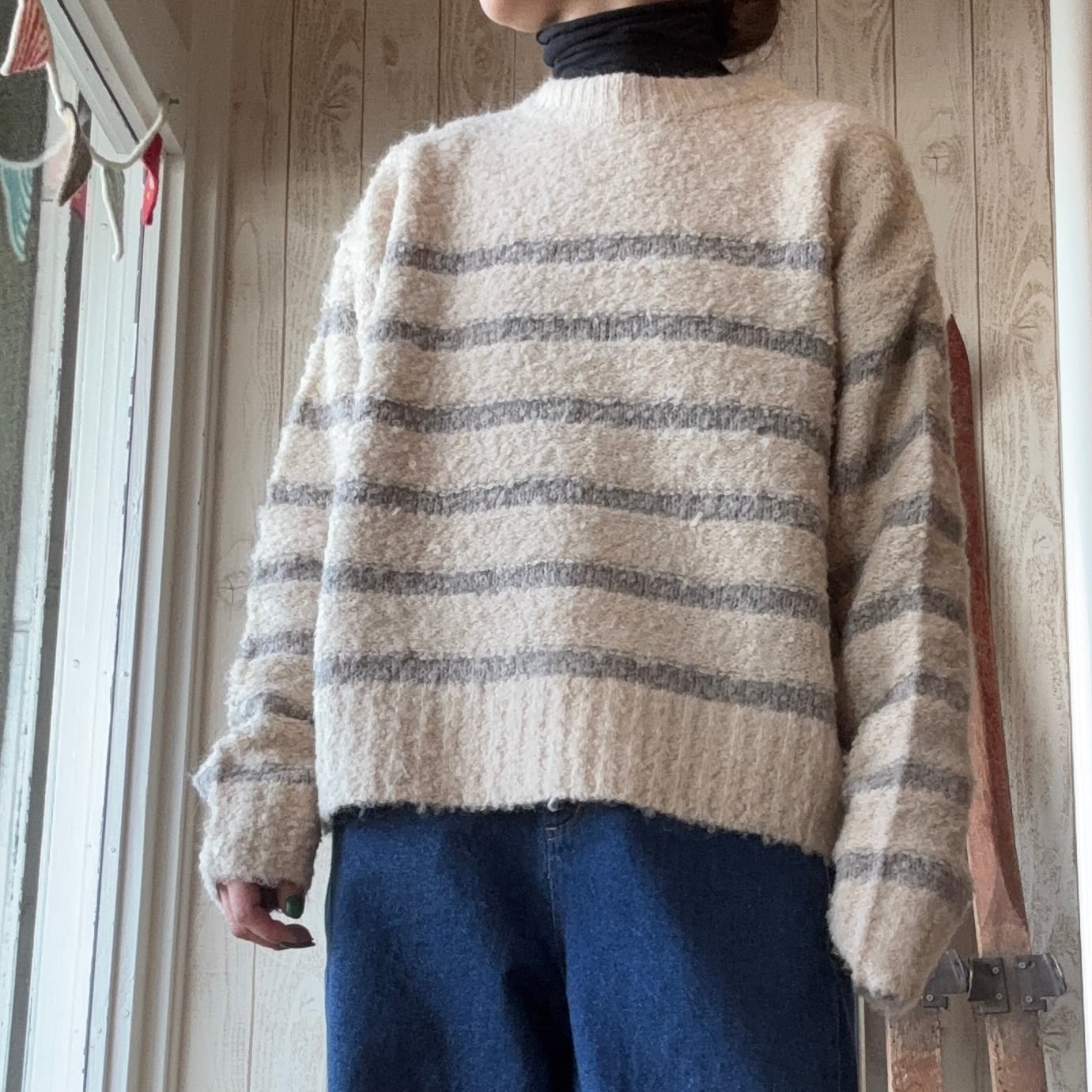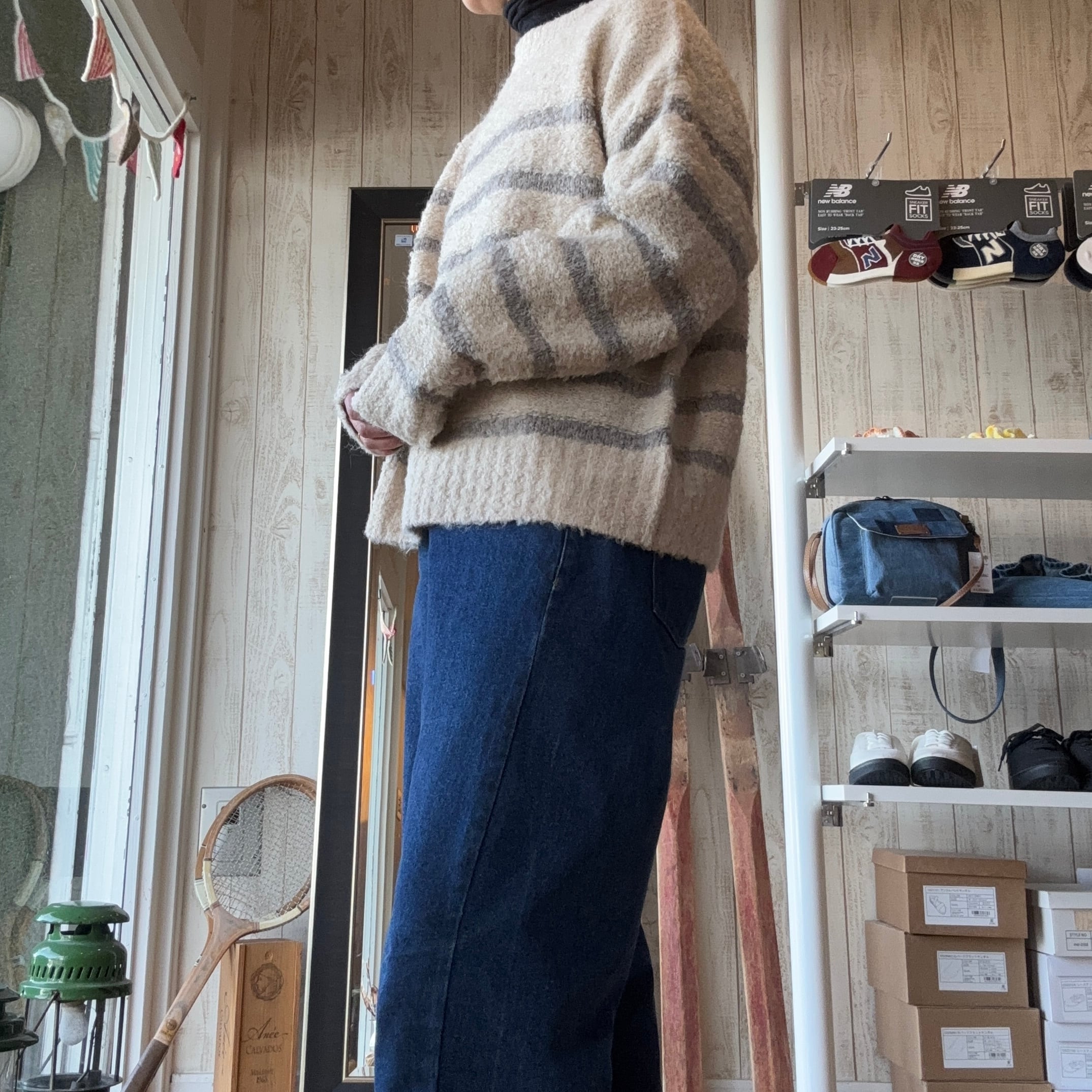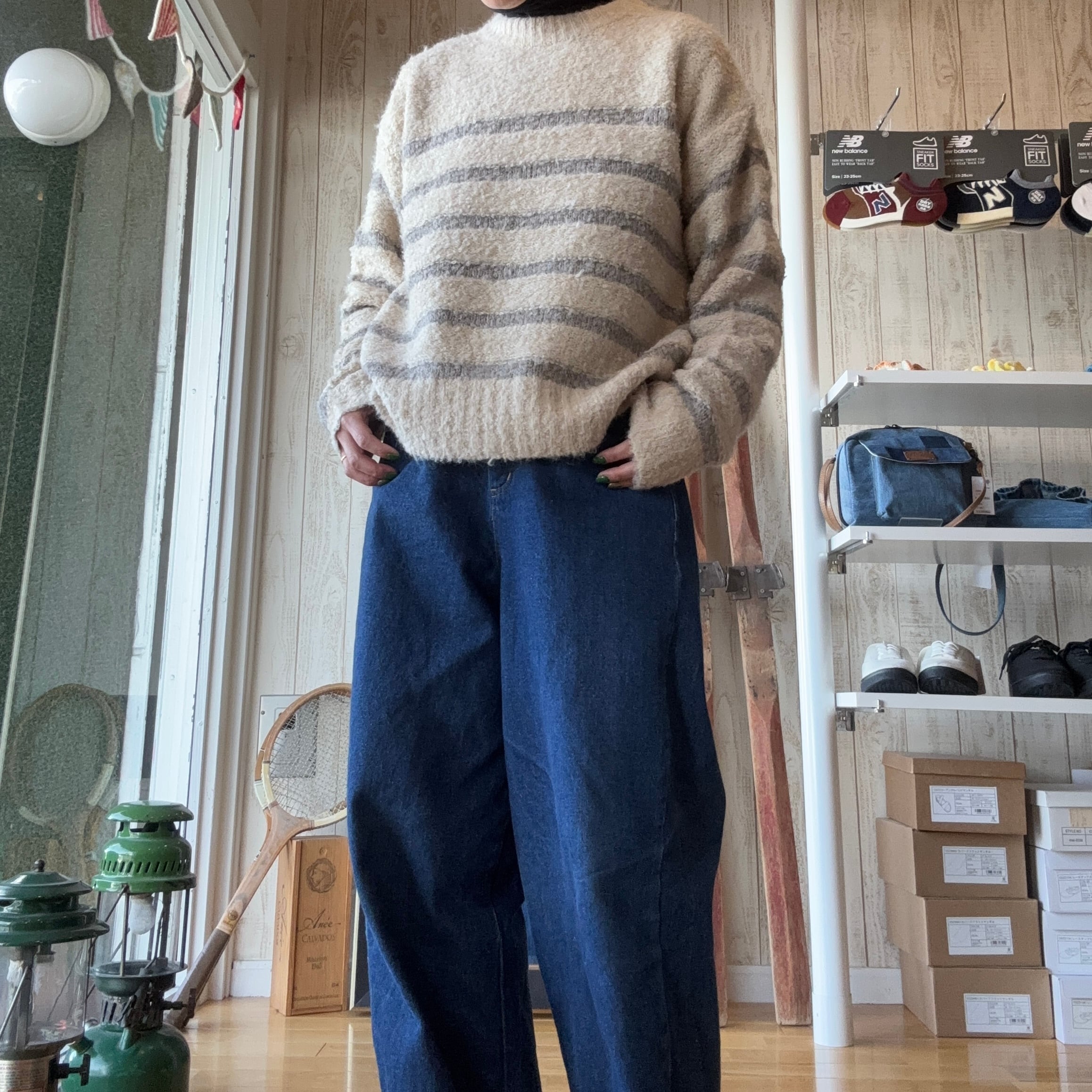 定番ボーダー柄も落ち着いた色使いと絶妙なピッチで子供っぽくならず上品な印象に着回し力抜群の万能ニットです
