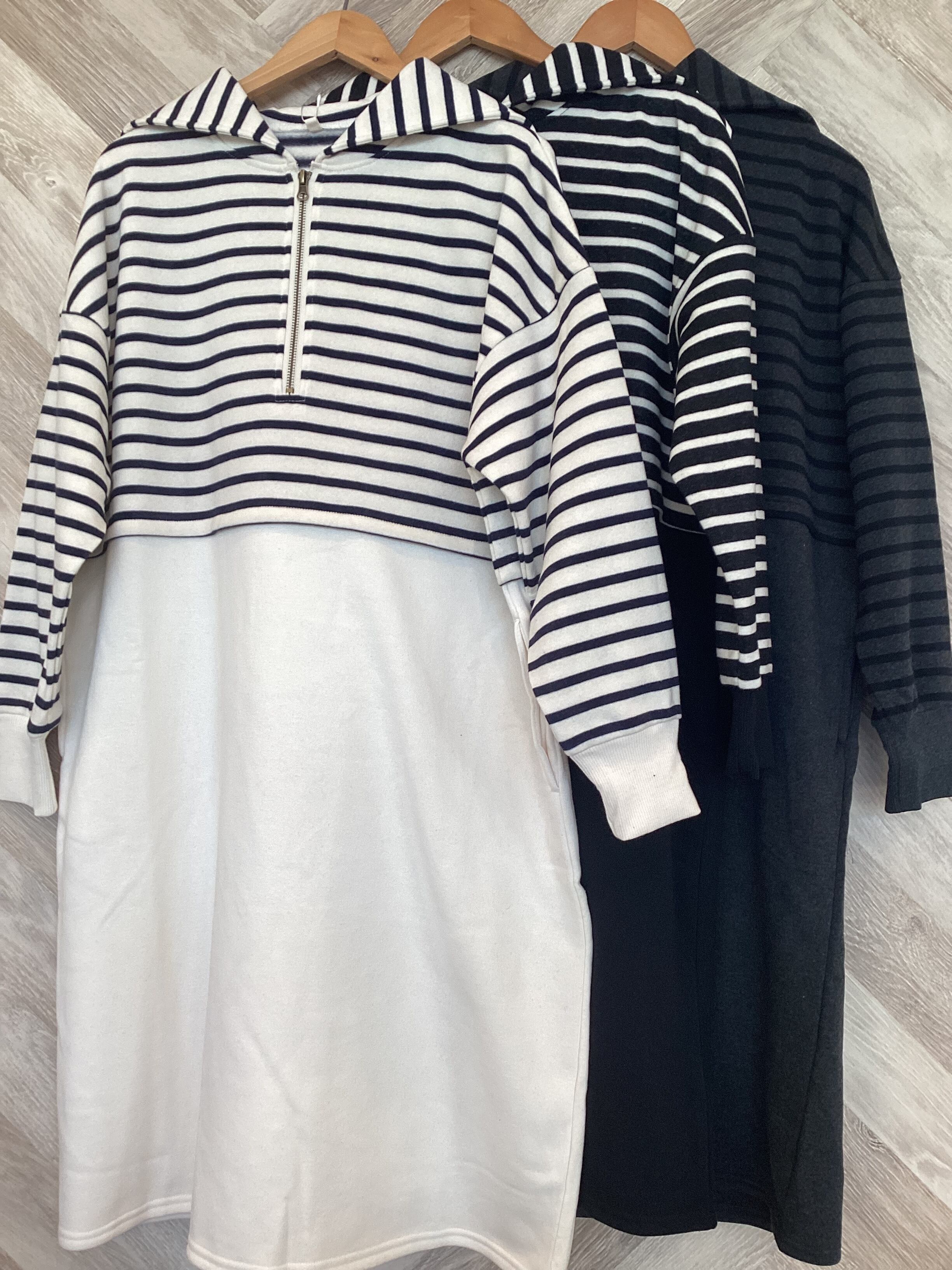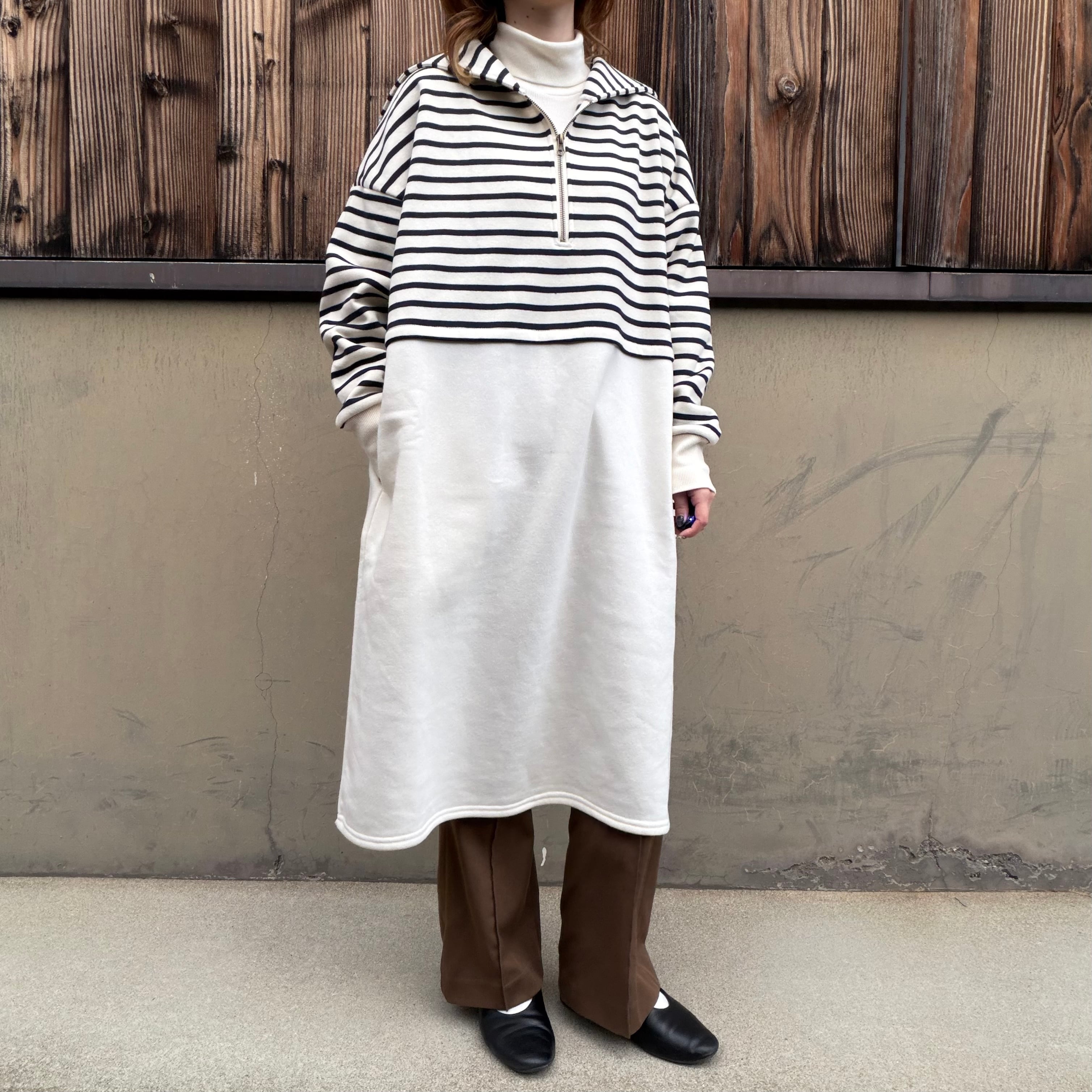 裏起毛ボーダー×無地ジップアップワンピース | moja*