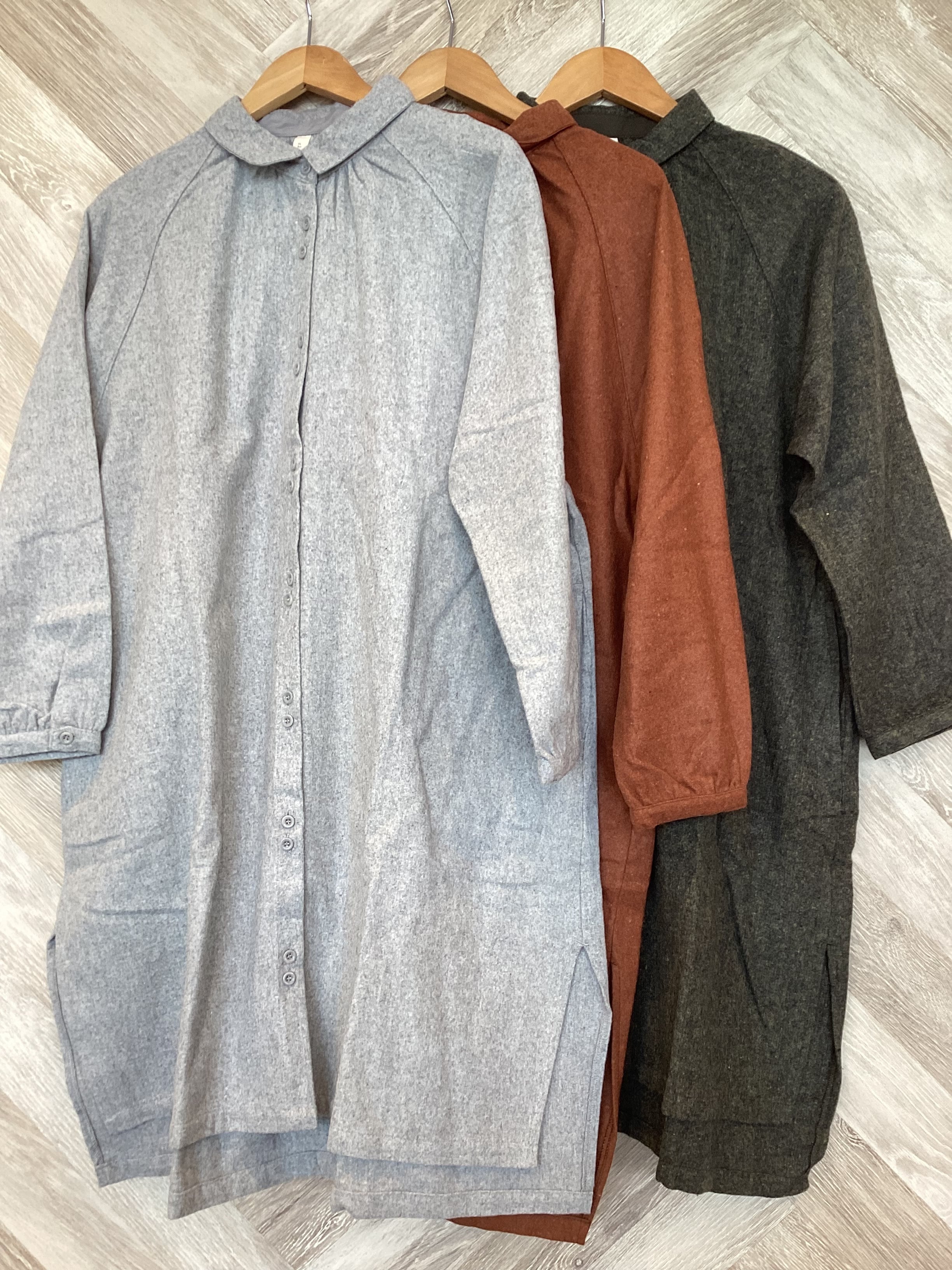 暖かみのあるフランネルの風合いとしっかりとした厚みが心地よい生地感