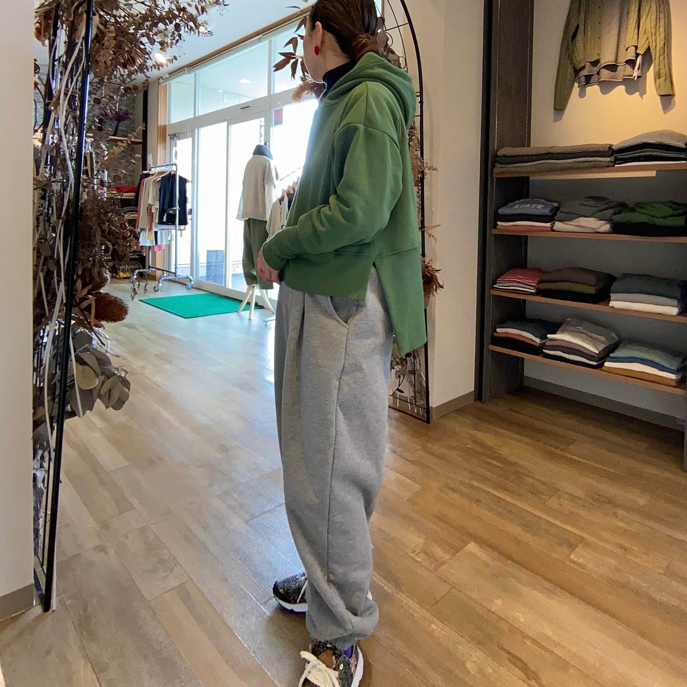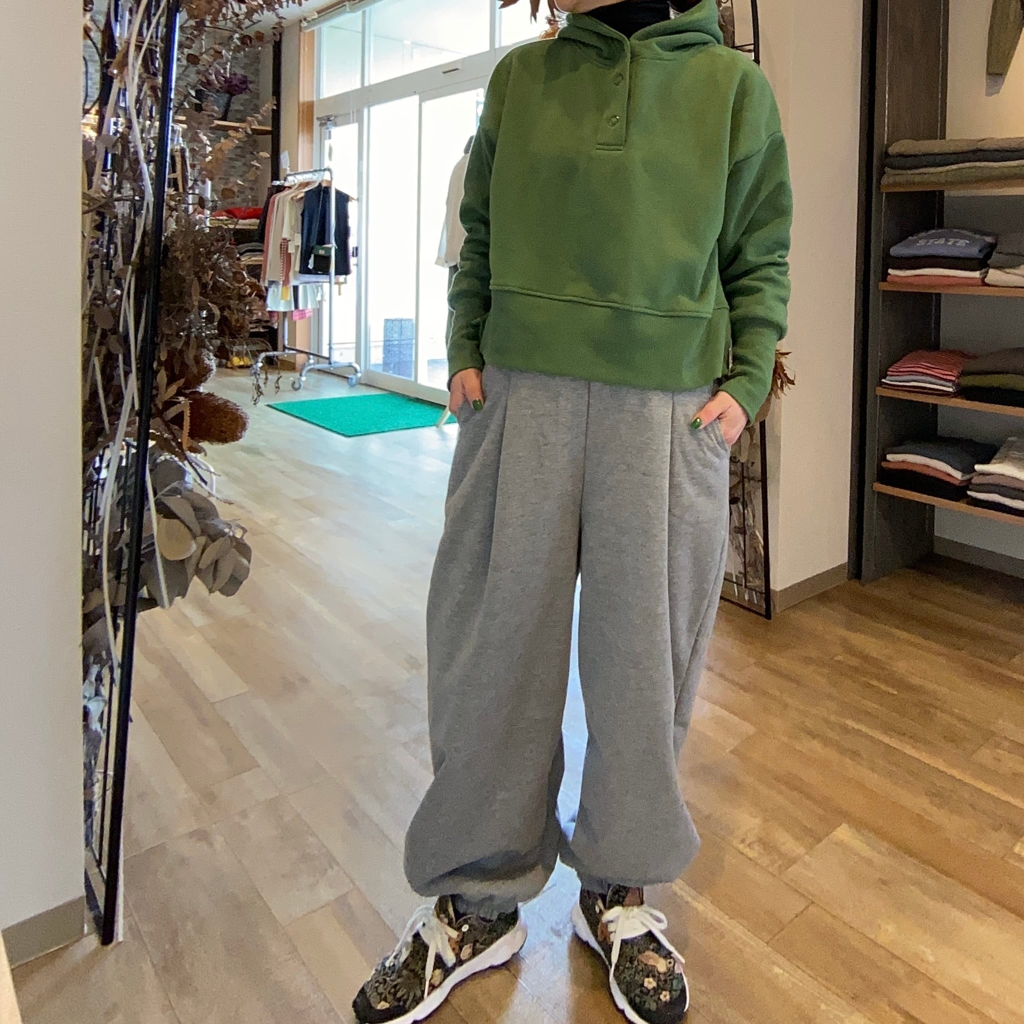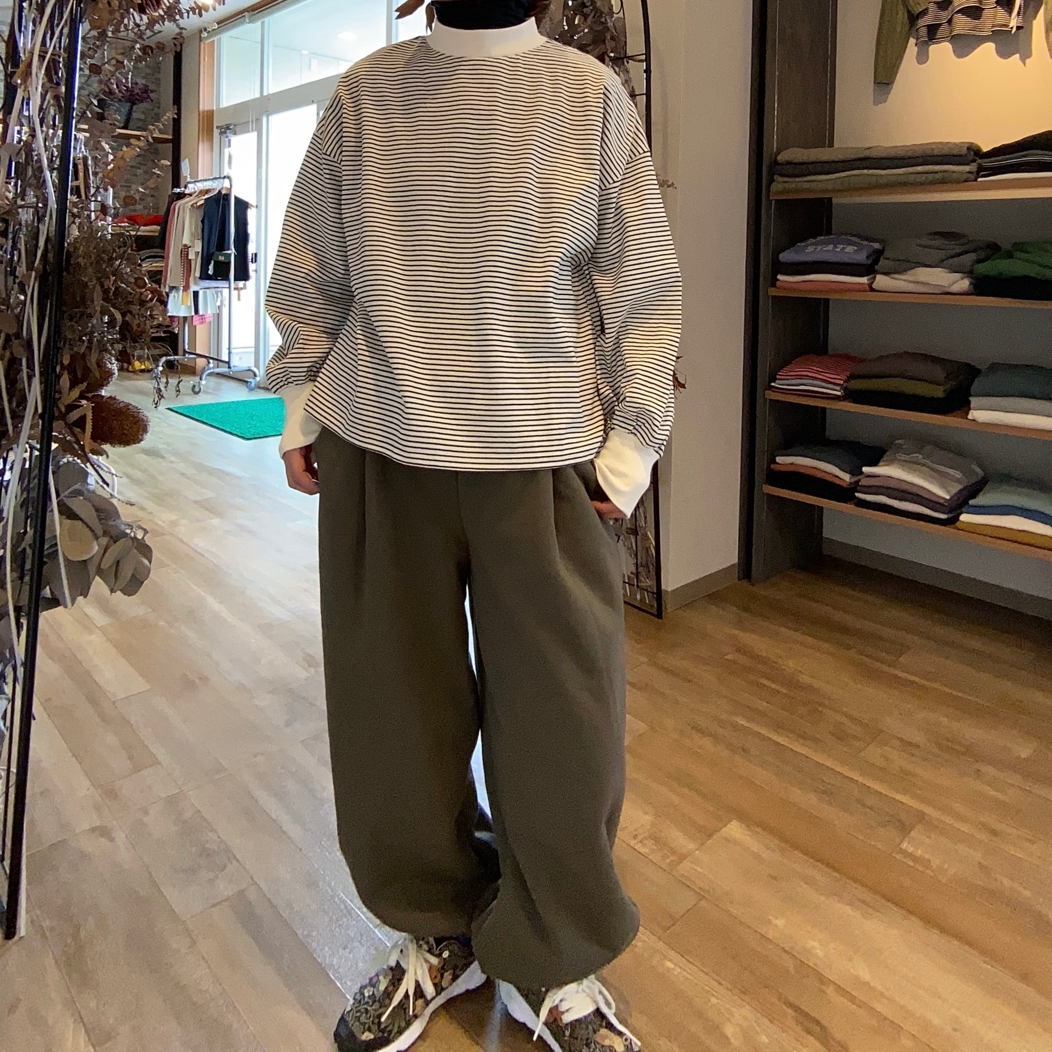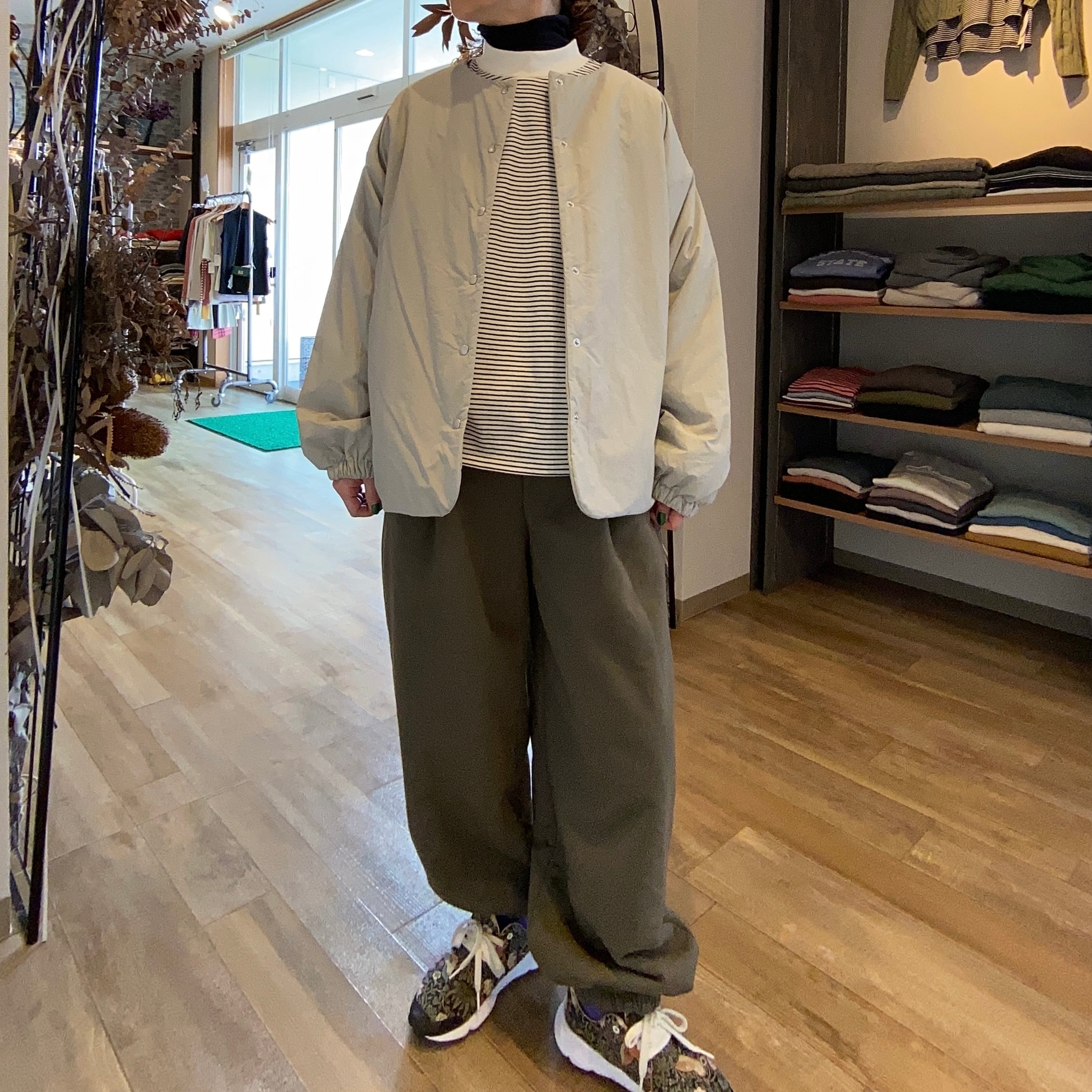 表側天竺裏地ボアの間に薄いシートを挟んだ3層構造になっており防風性に優れた素材で防寒対策もバッチリ丸みのあるシルエットがかわいいコクーンパンツ
