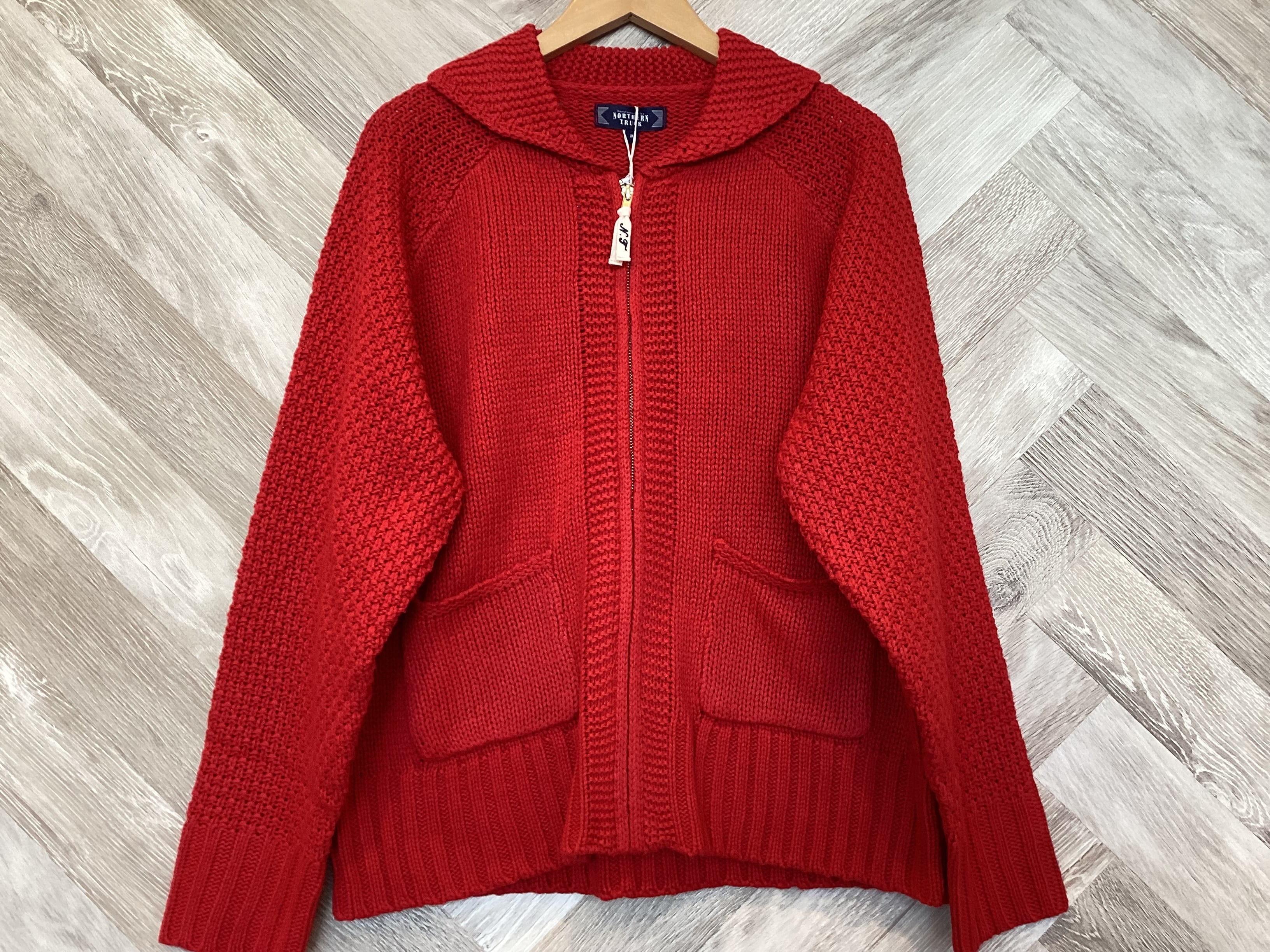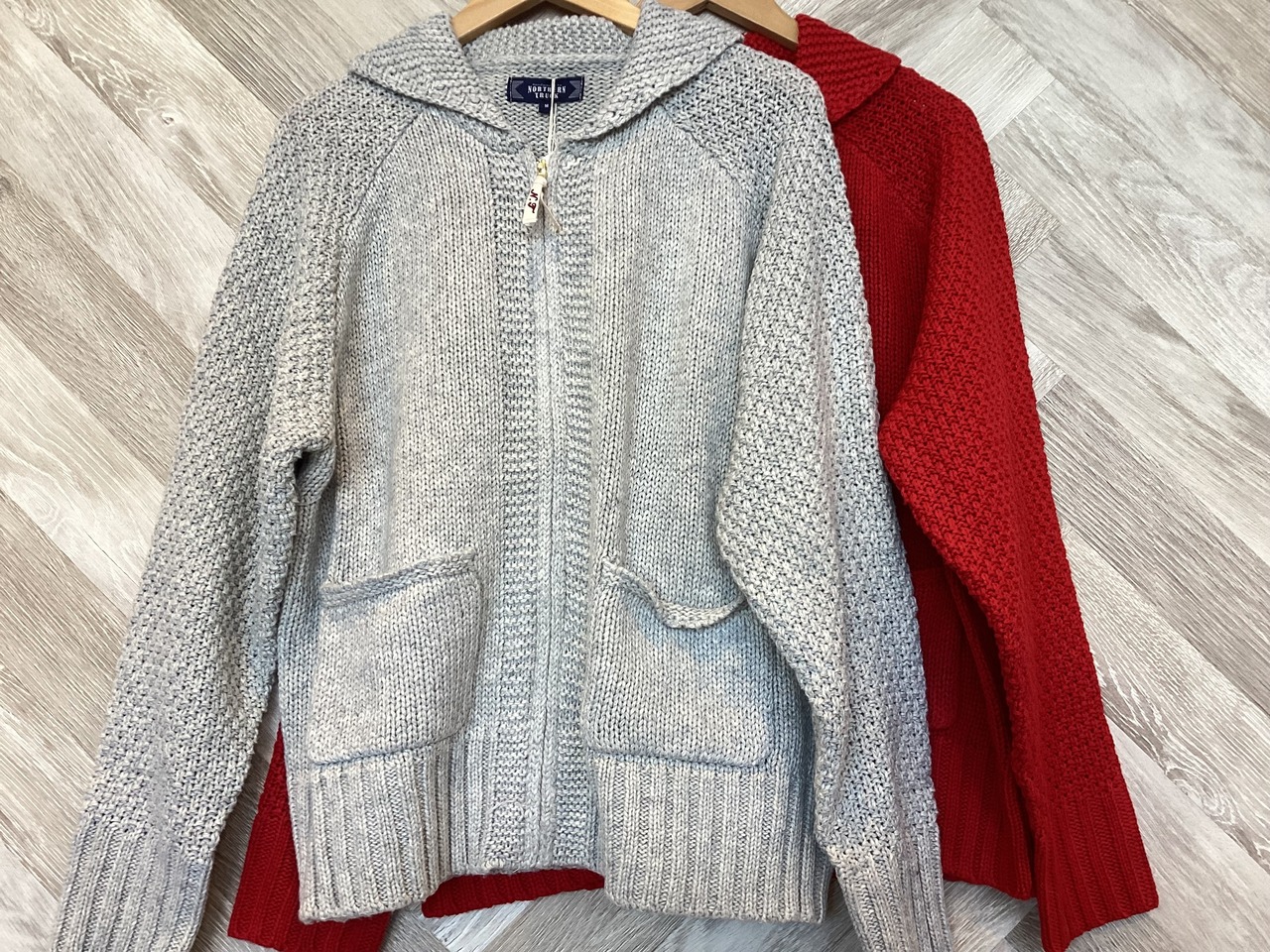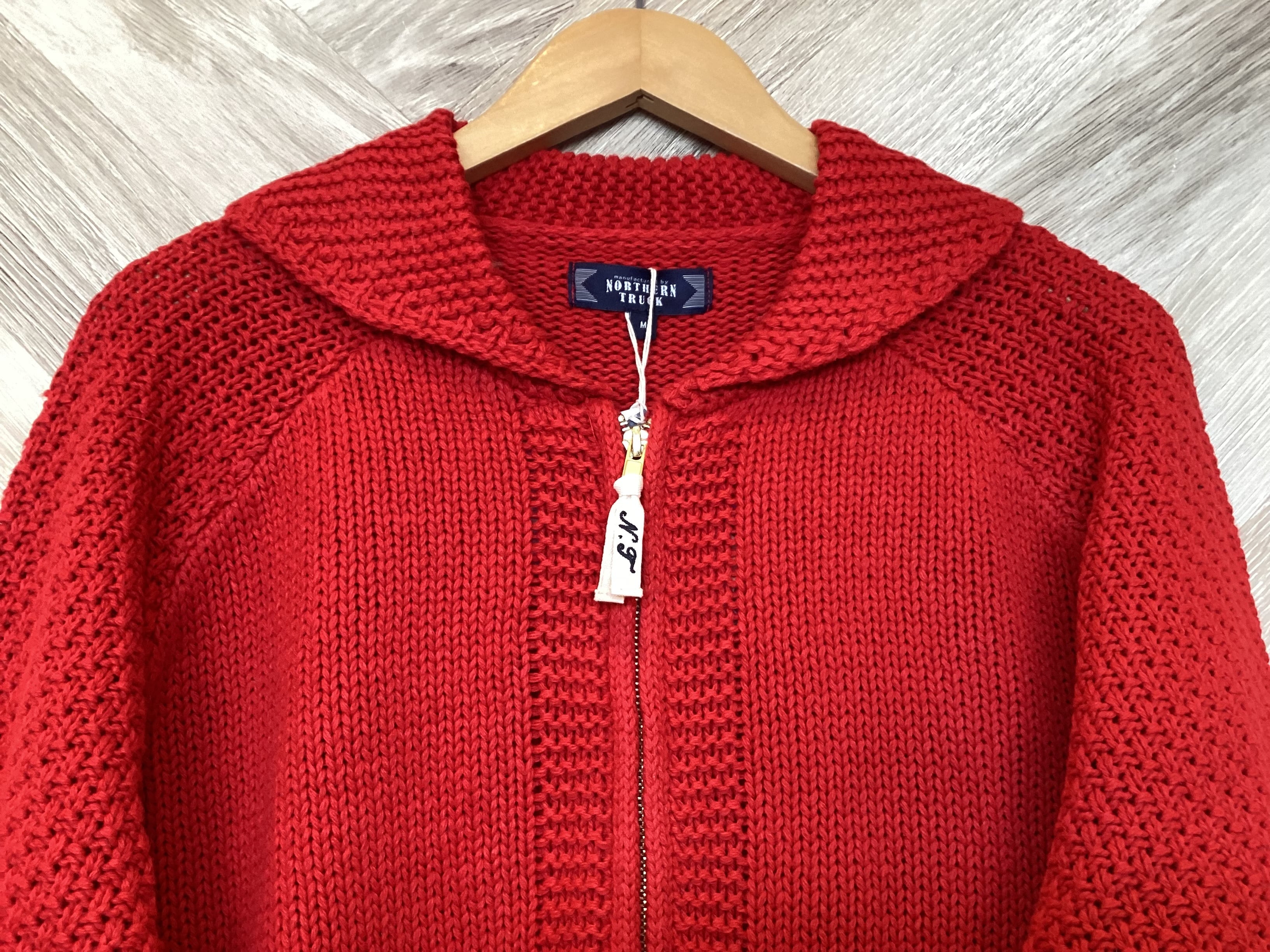 袖と裾襟周りにリブをきかせてたカウチン風デザインのニットカーディガン