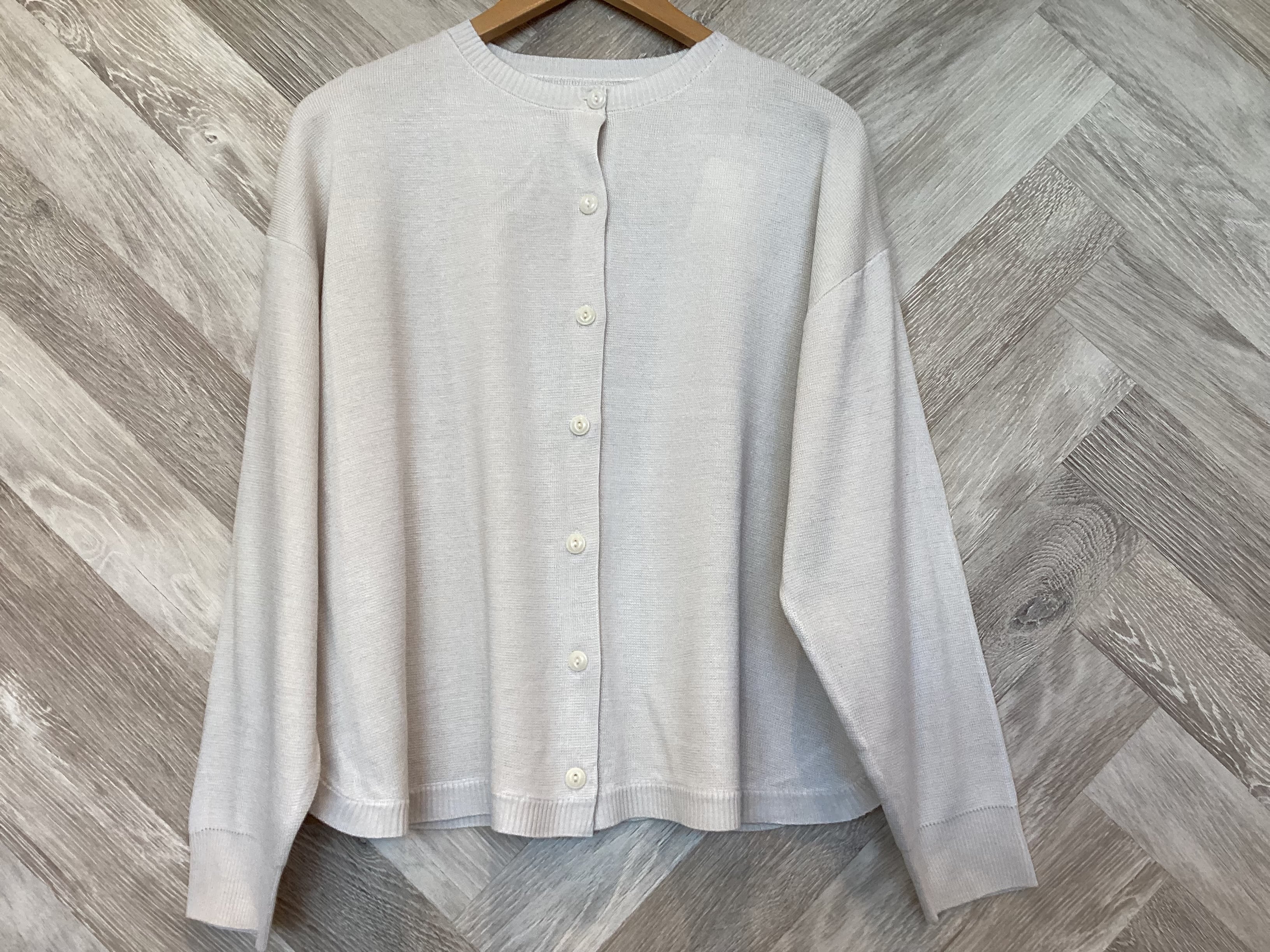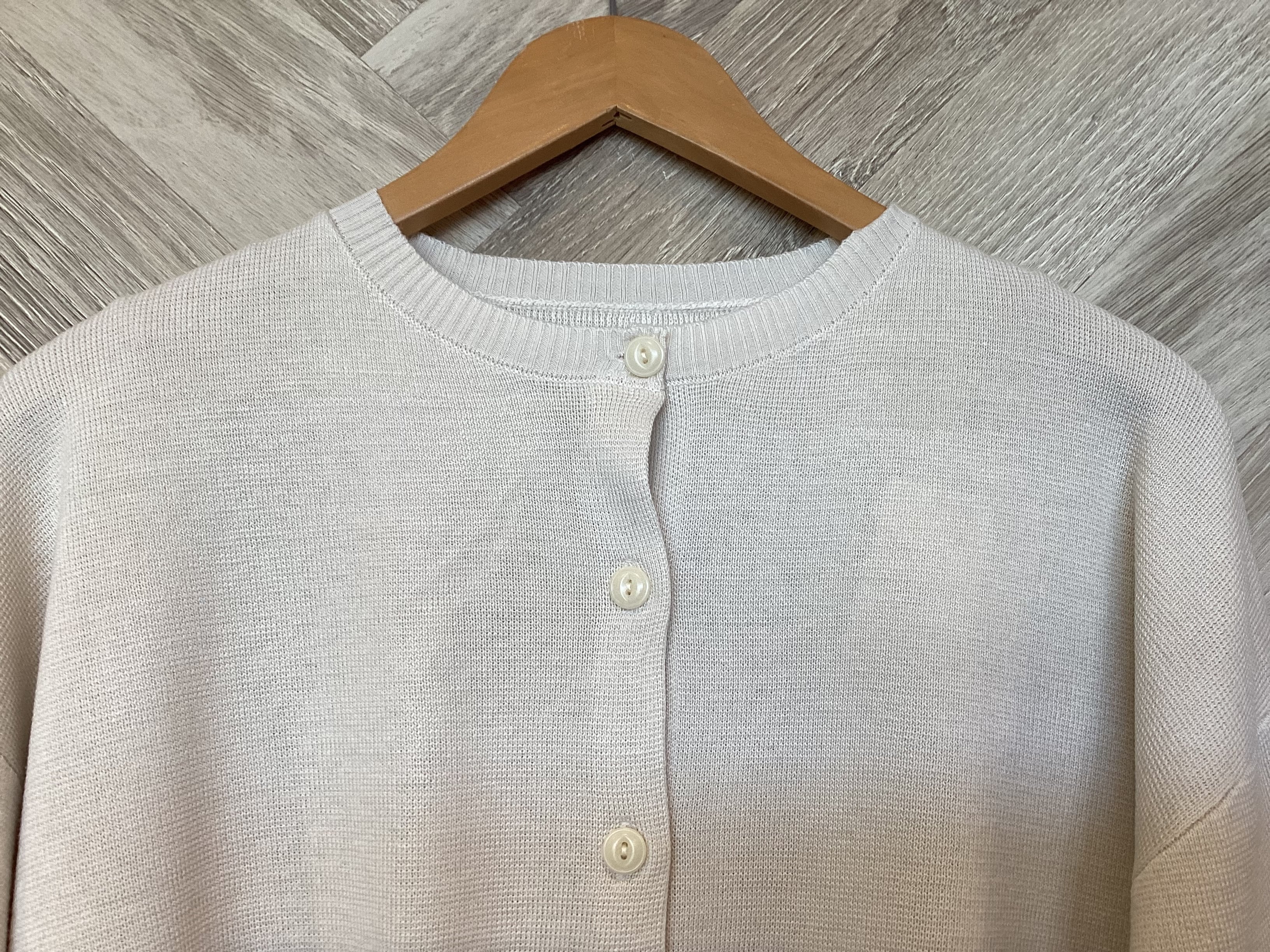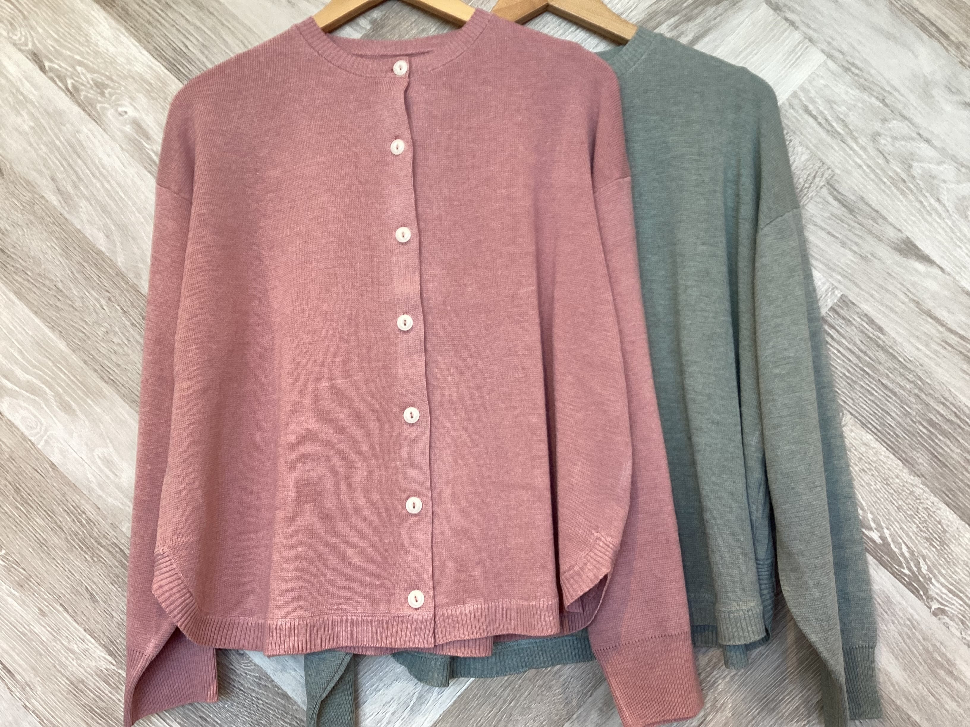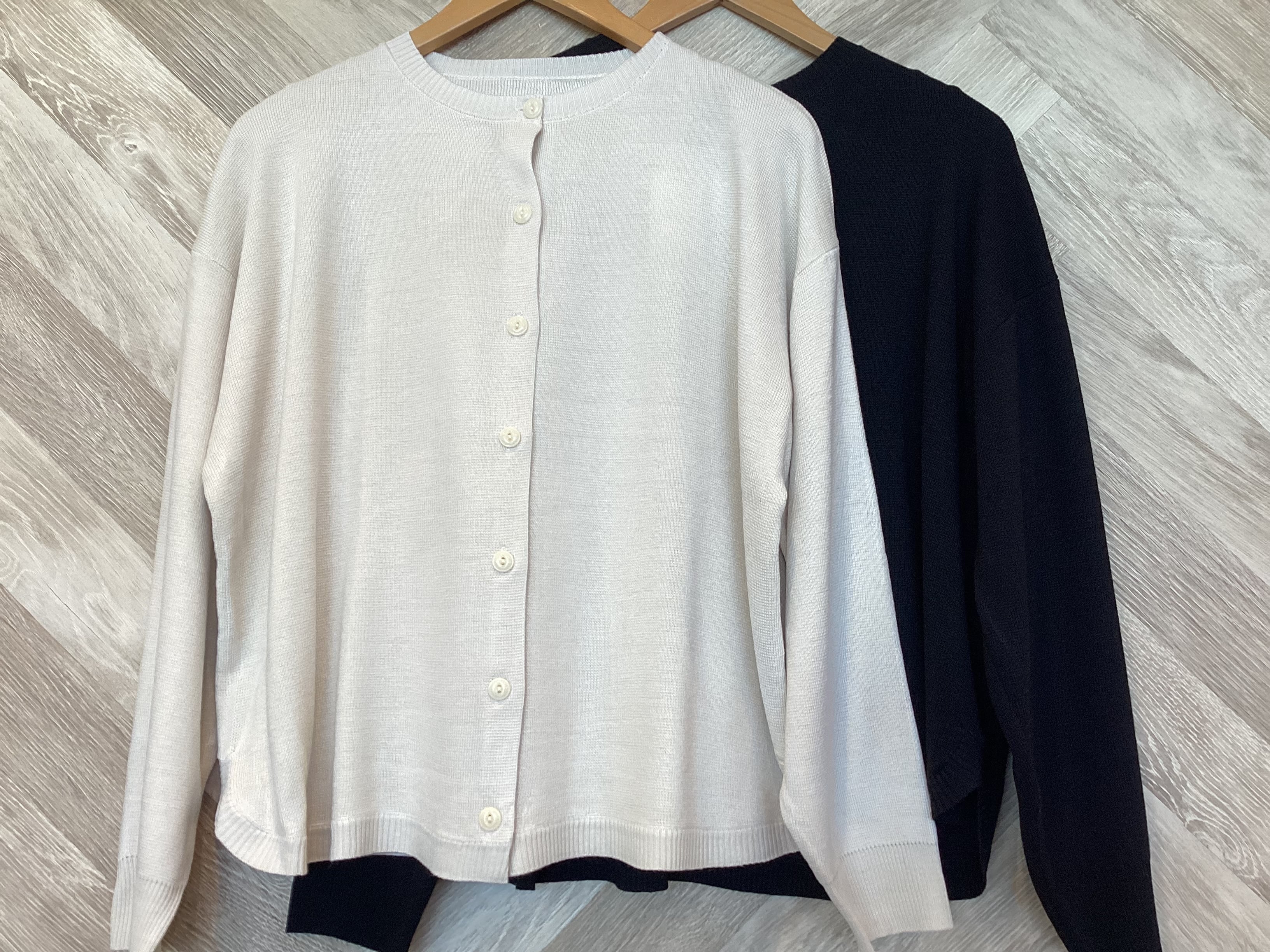 しっかりと目の詰まったフラットな編み地が上品でキレイ見えするカーディガン