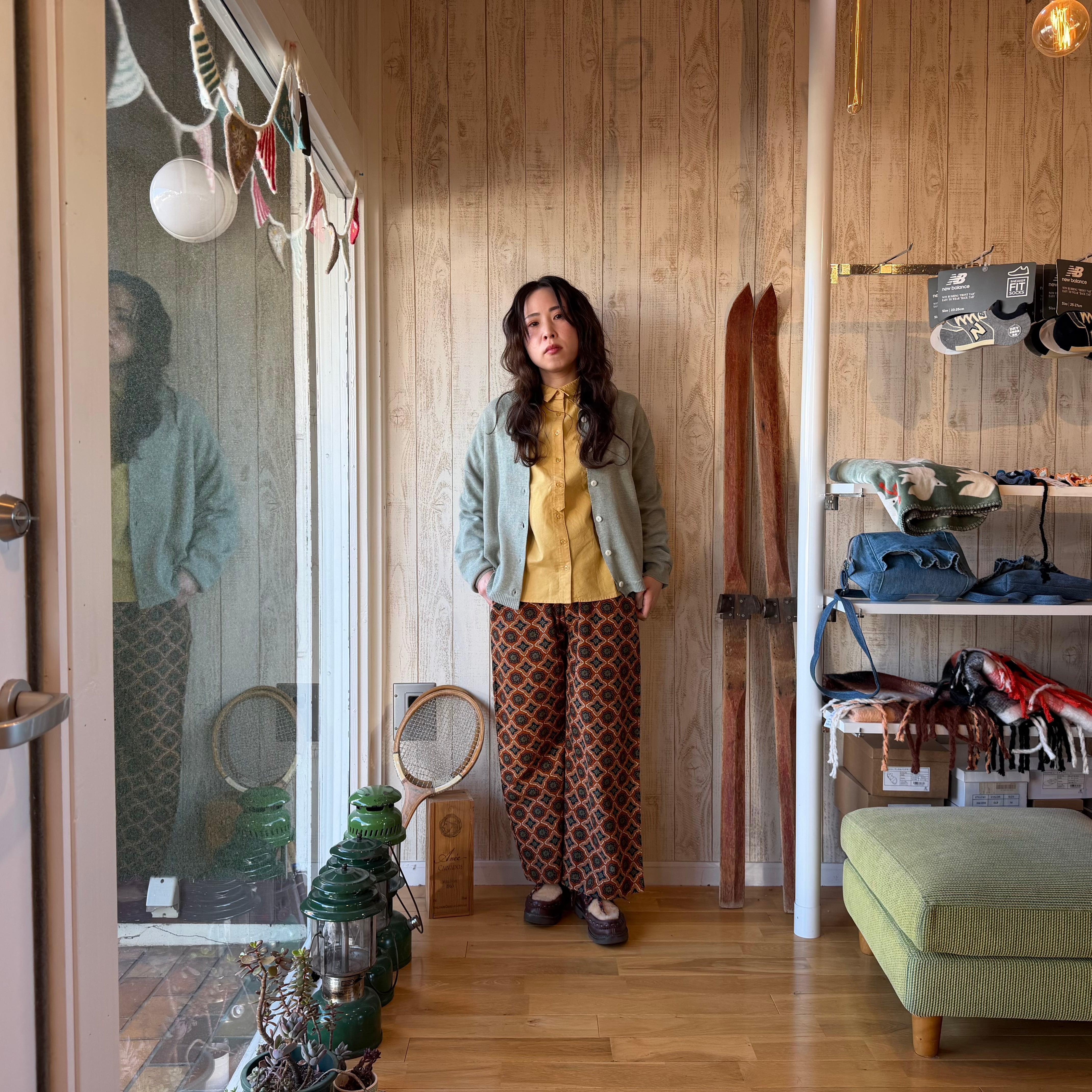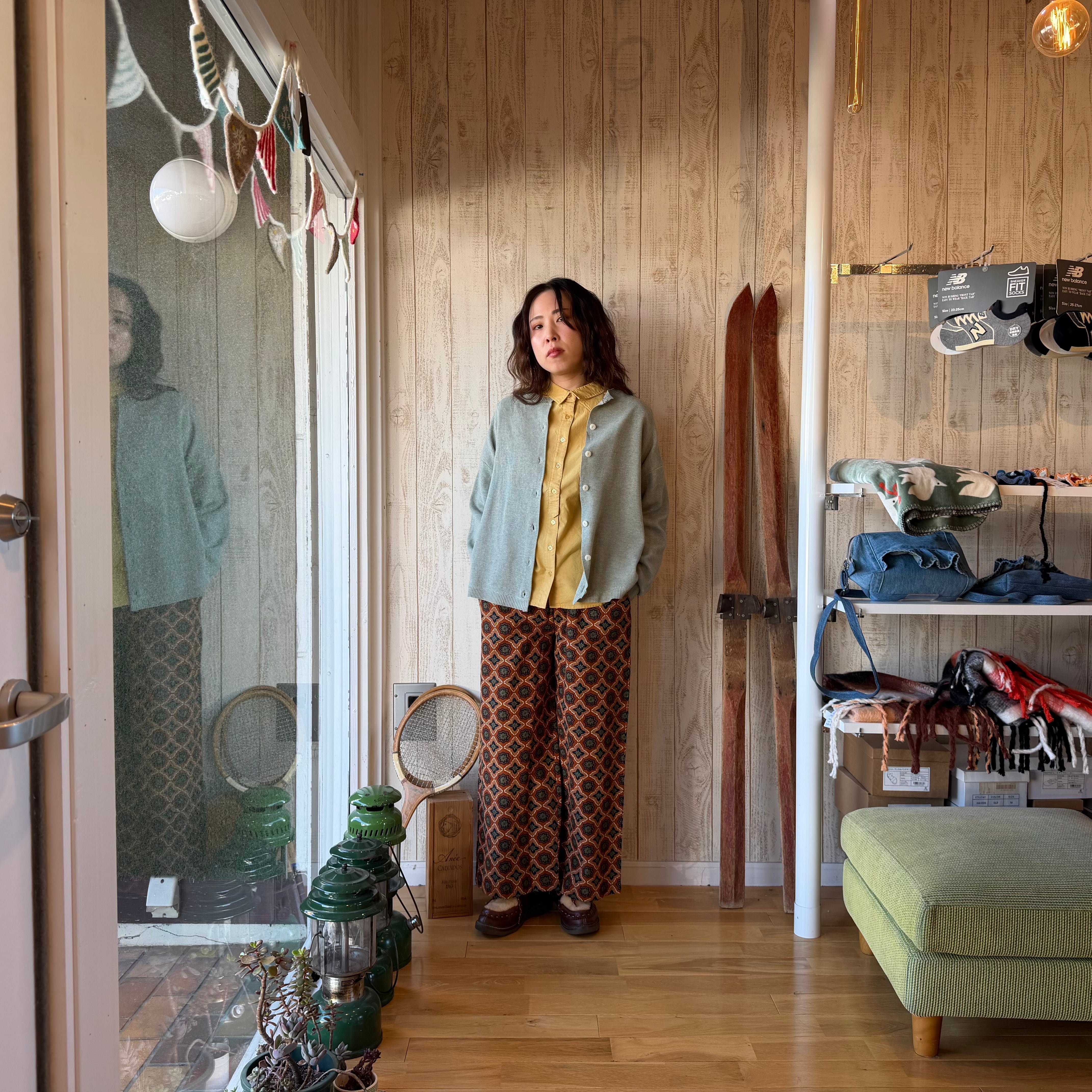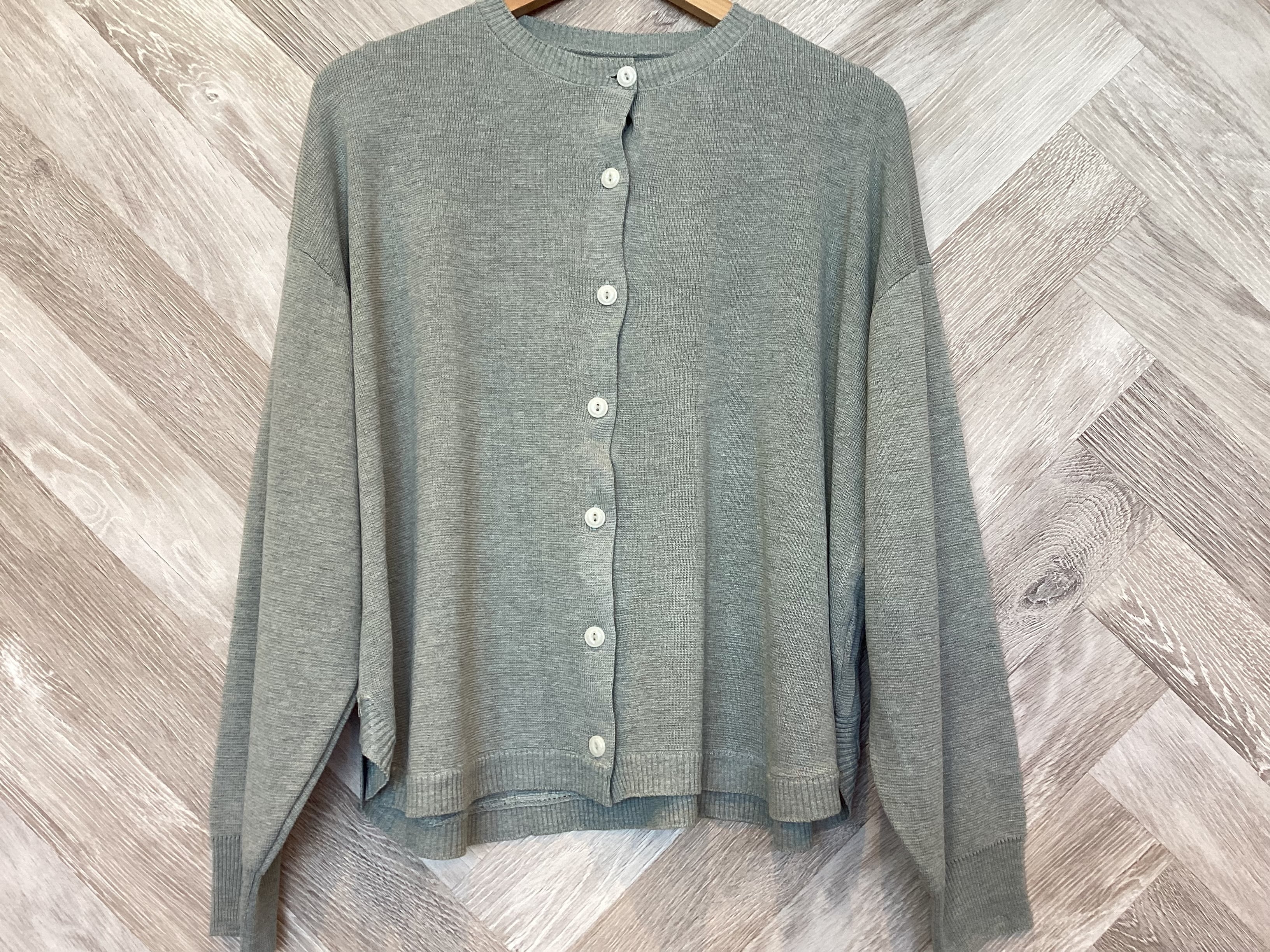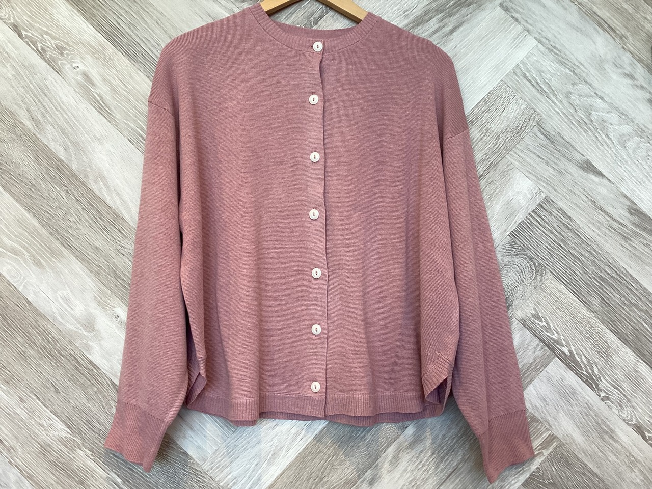 しっかりと目の詰まったフラットな編み地が上品でキレイ見えするカーディガン