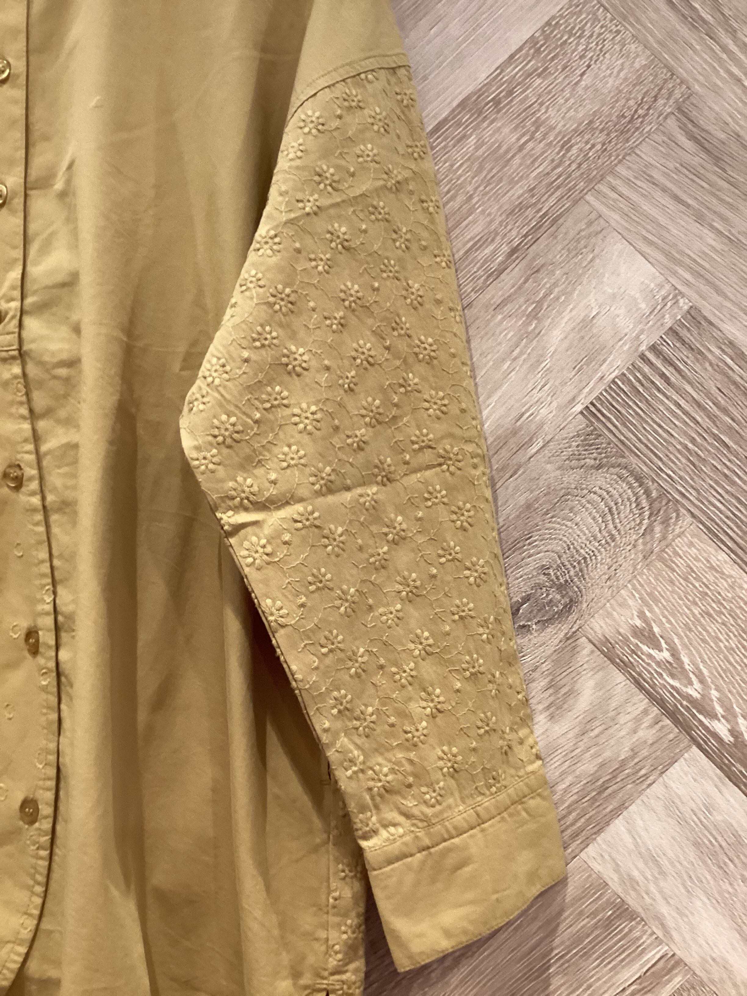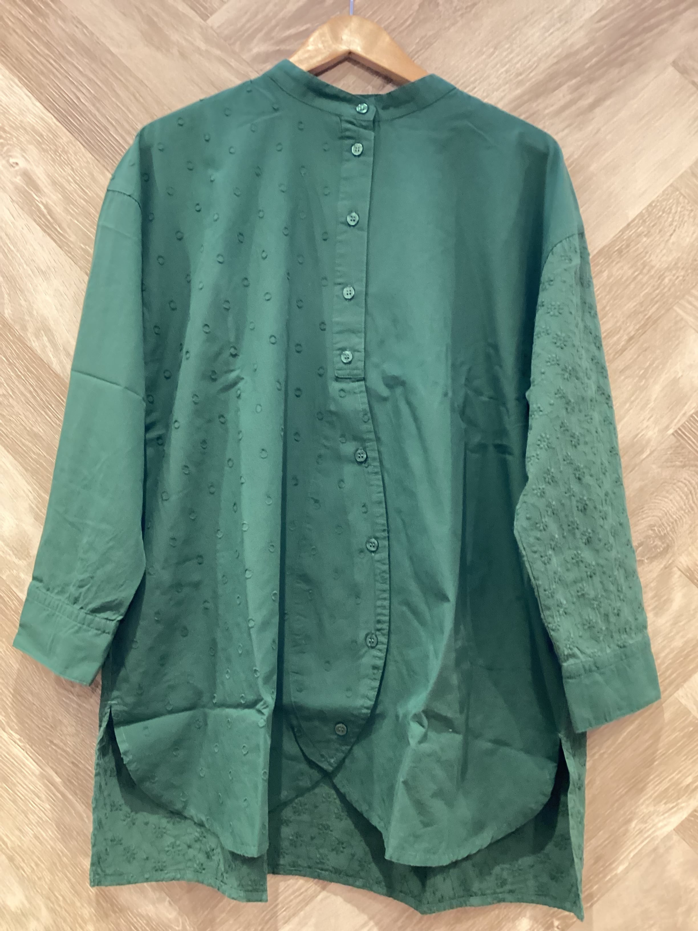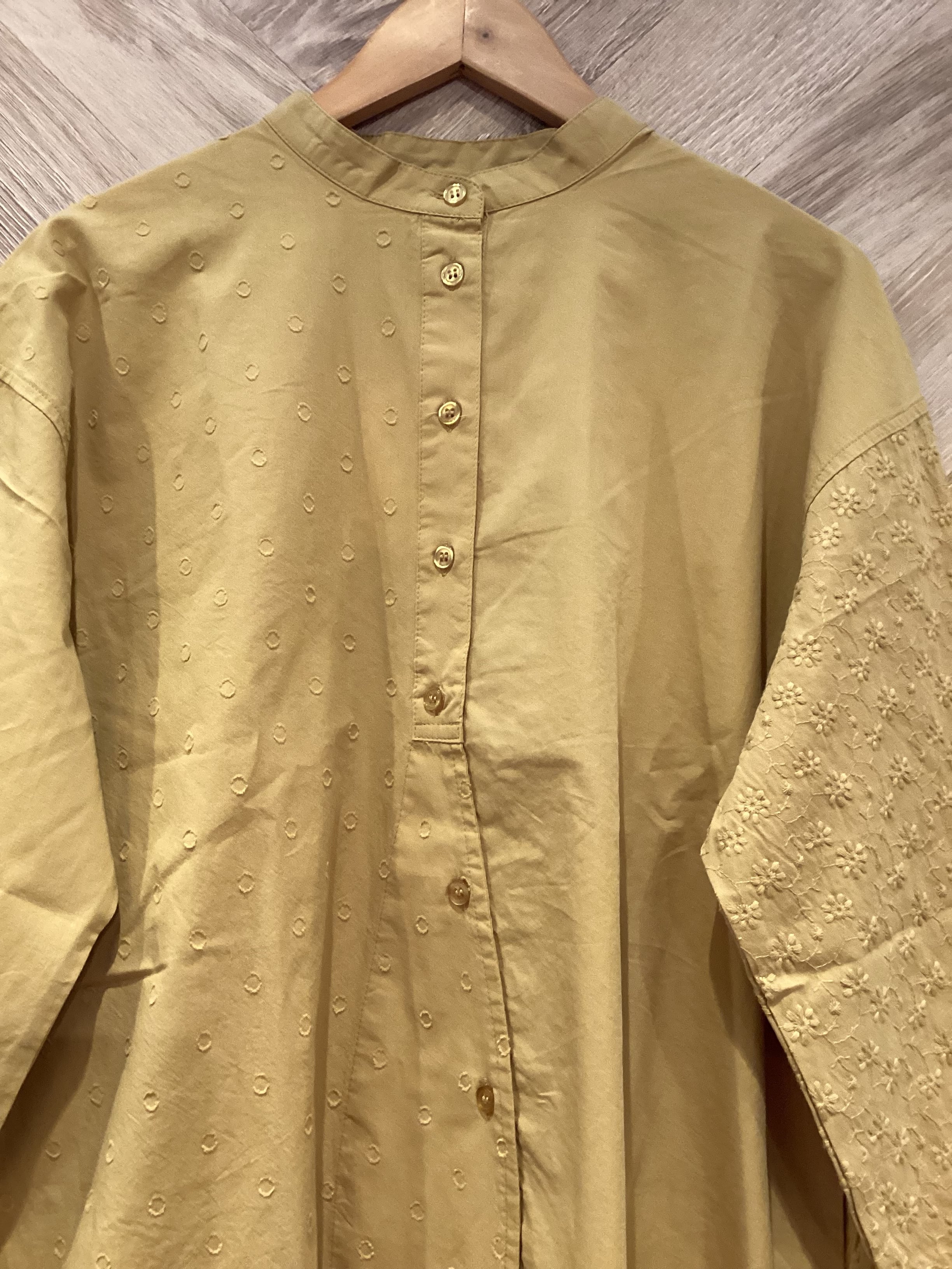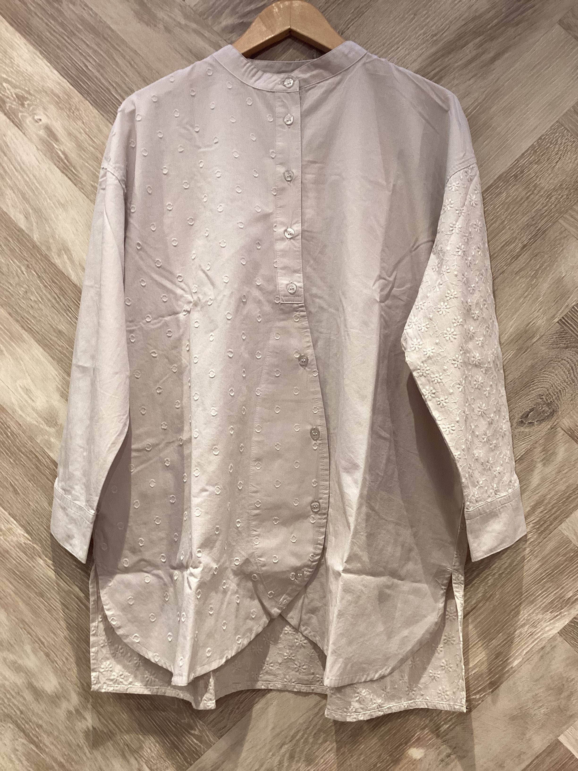 裾フロントカーブのデザインが目を引くシャツチュニック
