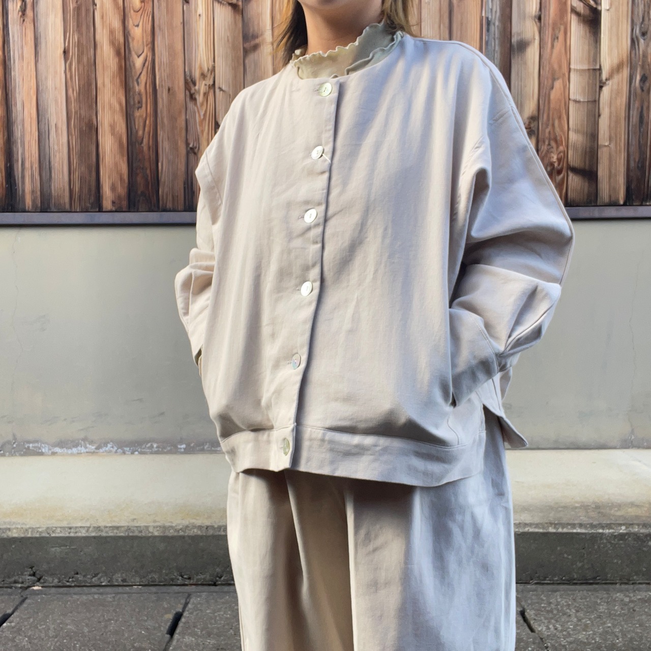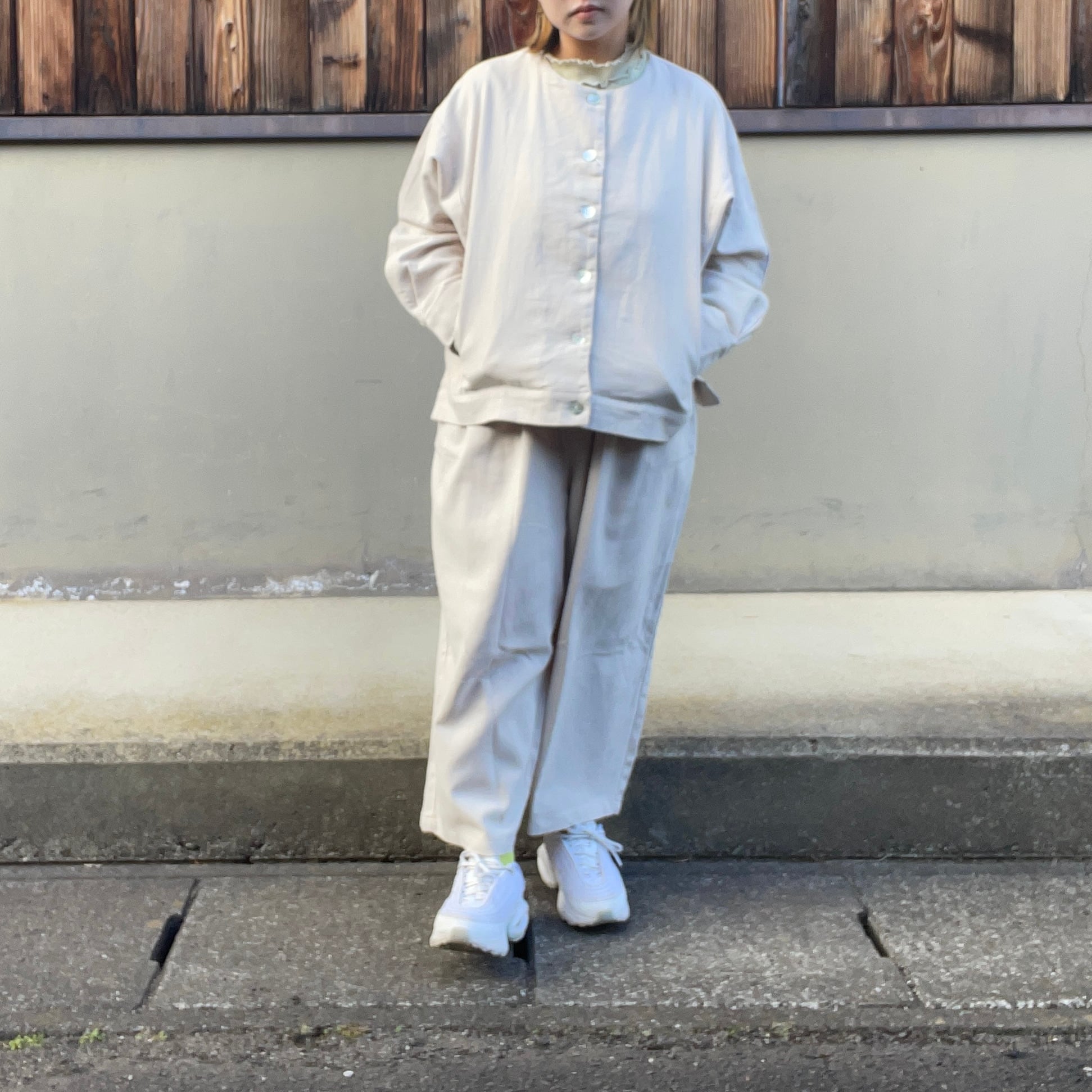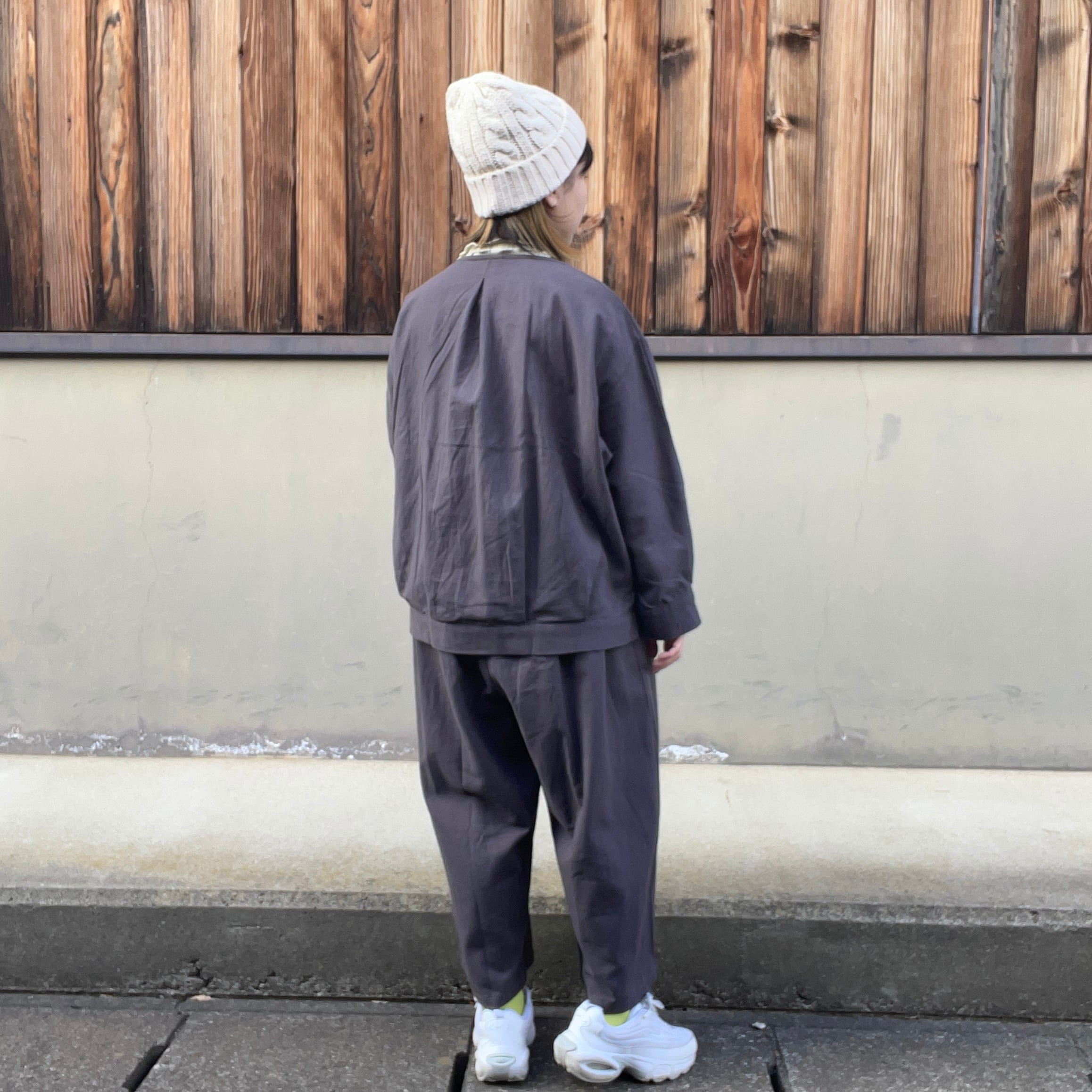 タックによって立体的なシルエットに仕上げており普段使いきちんと服としても着用できます