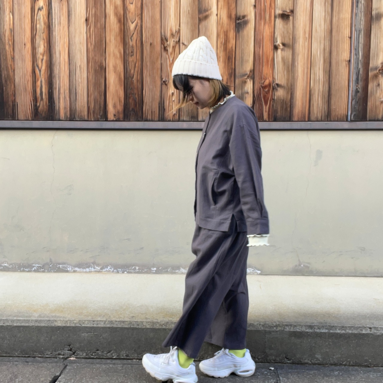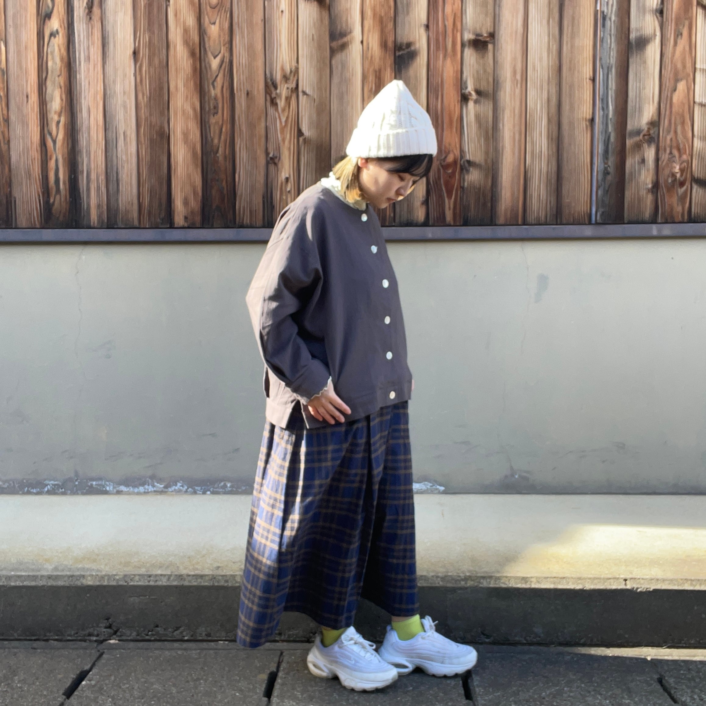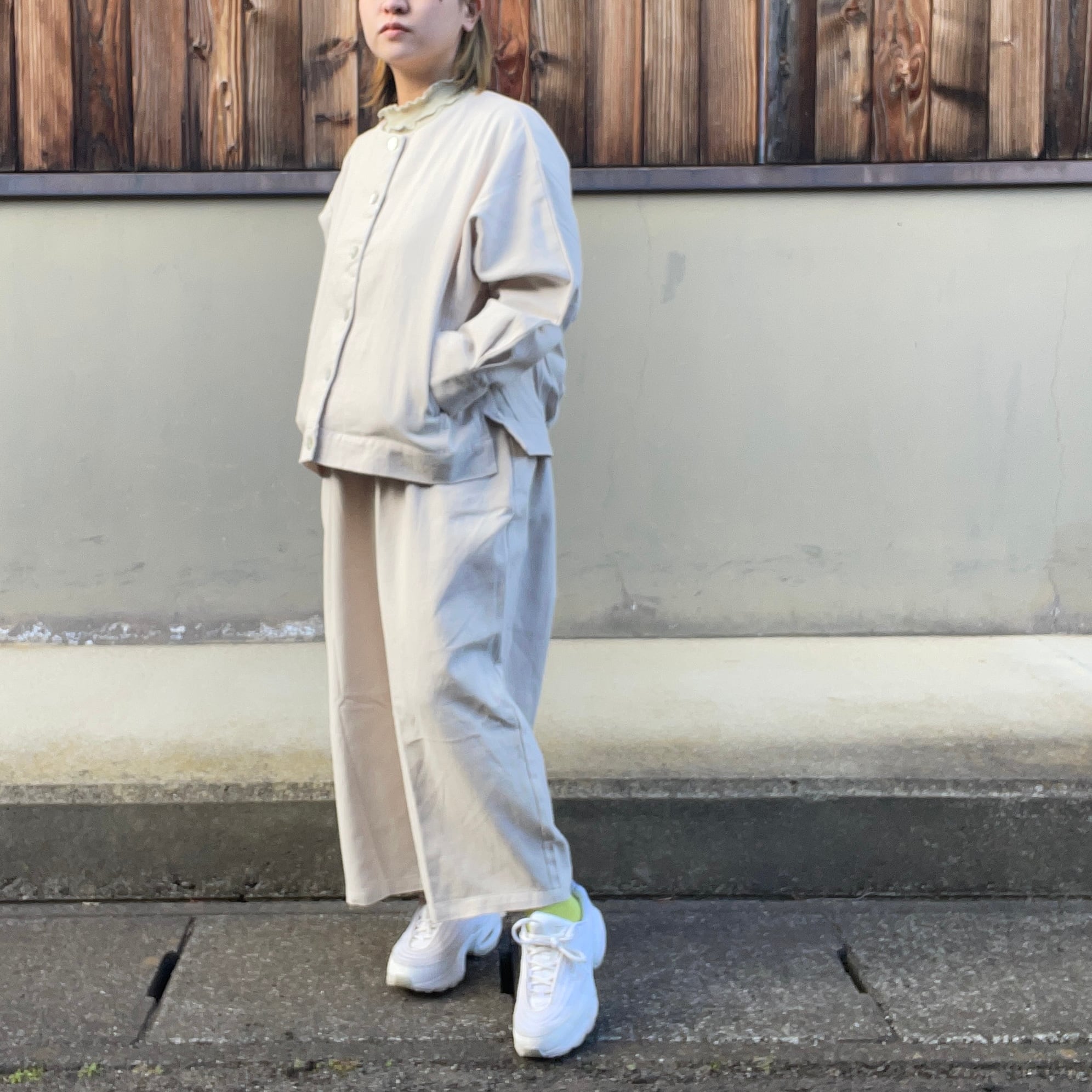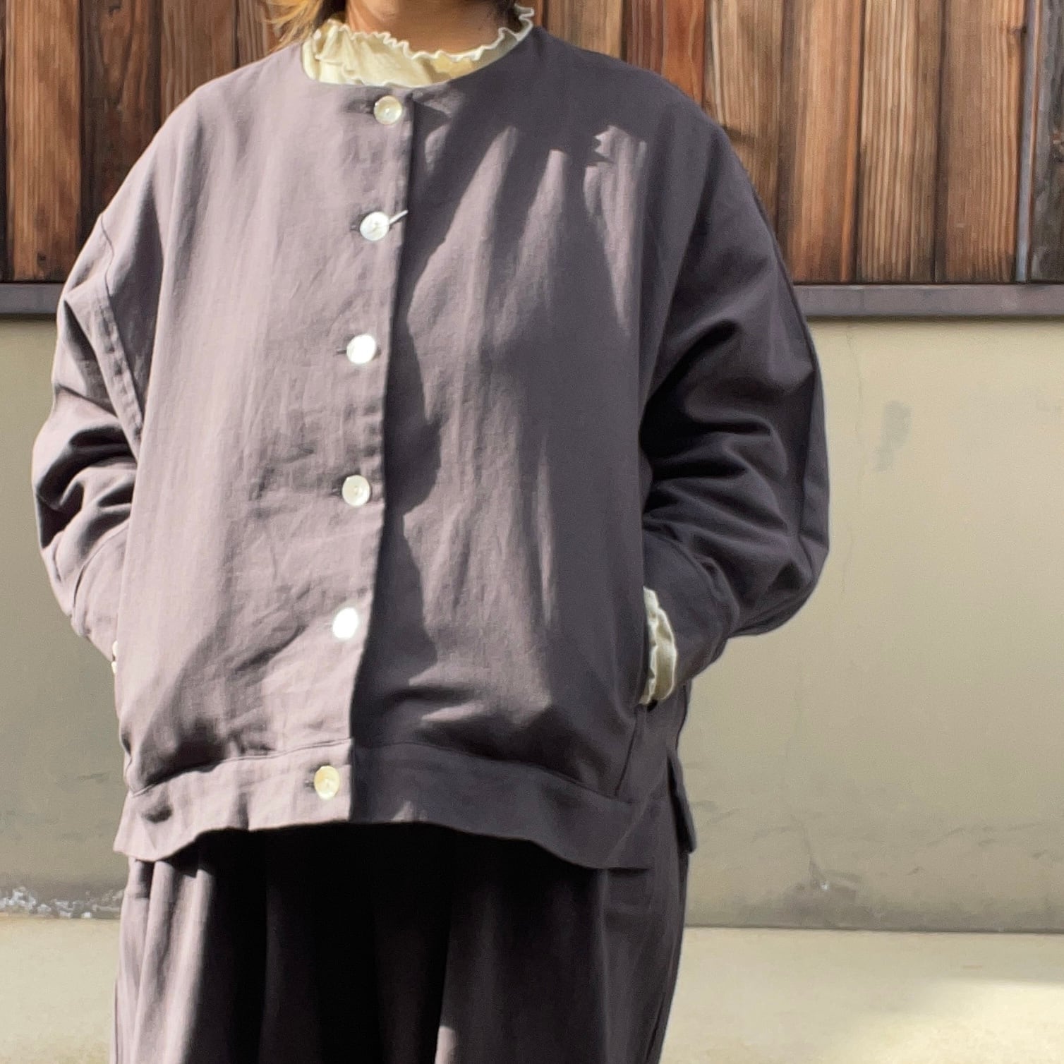 タックによって立体的なシルエットに仕上げており普段使いきちんと服としても着用できます