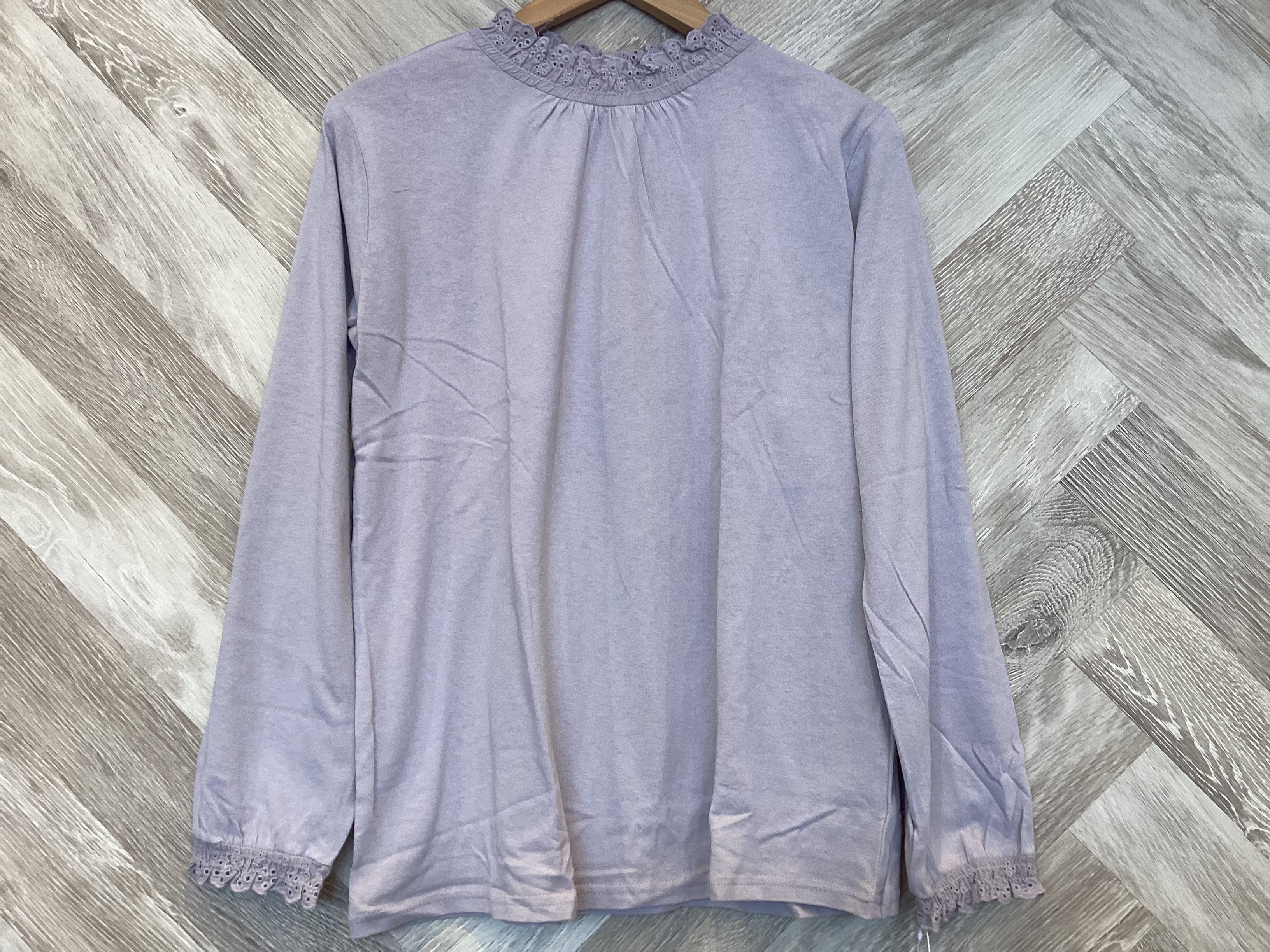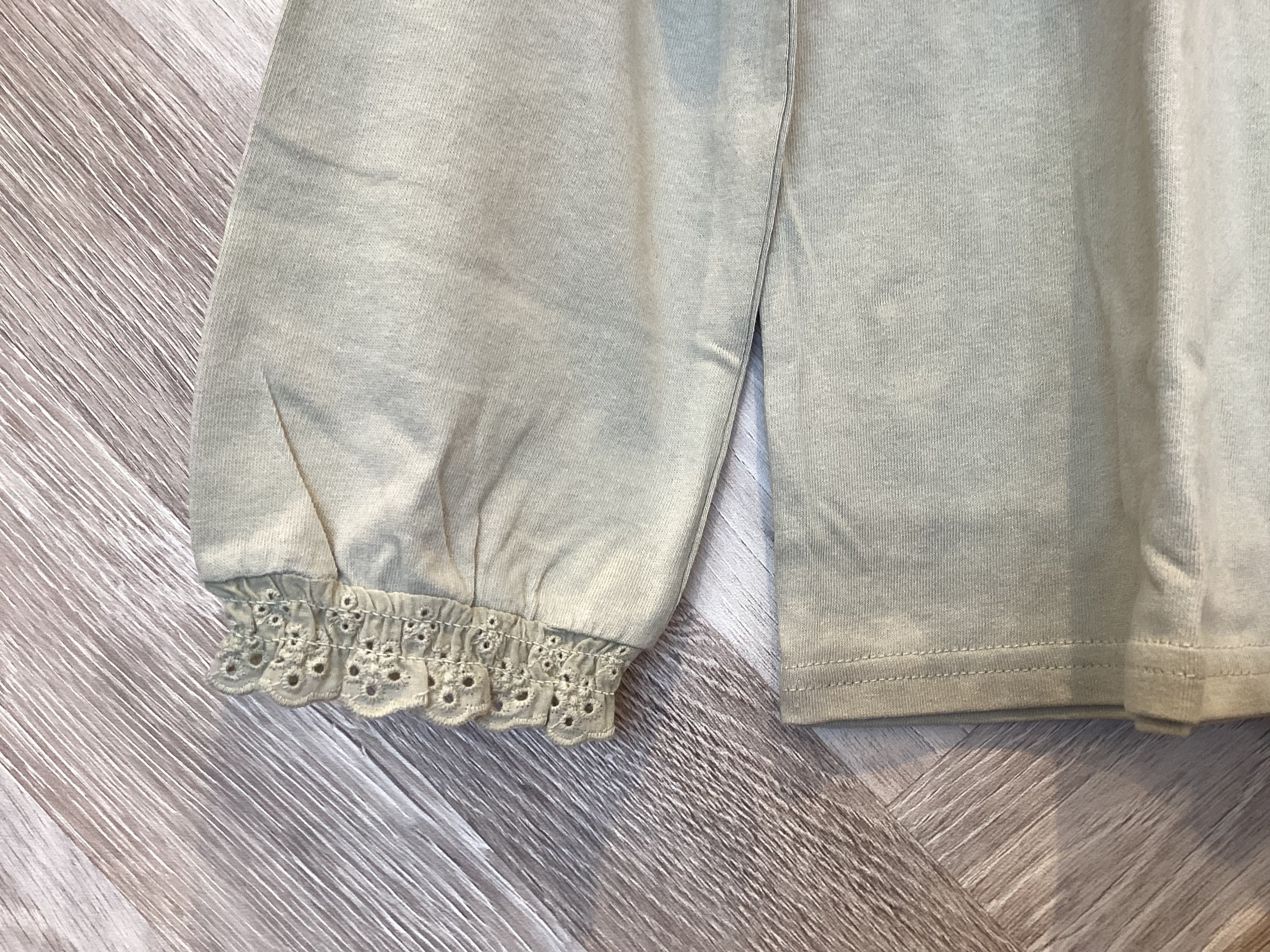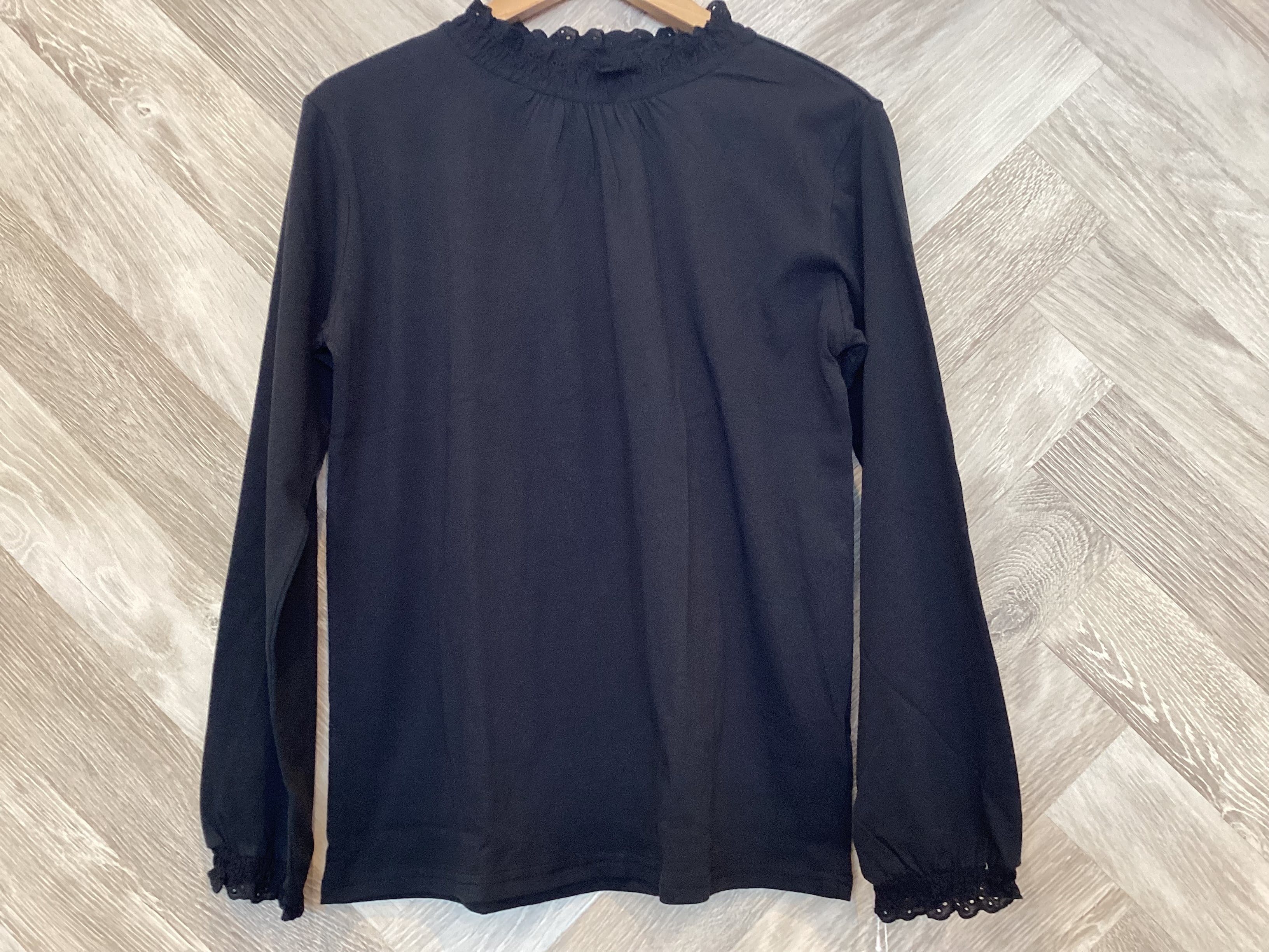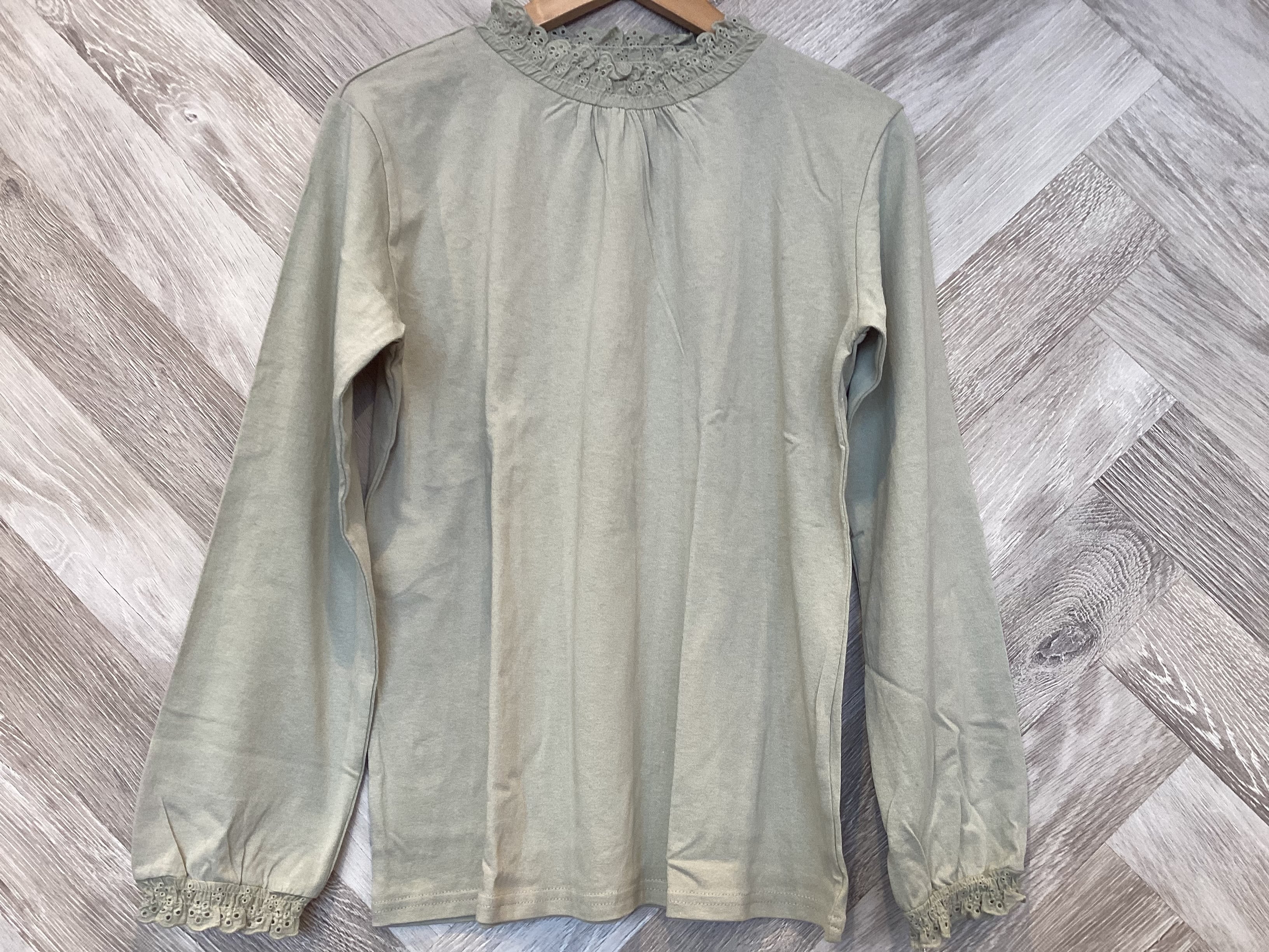 襟元と袖口にあしらったスカラップレースが程よく甘さを添えてデイリーに馴染んでくれます