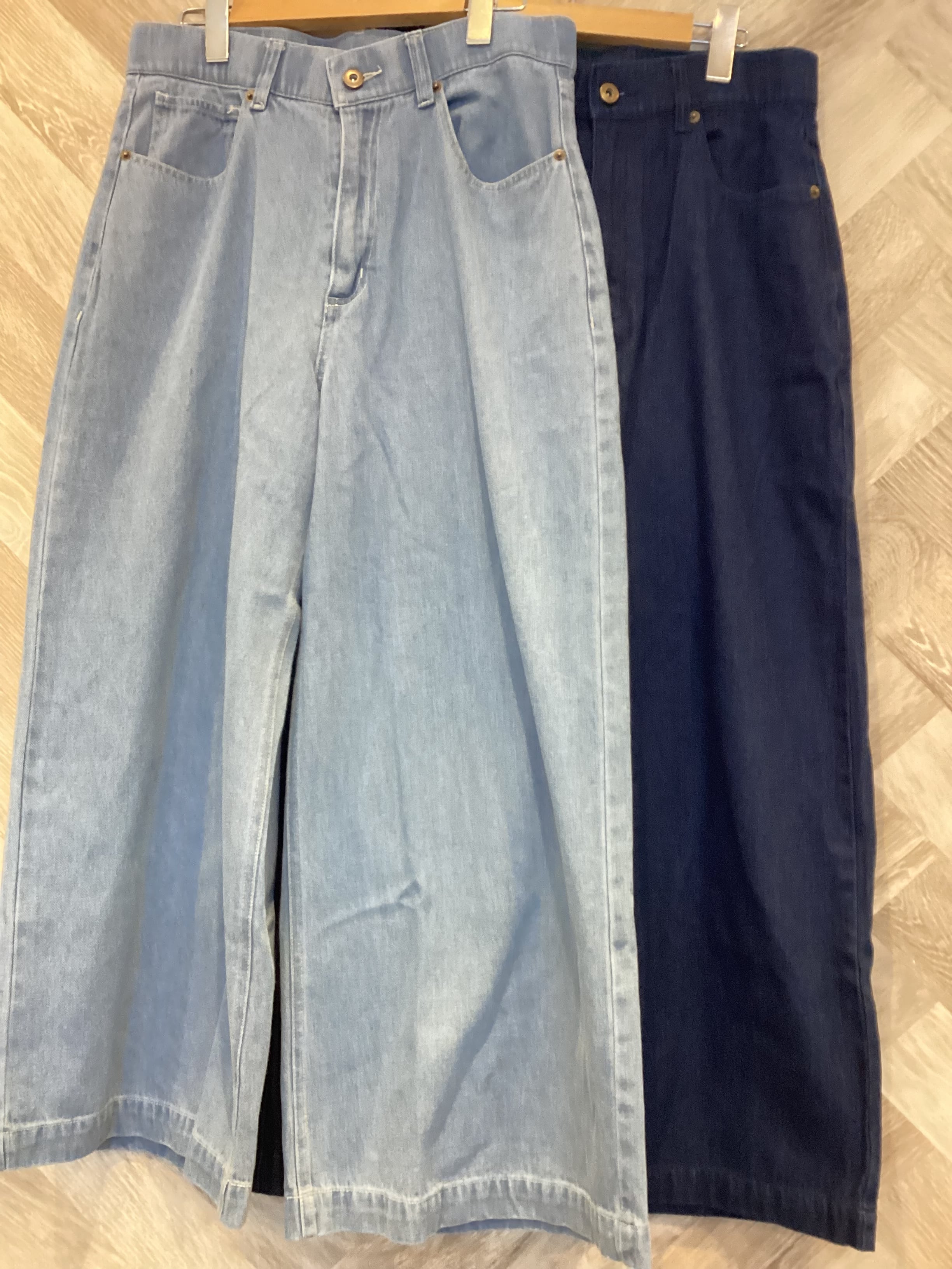 軽やかで落ち感のキレイなデニム素材を使用したワイドフレアーパンツです