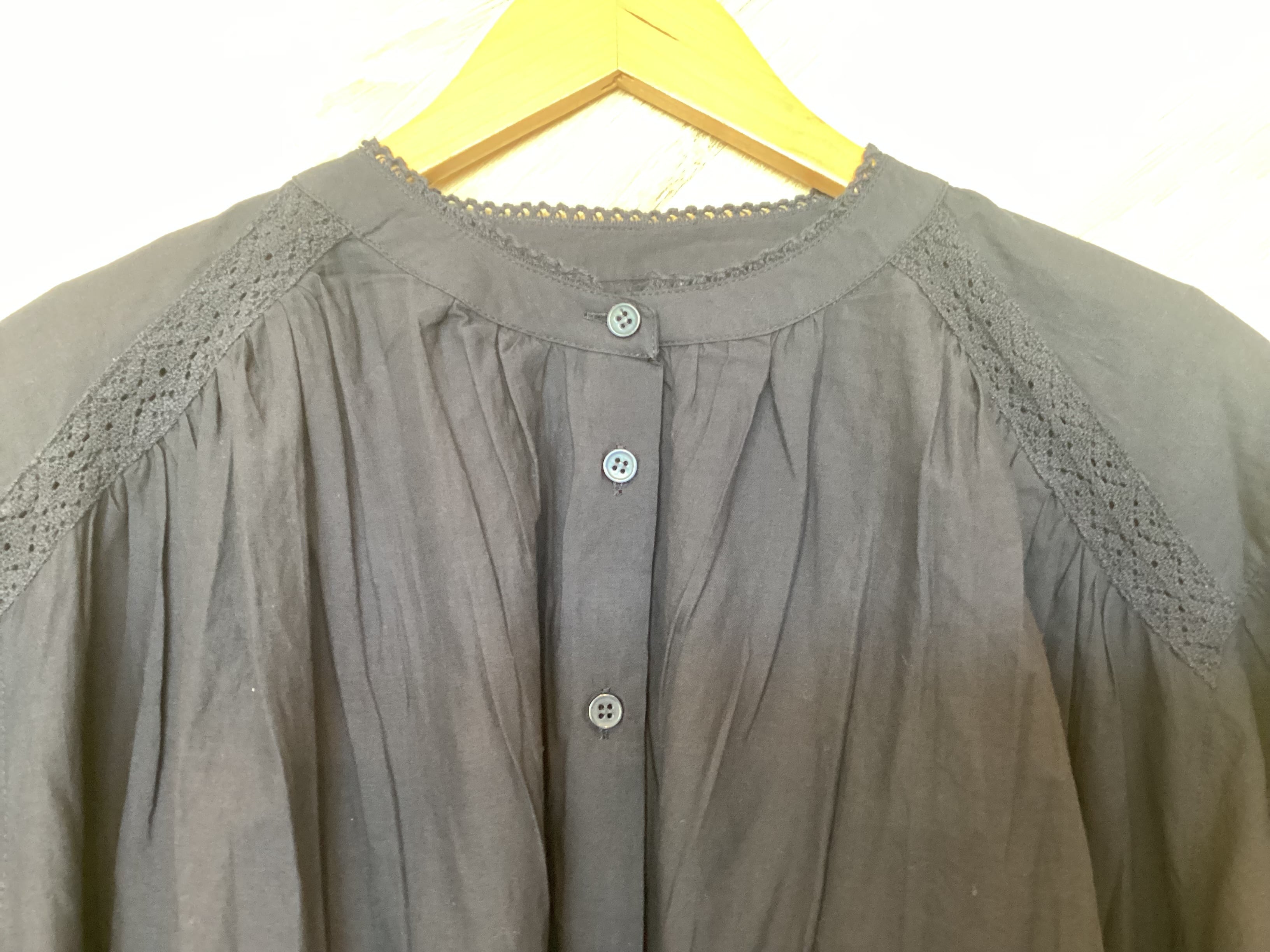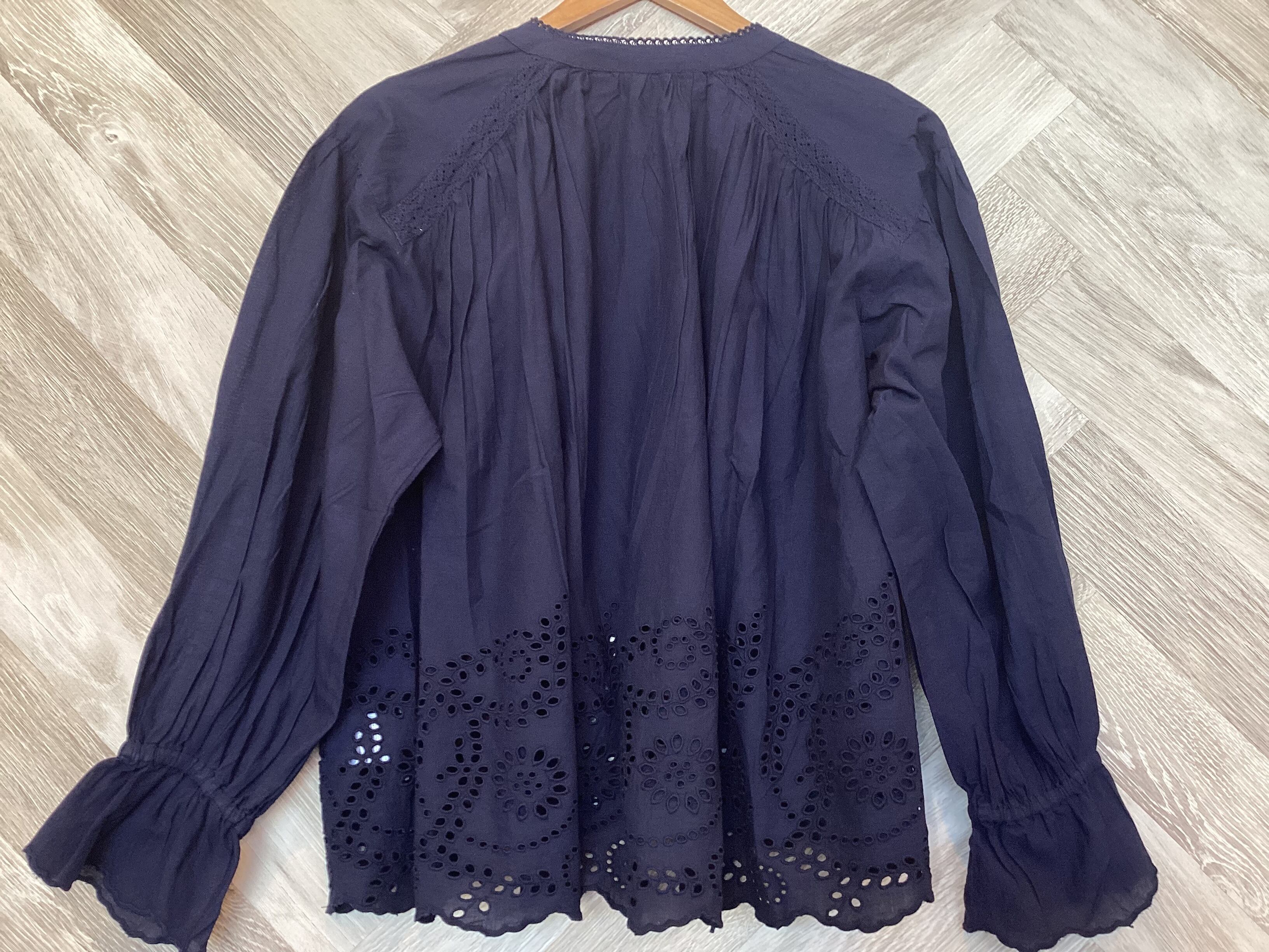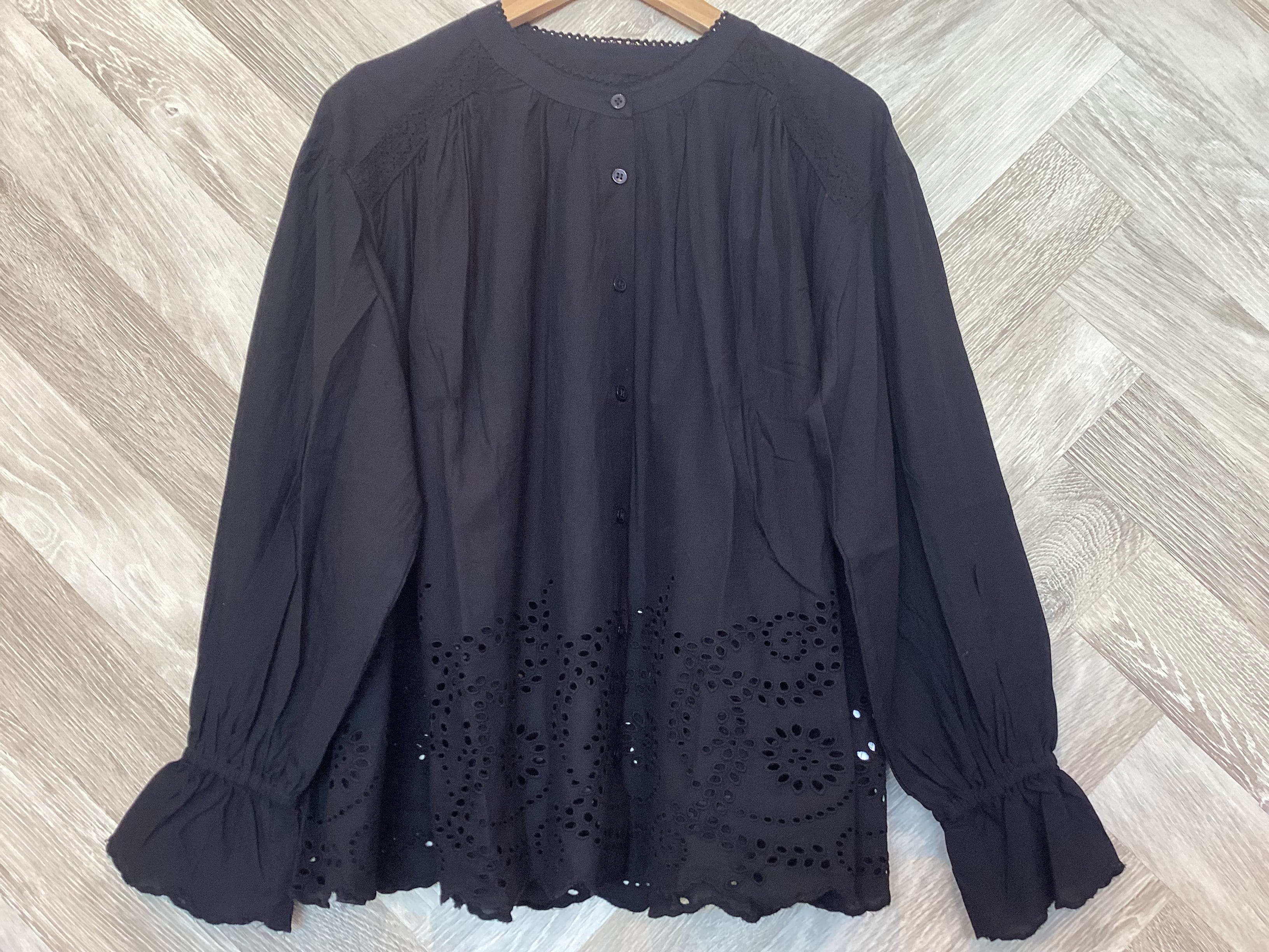 シフリー刺繍&袖口スカラップ前開きブラウス