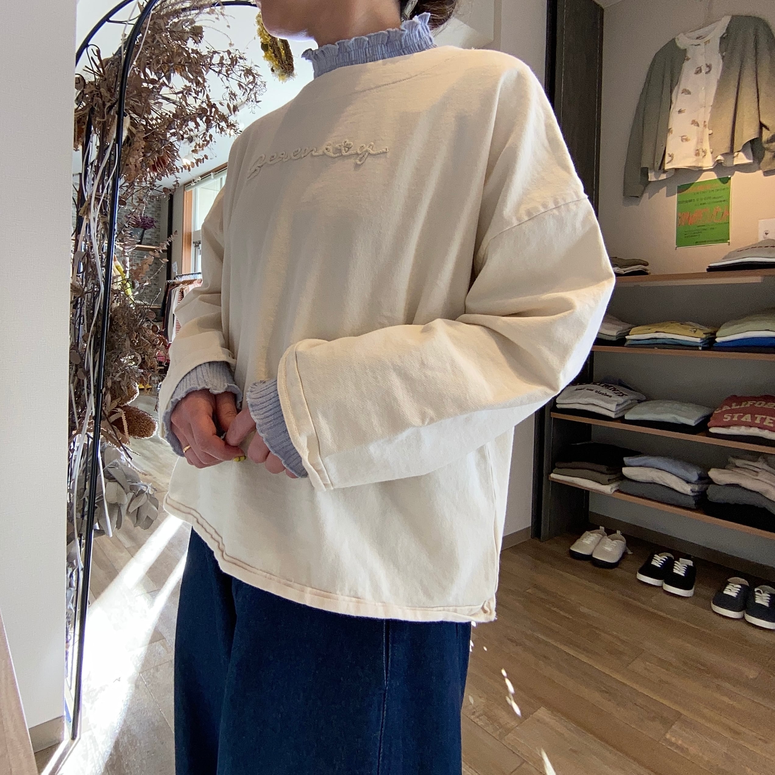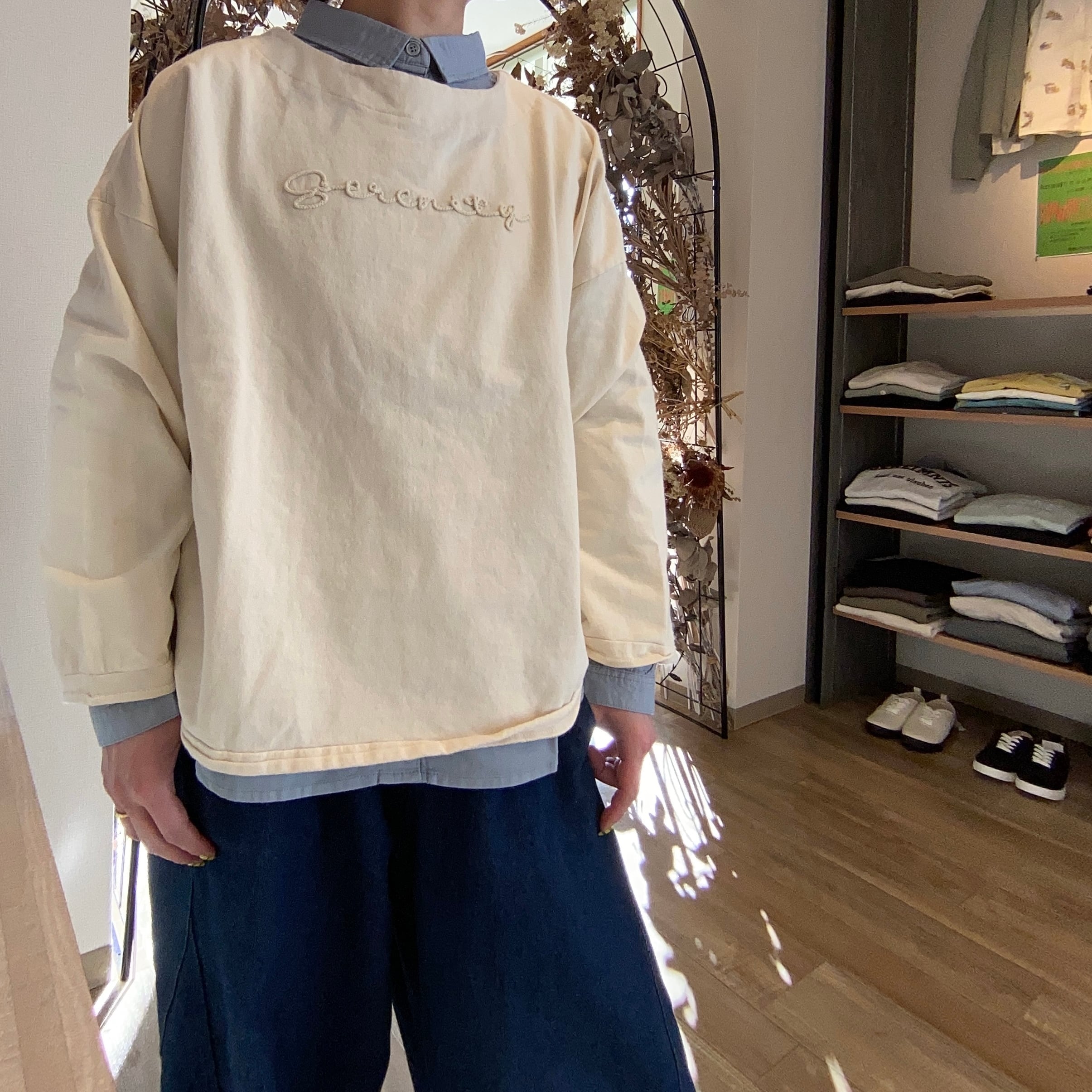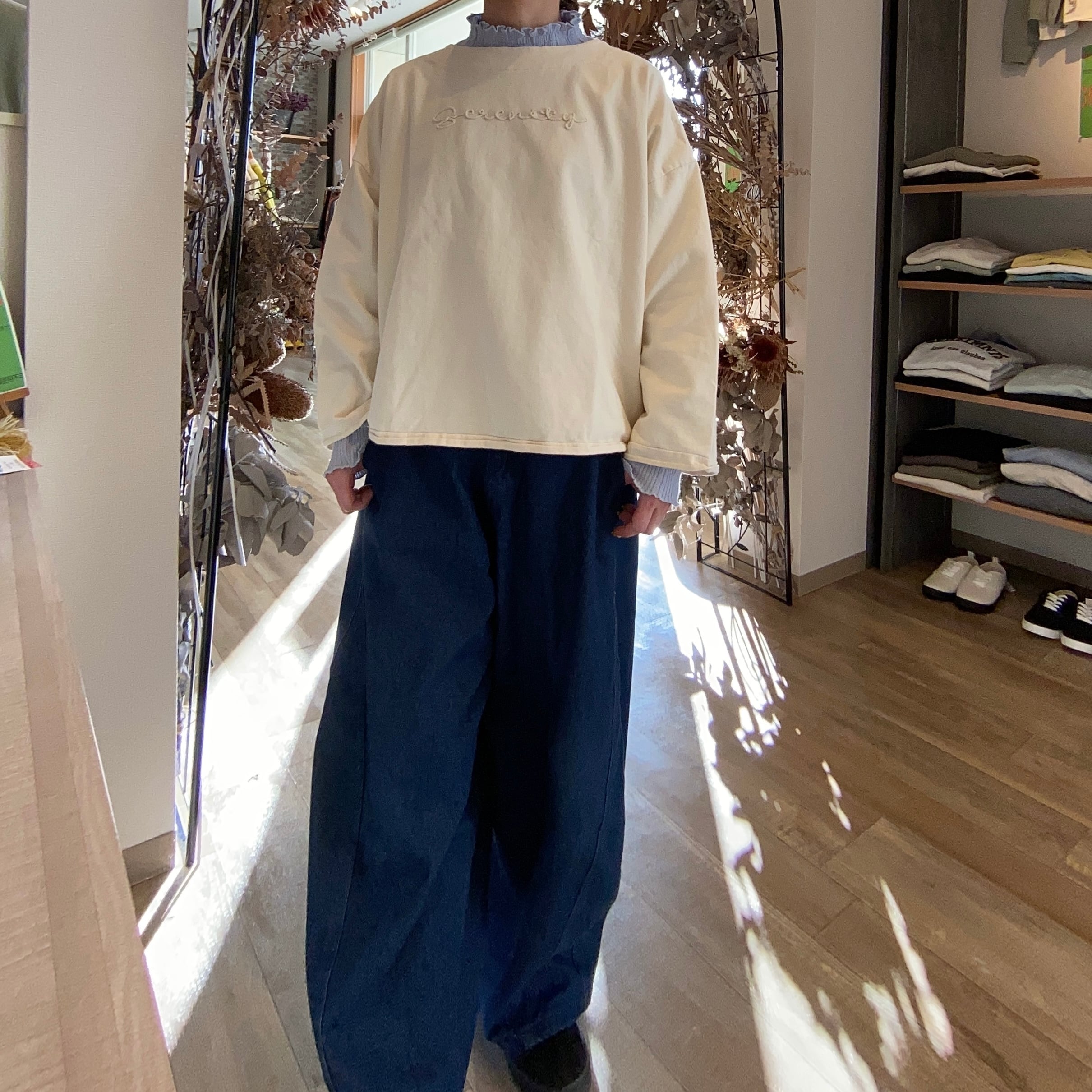 インディゴ裏毛ロゴ刺繍トップス