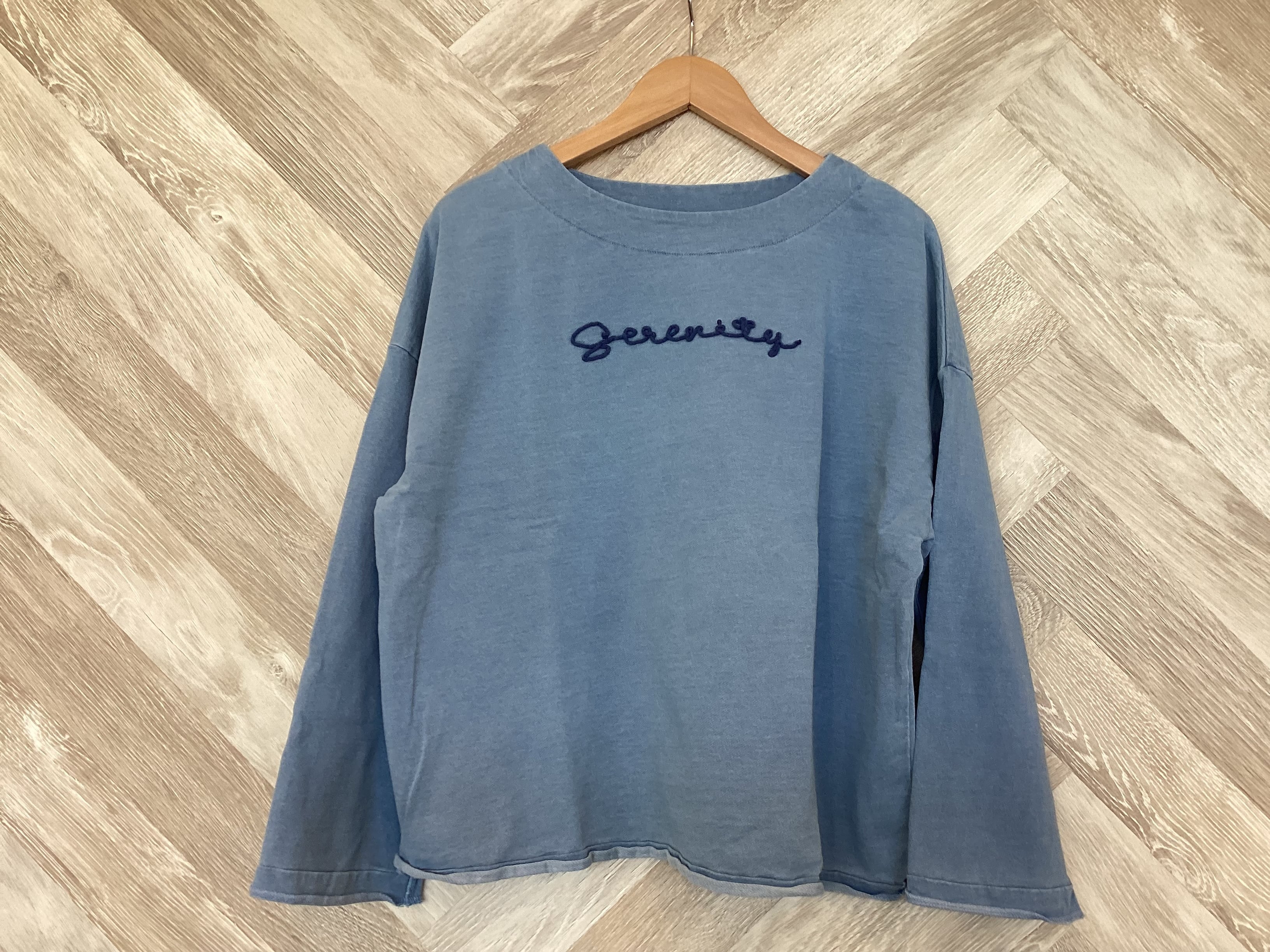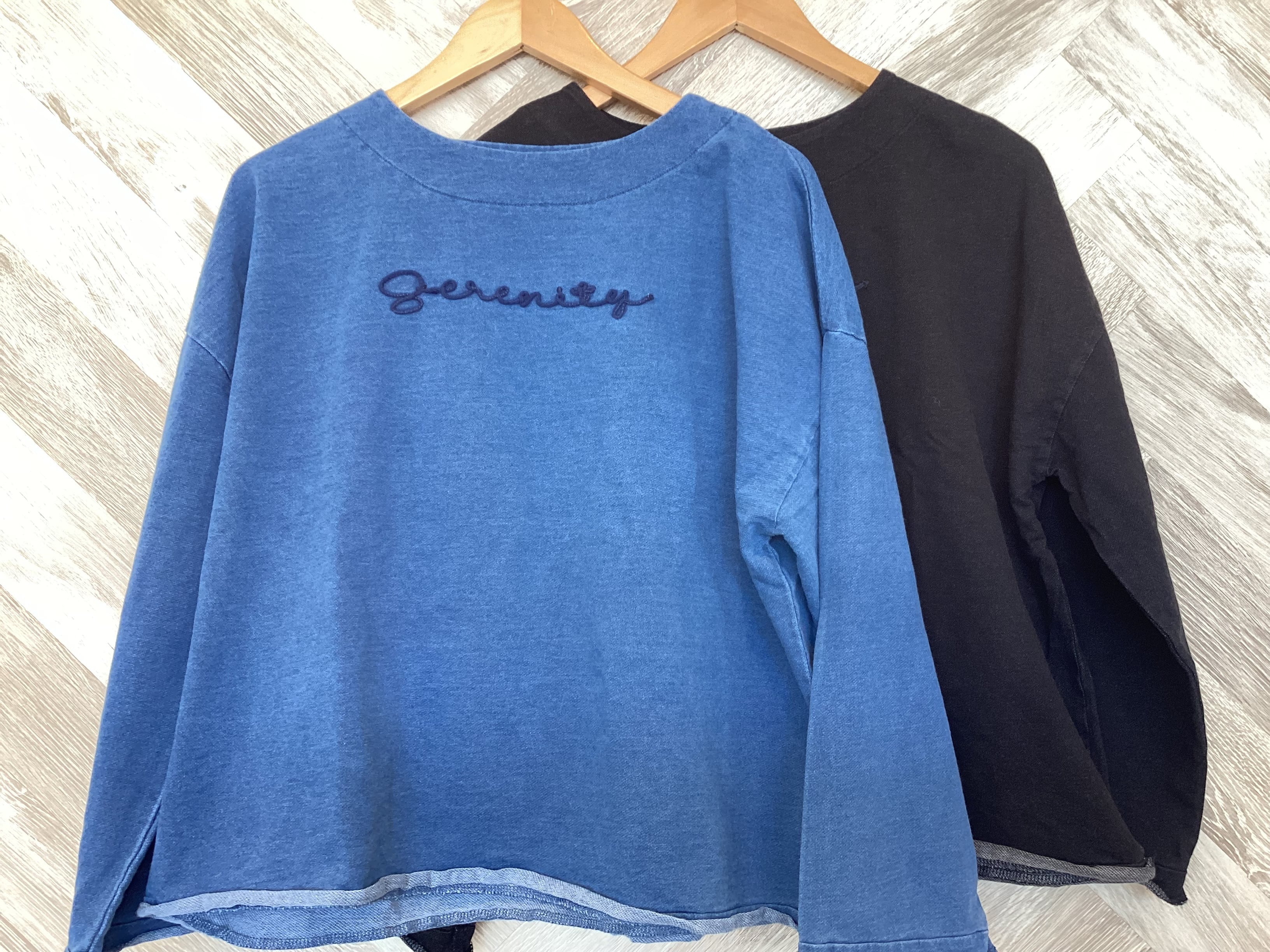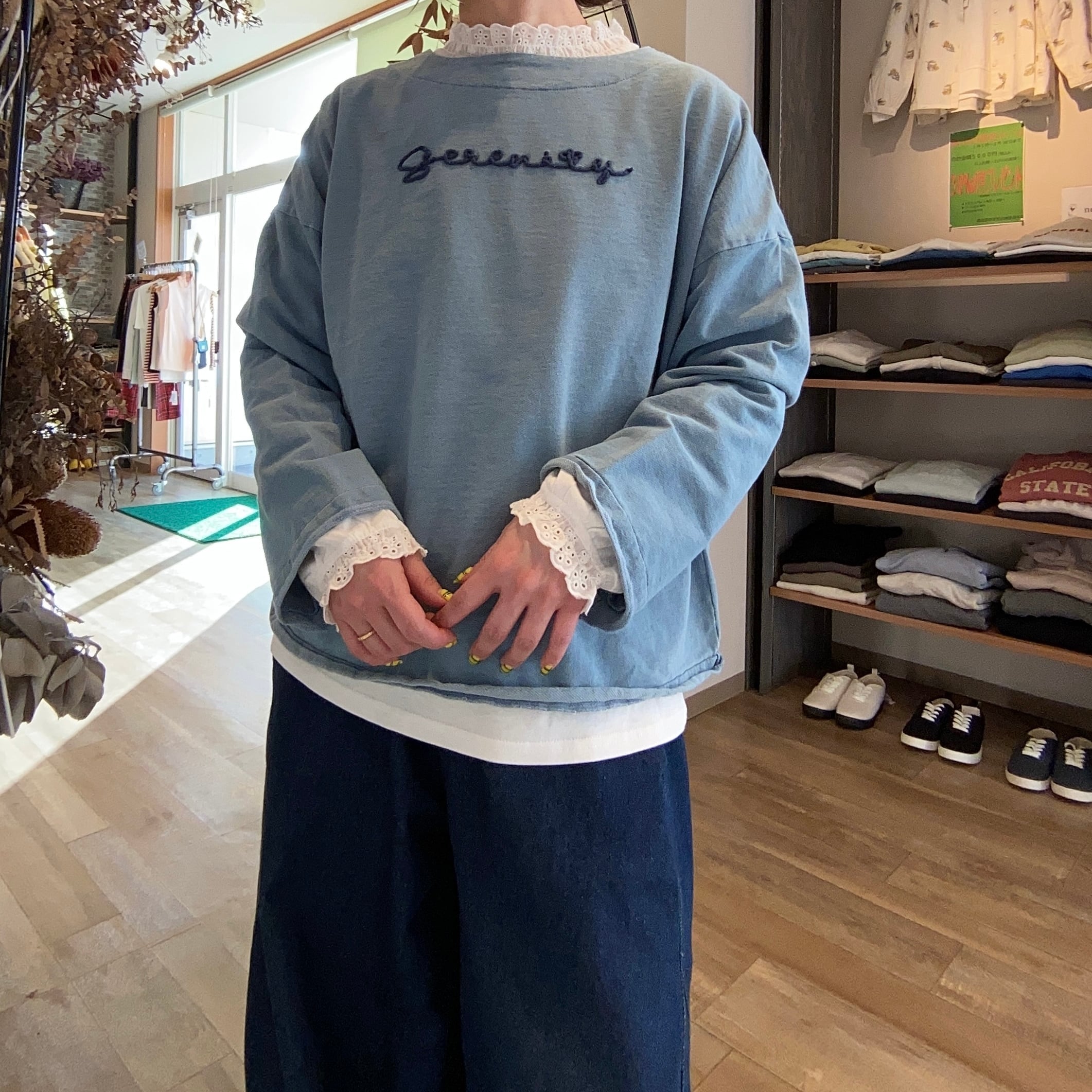 インディゴ裏毛ロゴ刺繍トップス