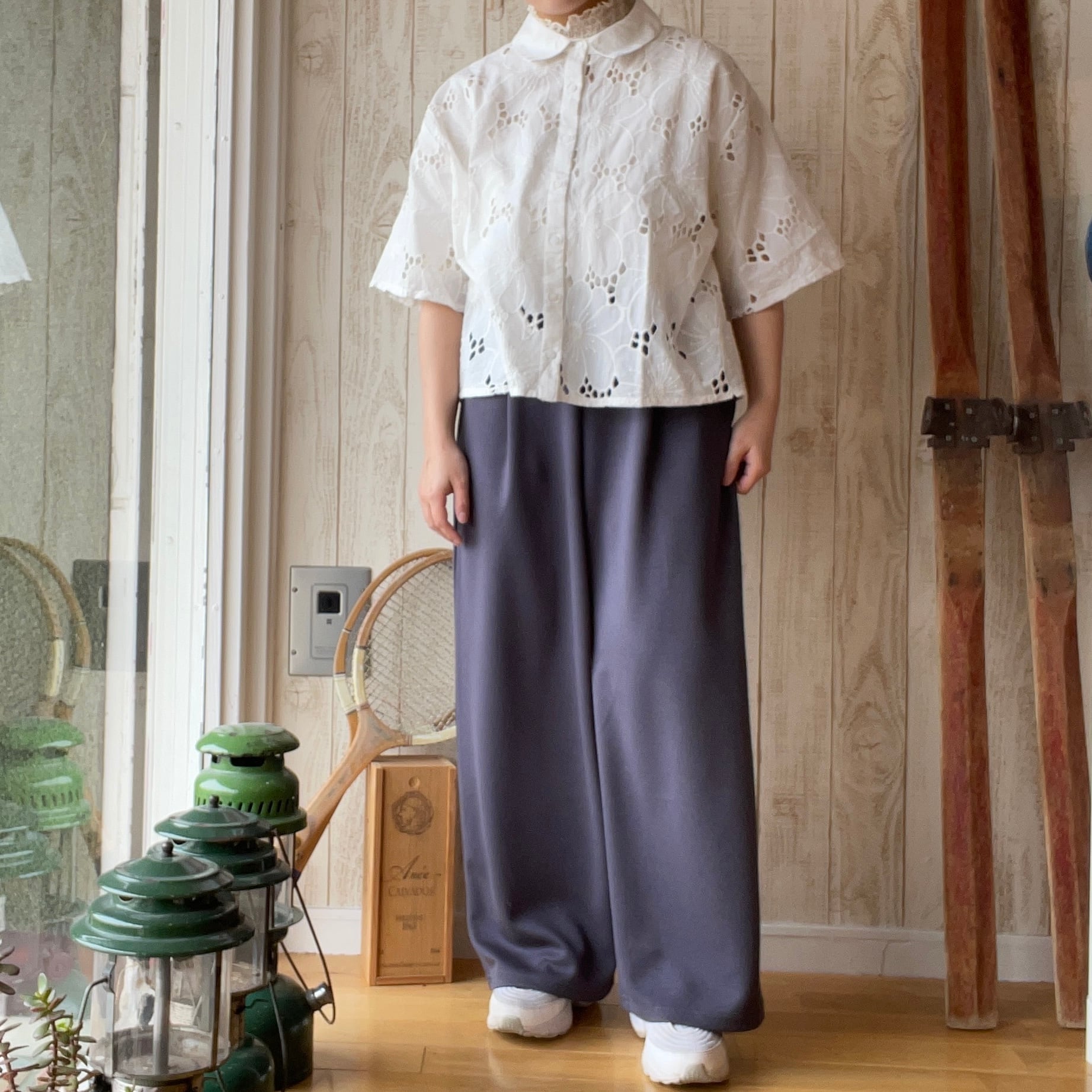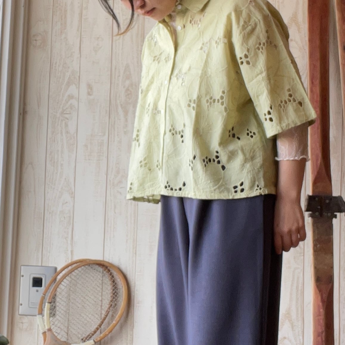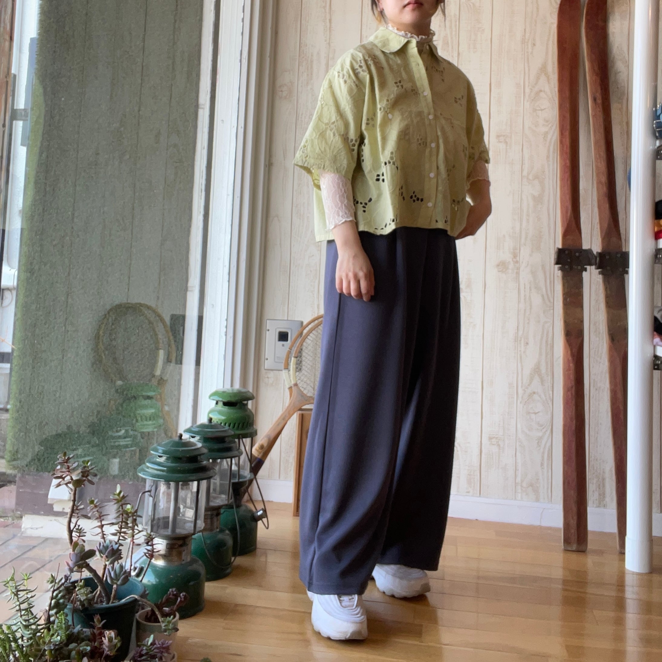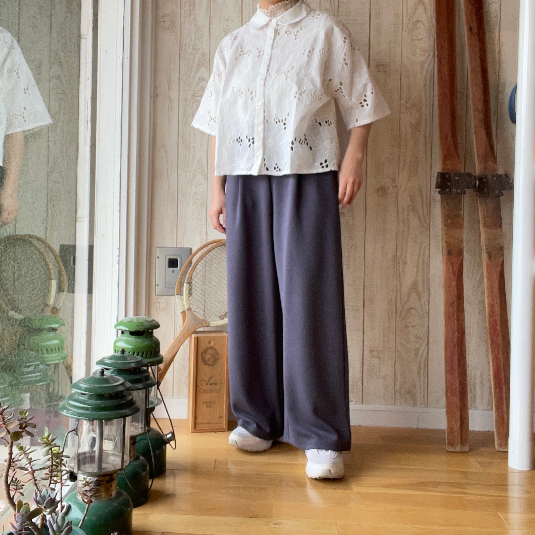 シフリー刺繍×無地シャツブラウス