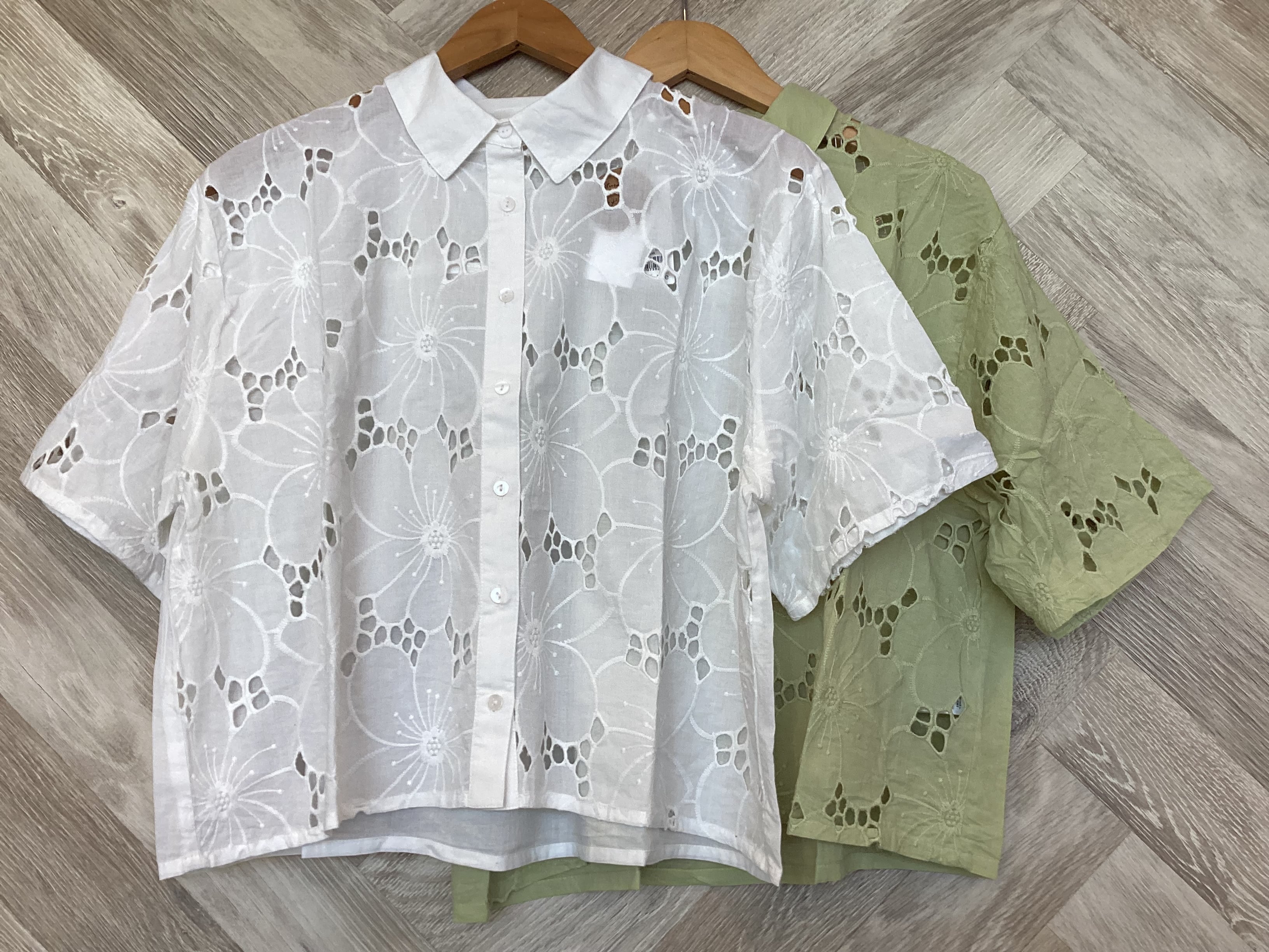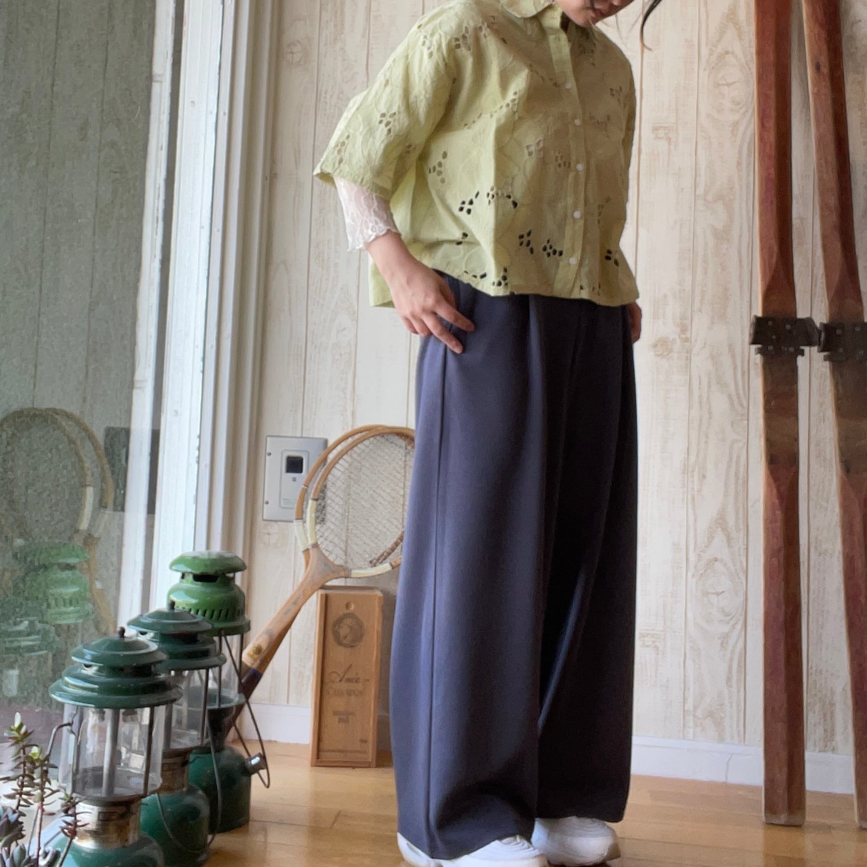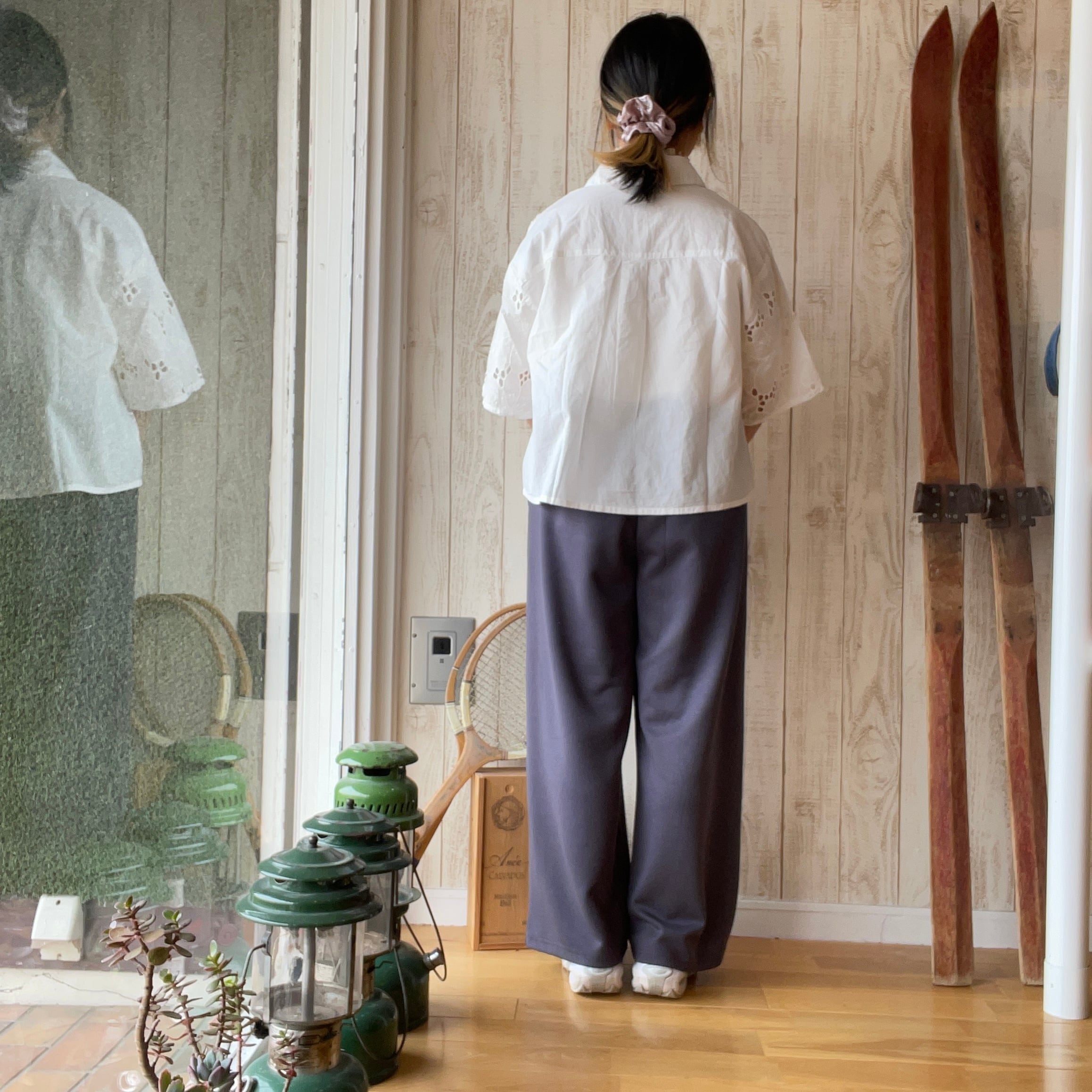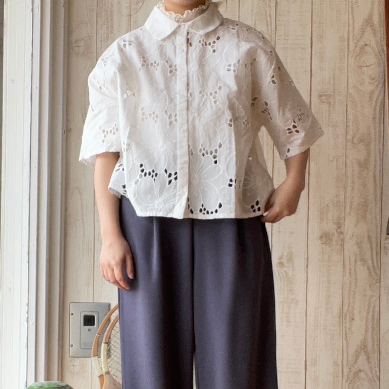 シフリー刺繍×無地シャツブラウス