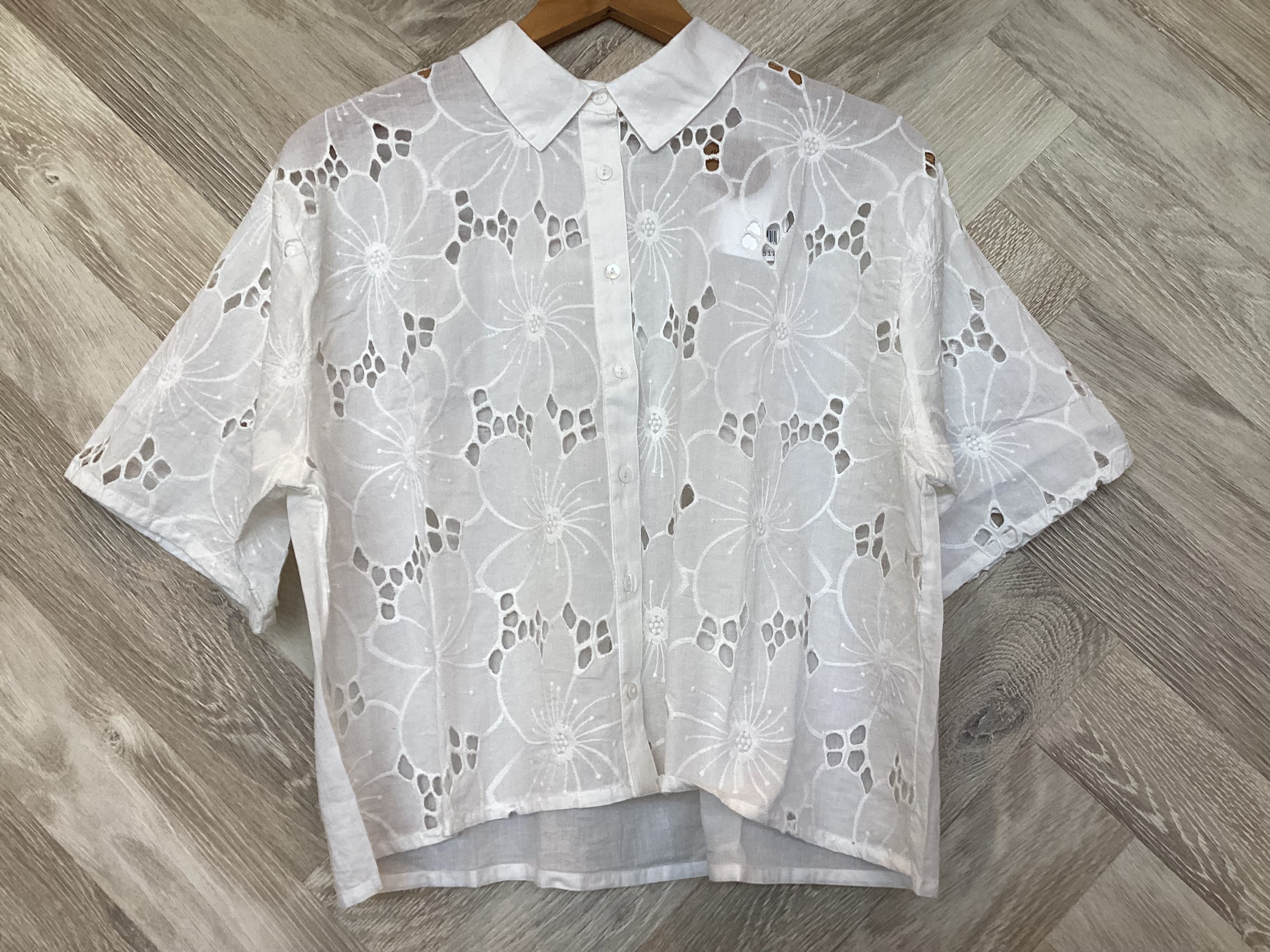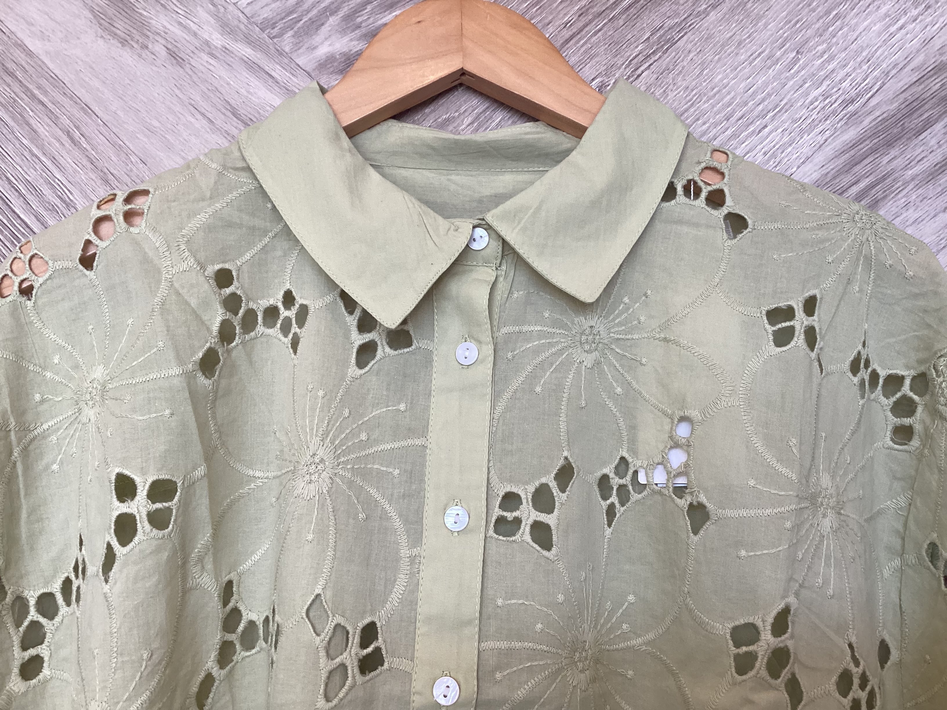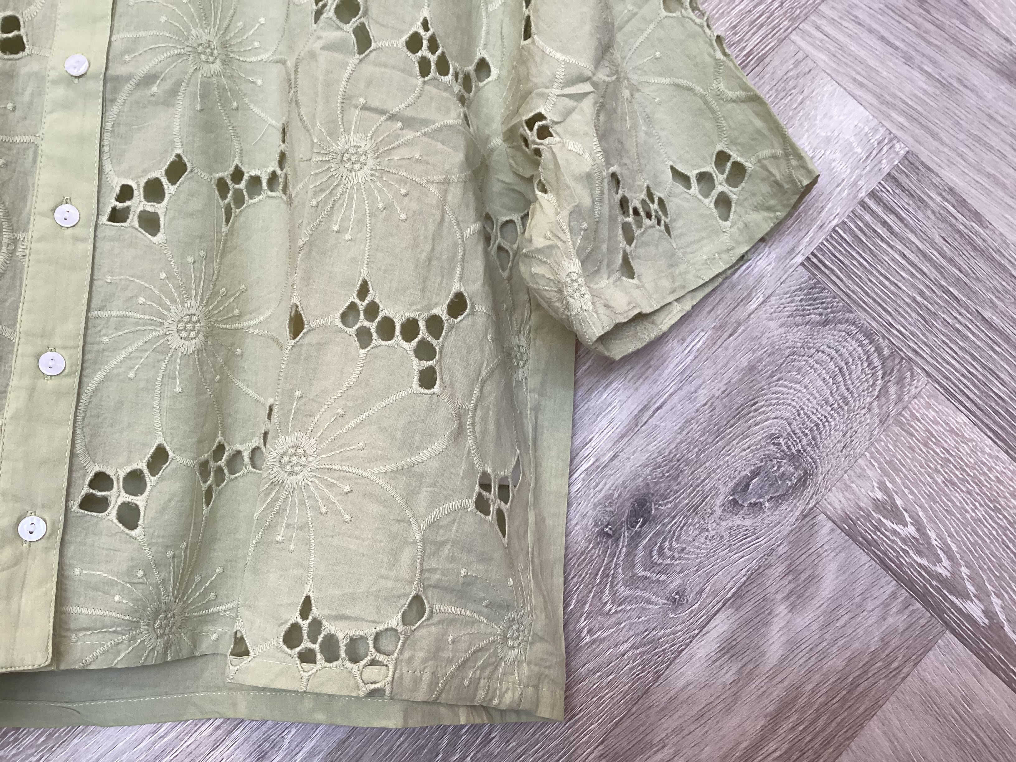 大きなフラワーモチーフのシフリー刺繍が夏に向けてピッタリの軽やかさと清涼感を演出するブラウス