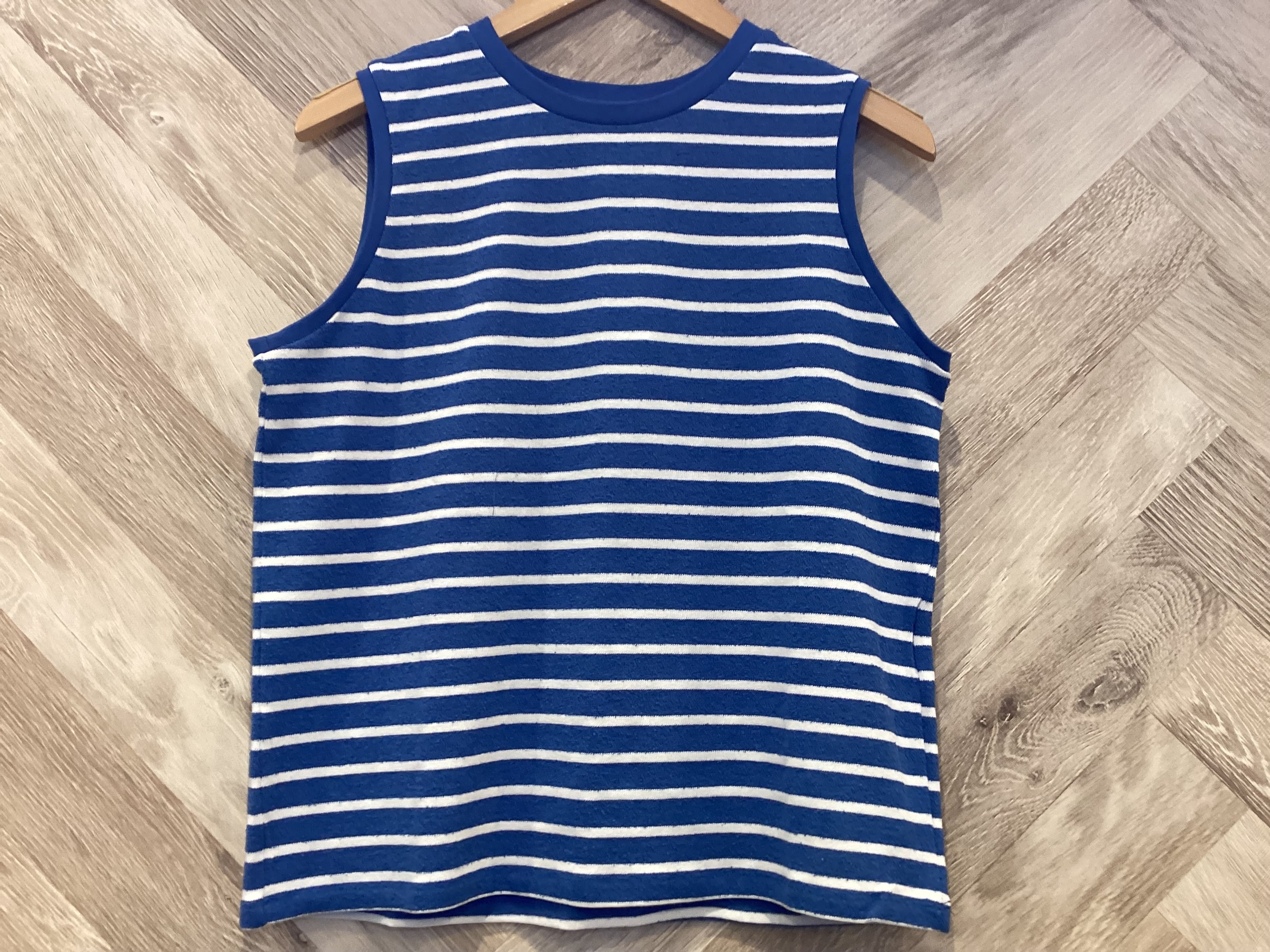 シンプルなノースリーブデザインですが体にまとわりにくい適度なハリ感があり1枚着でもレイヤードでも活躍