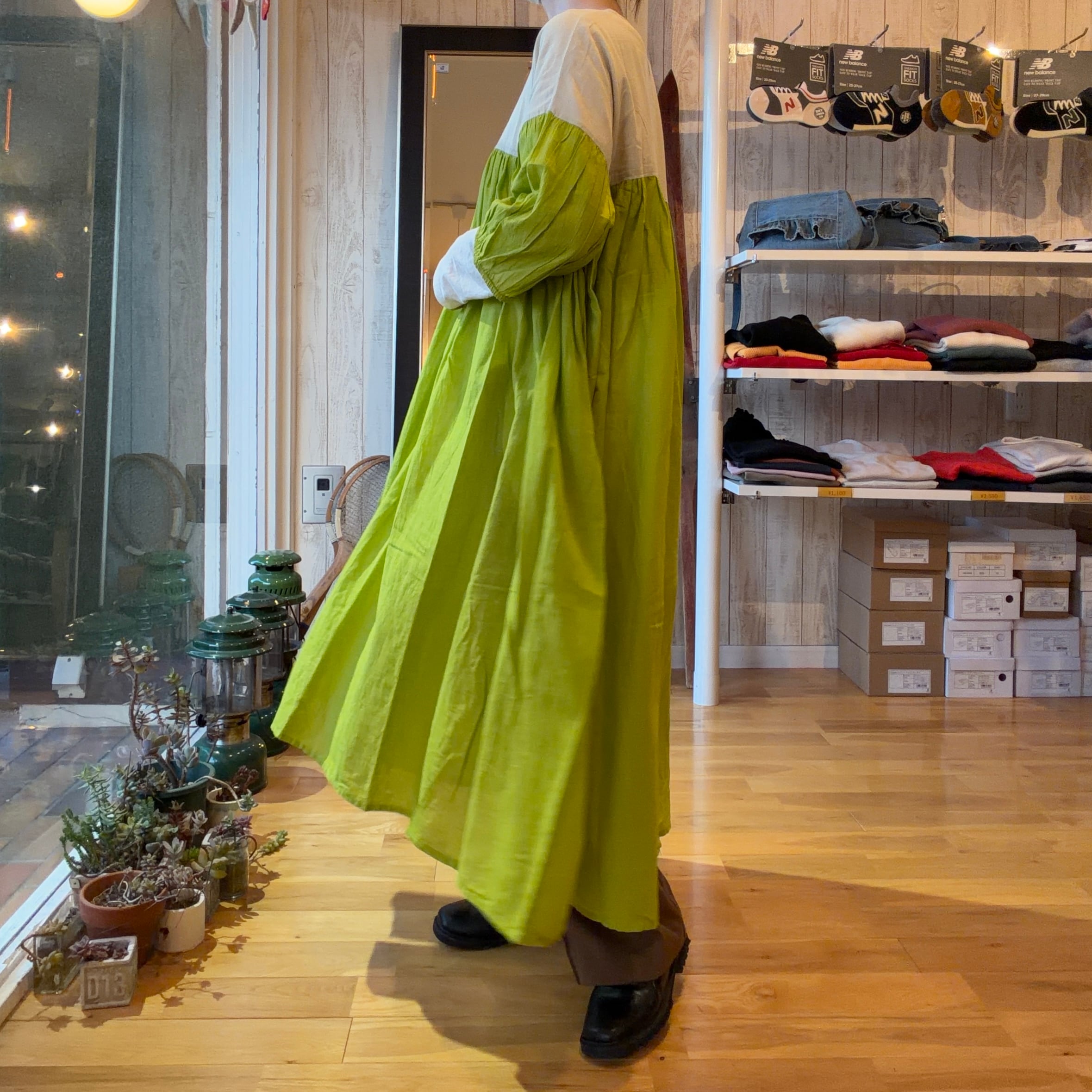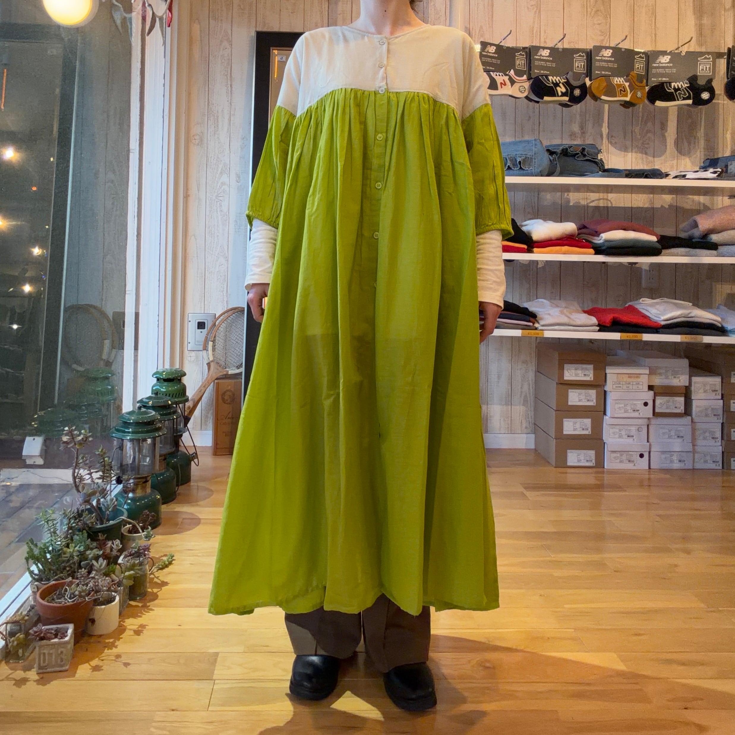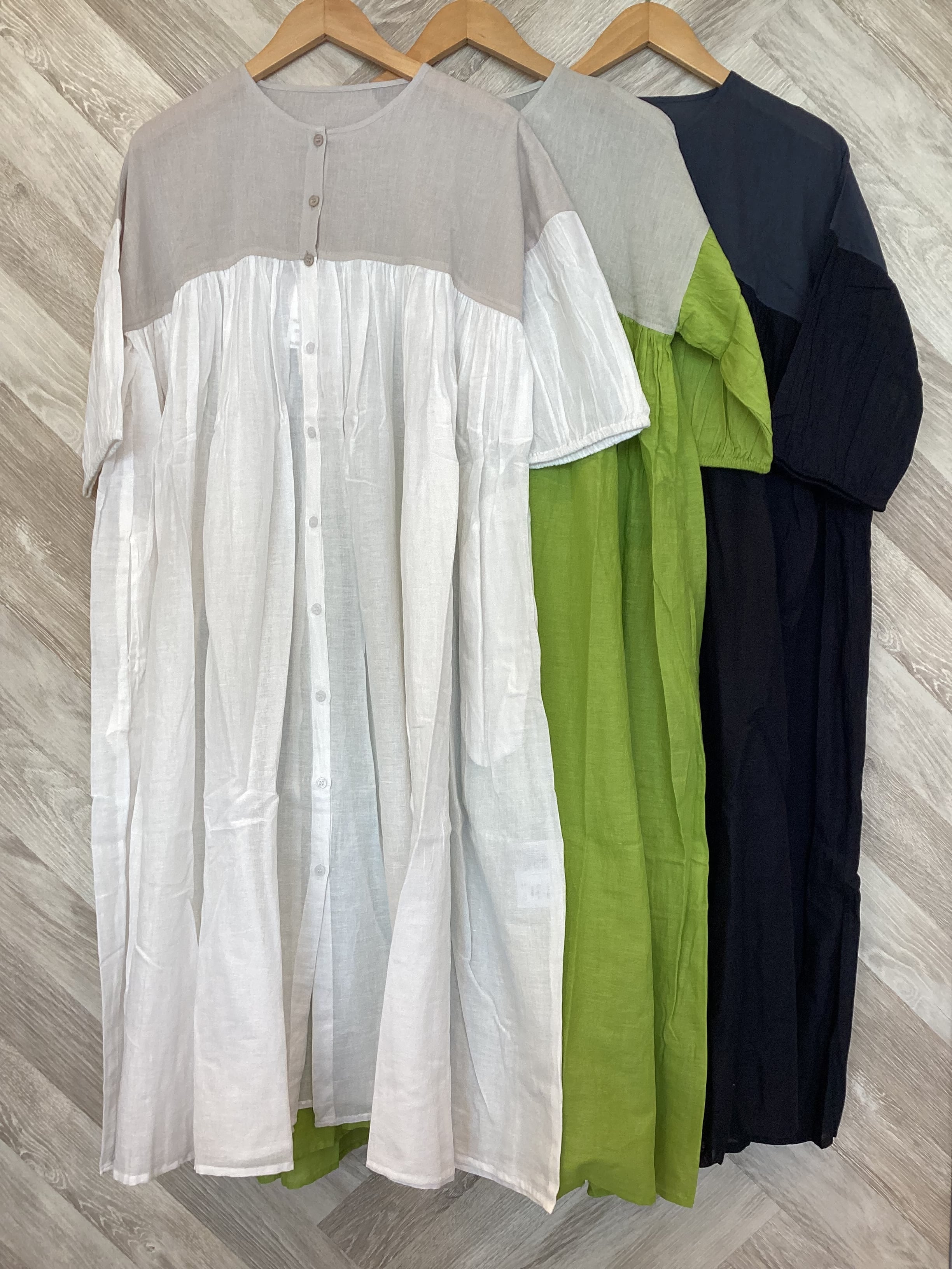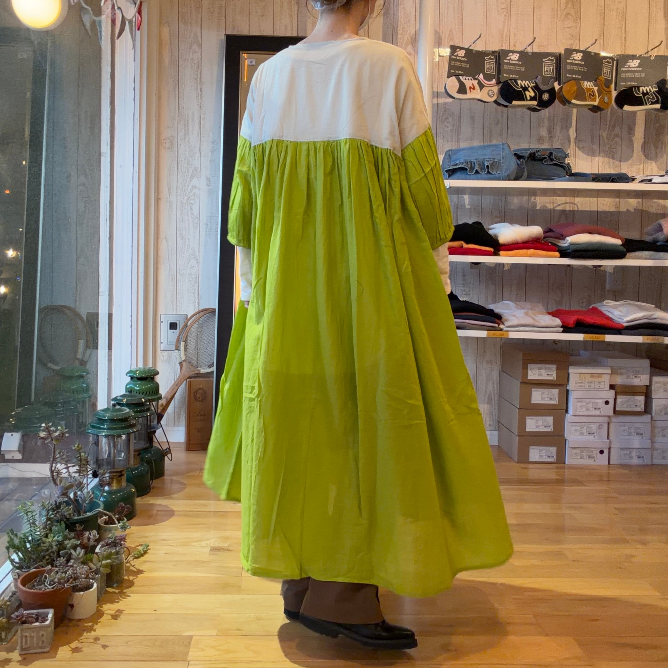 バイカラーギャザーワンピース