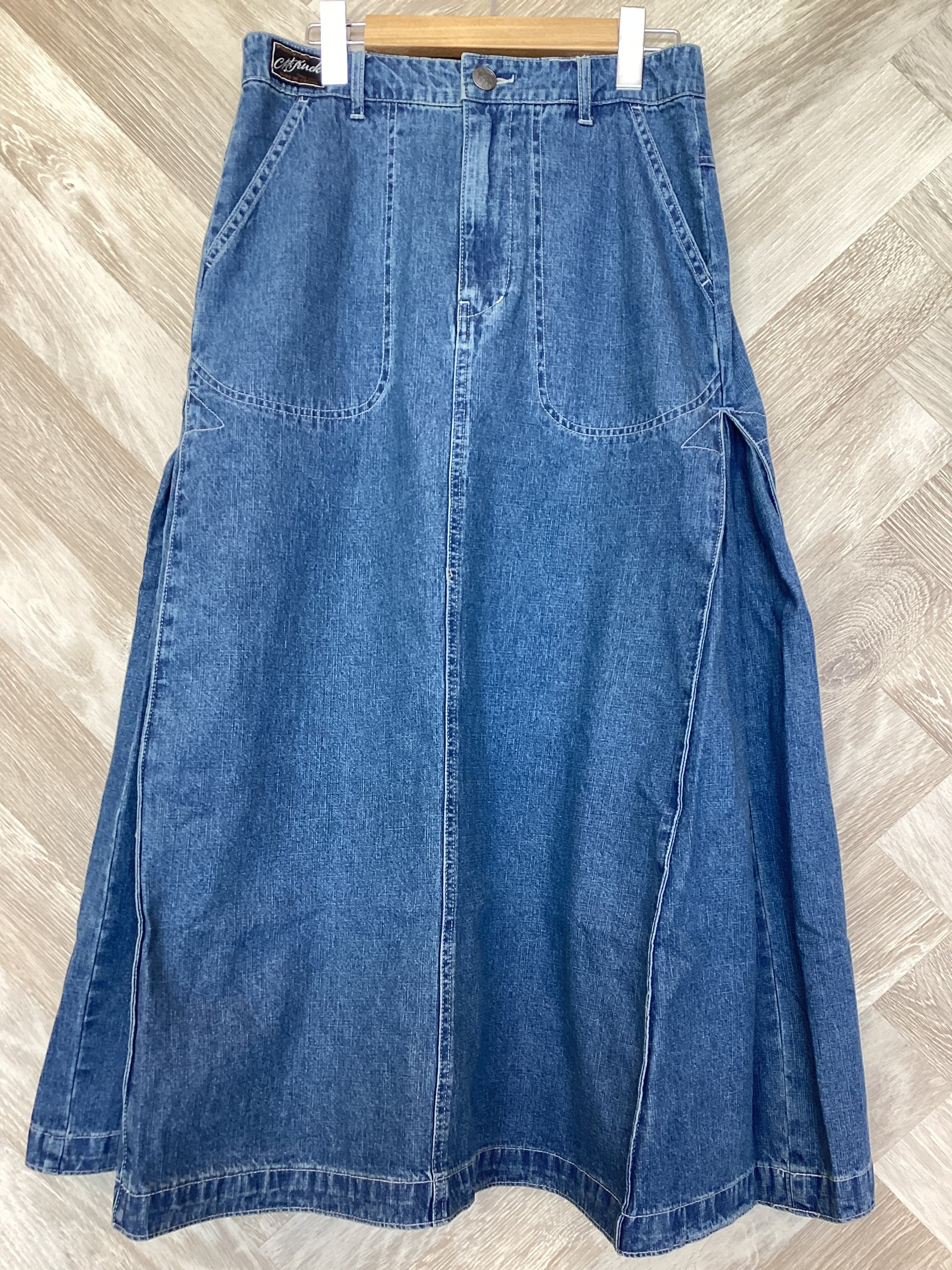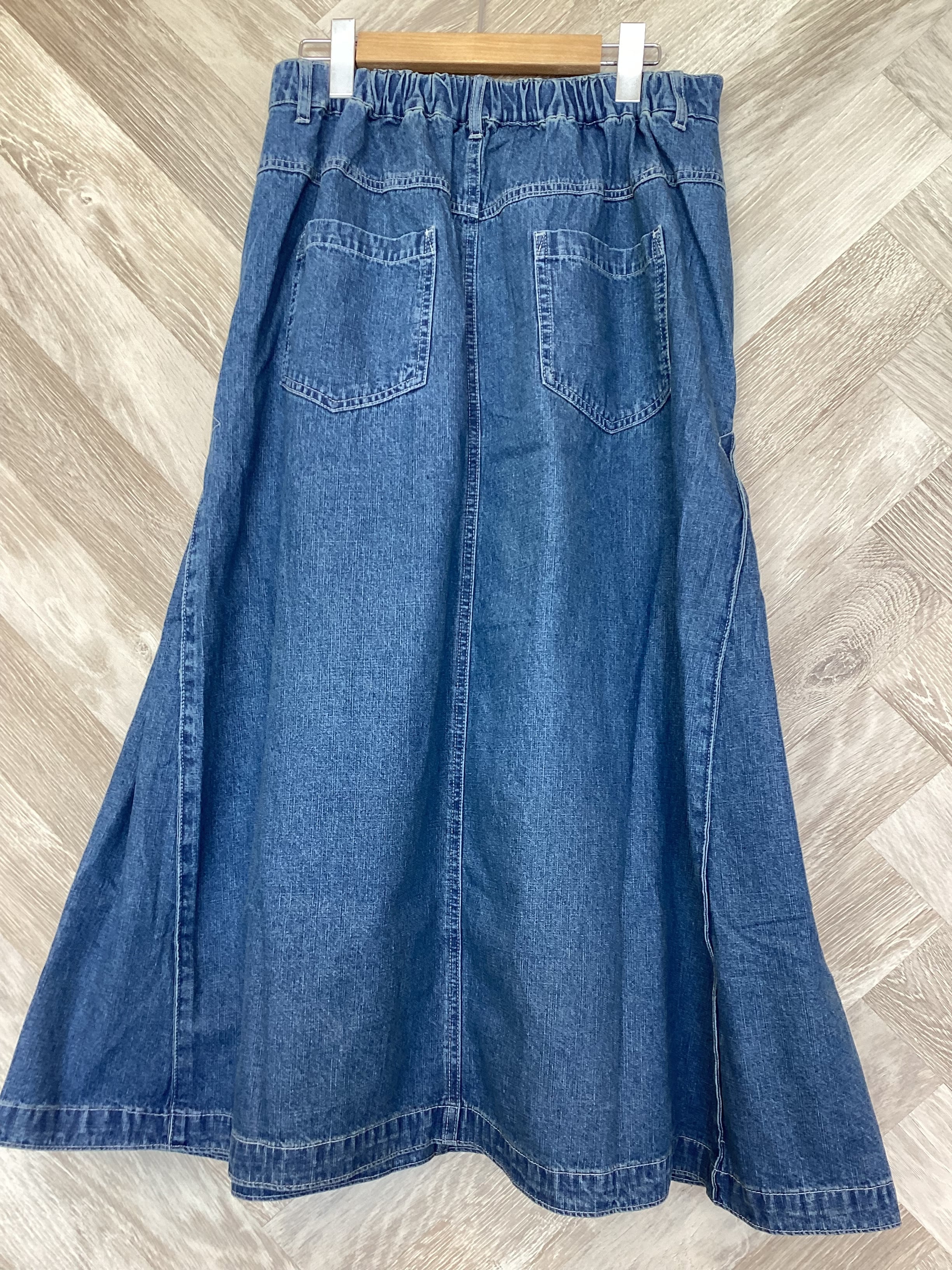 軽やかさと適度なハリを兼ね備えた8,5オンスデニムを使用したロングスカート