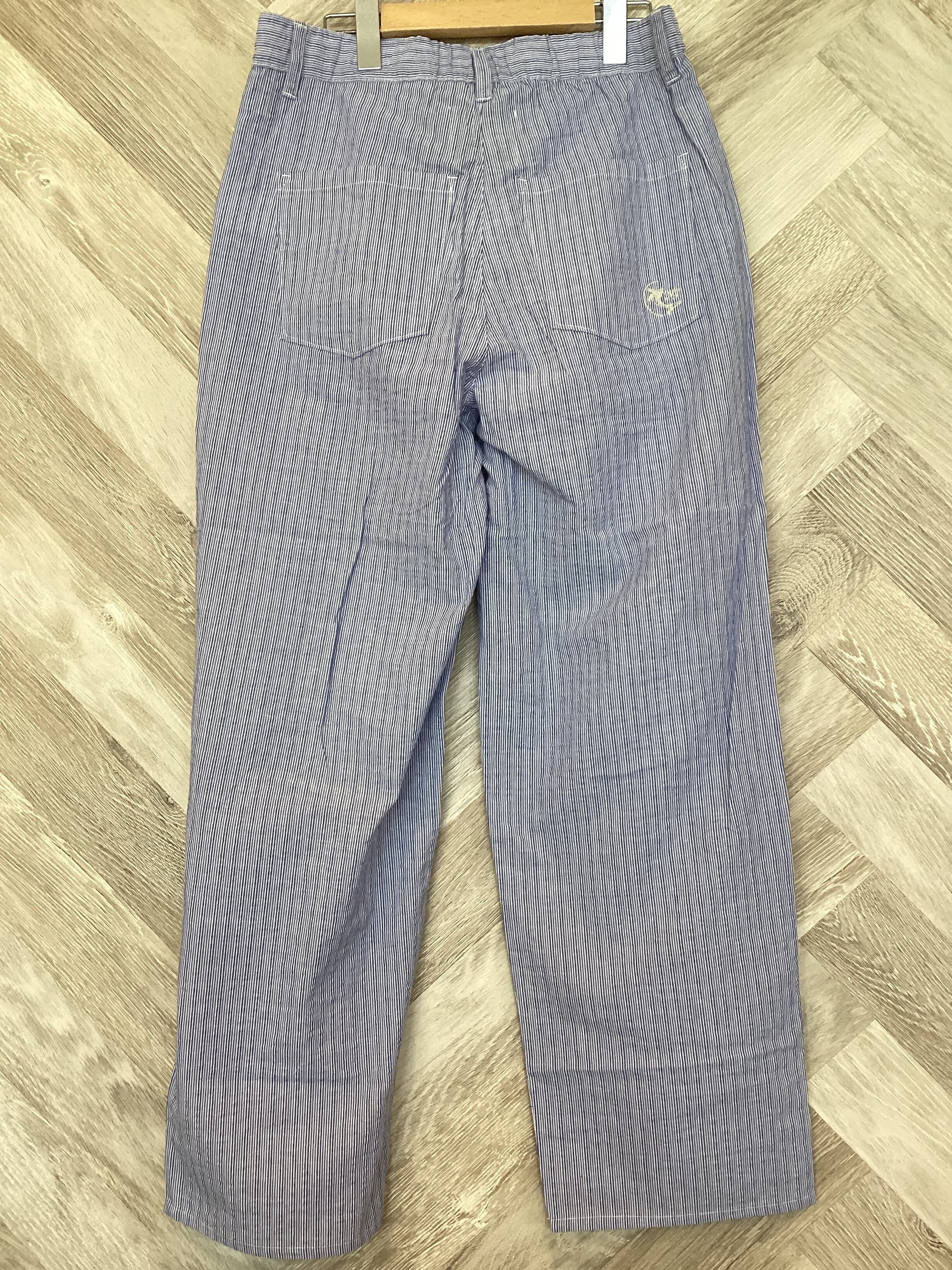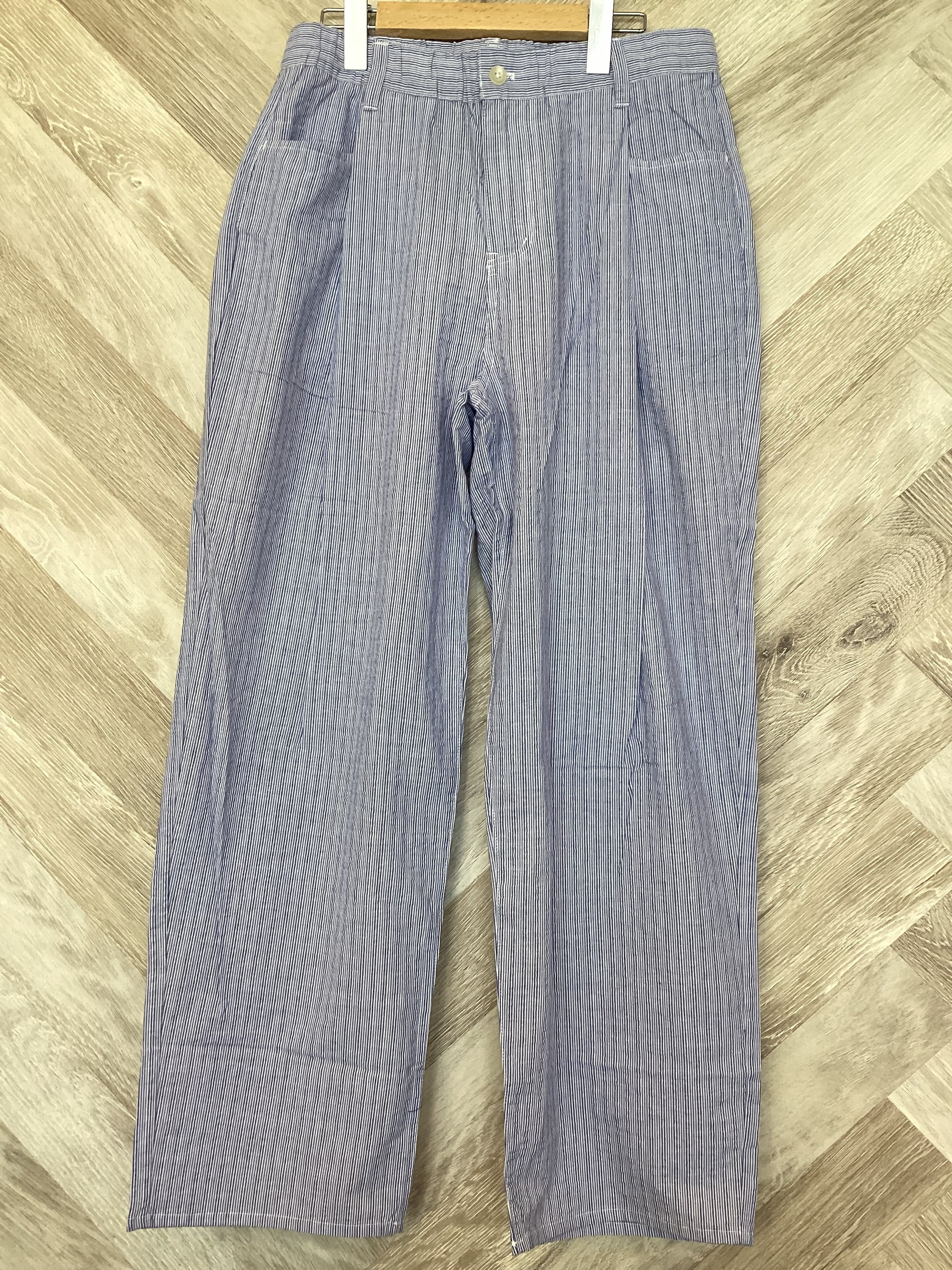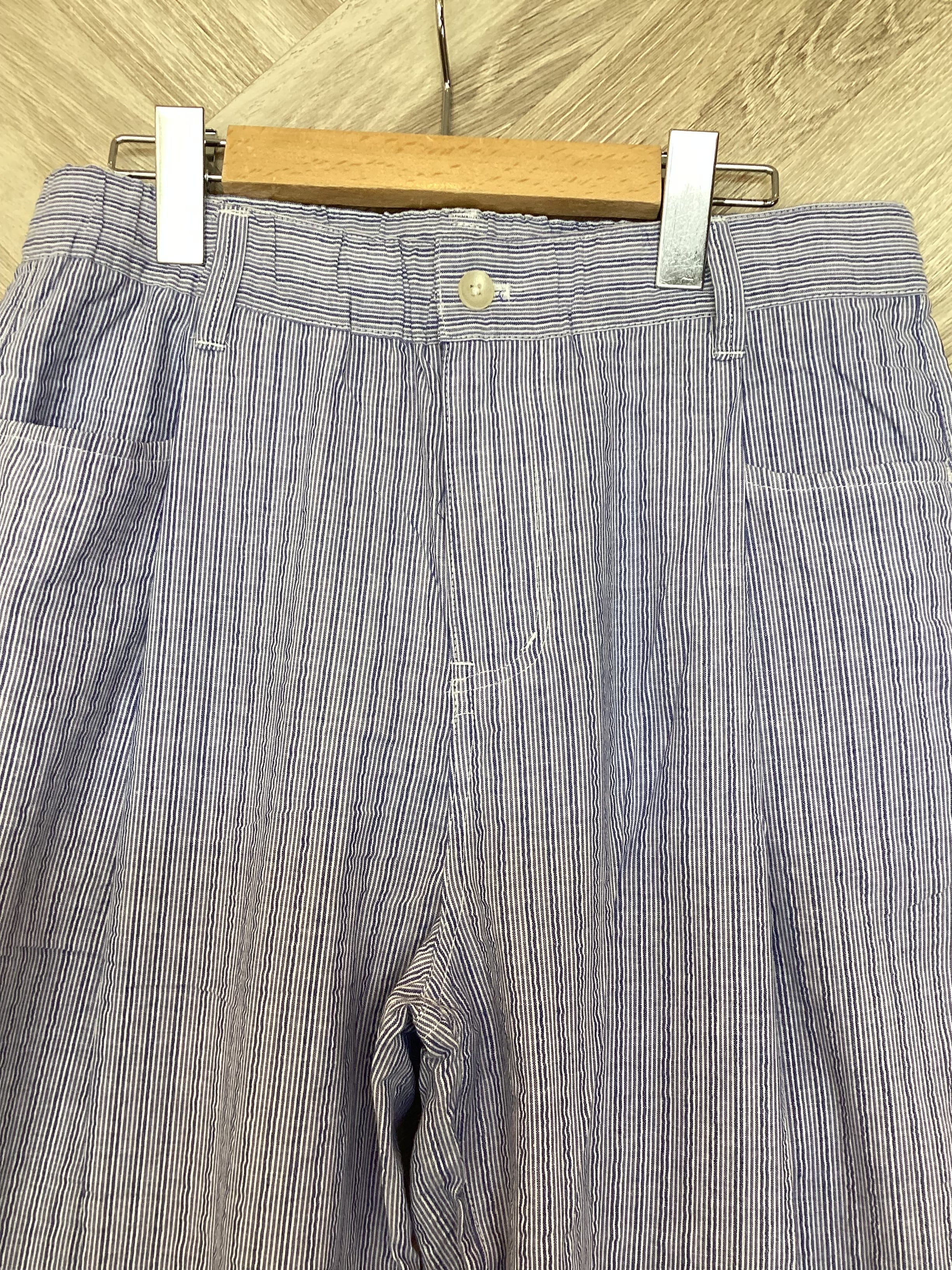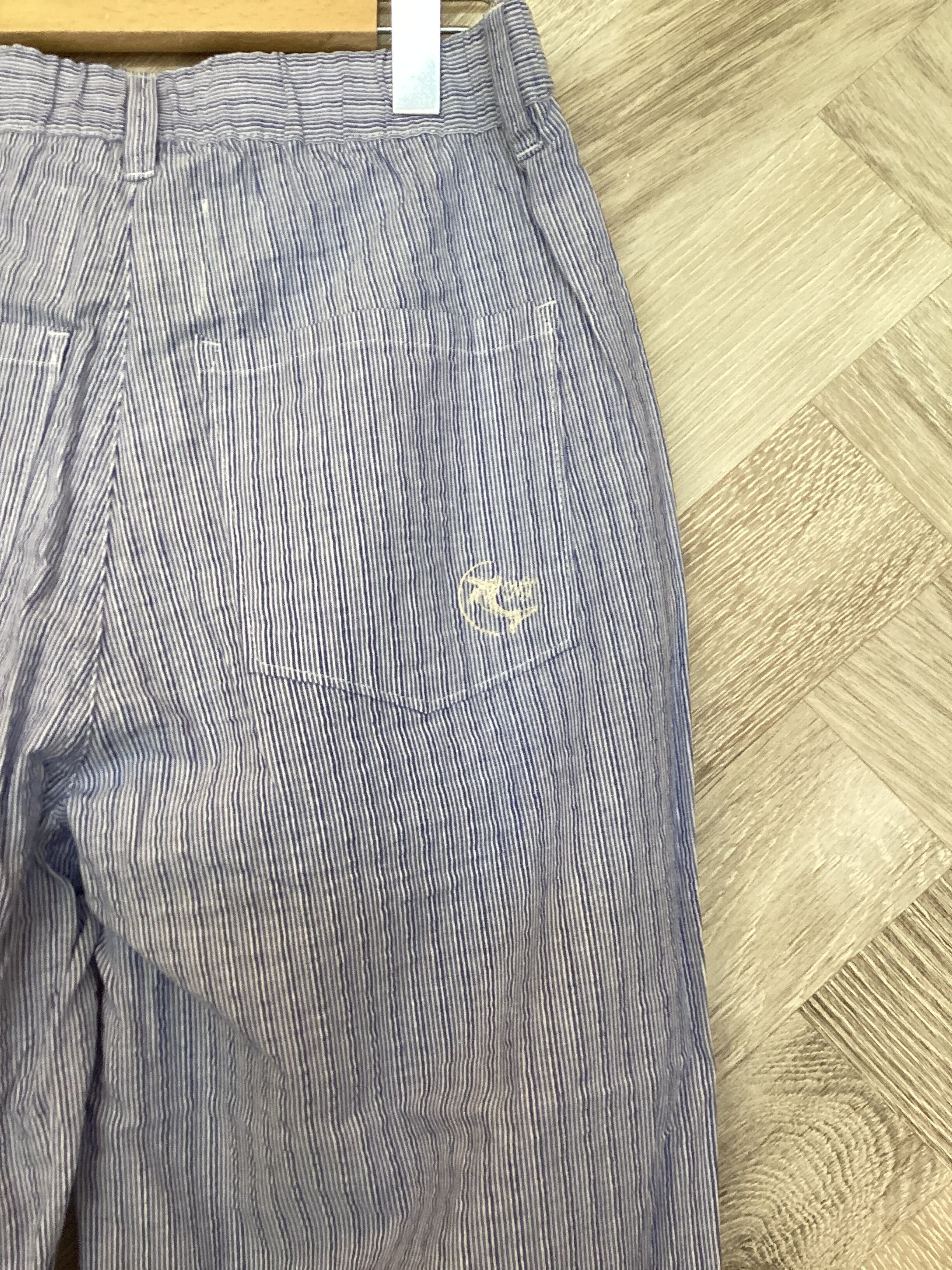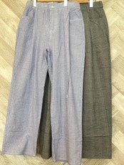 先染めのサッカー素材を使用した軽やかで表情豊かなストレートパンツ