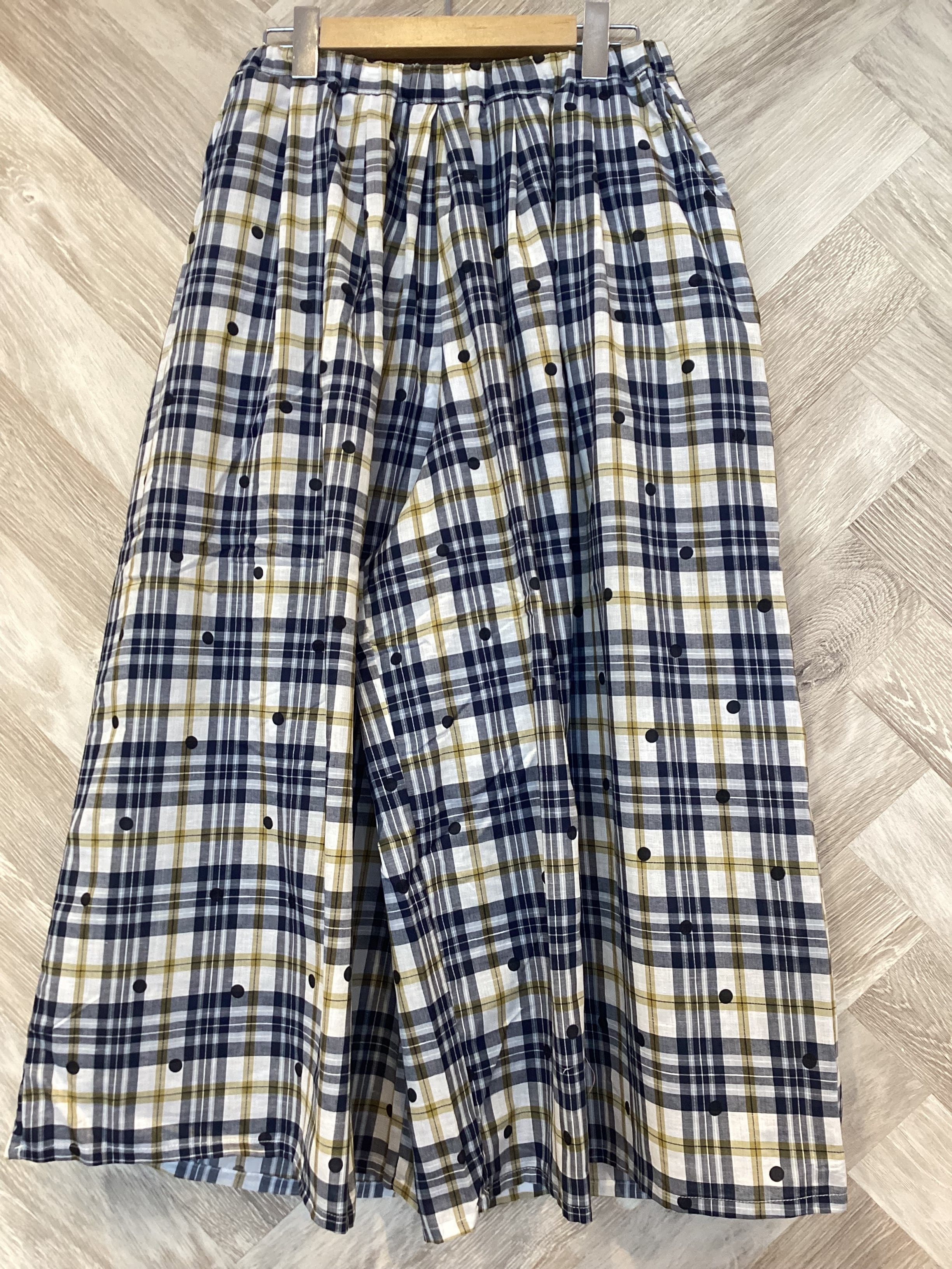 チェックとランダムなドット柄の組み合わせが可愛らしいデザインポイント