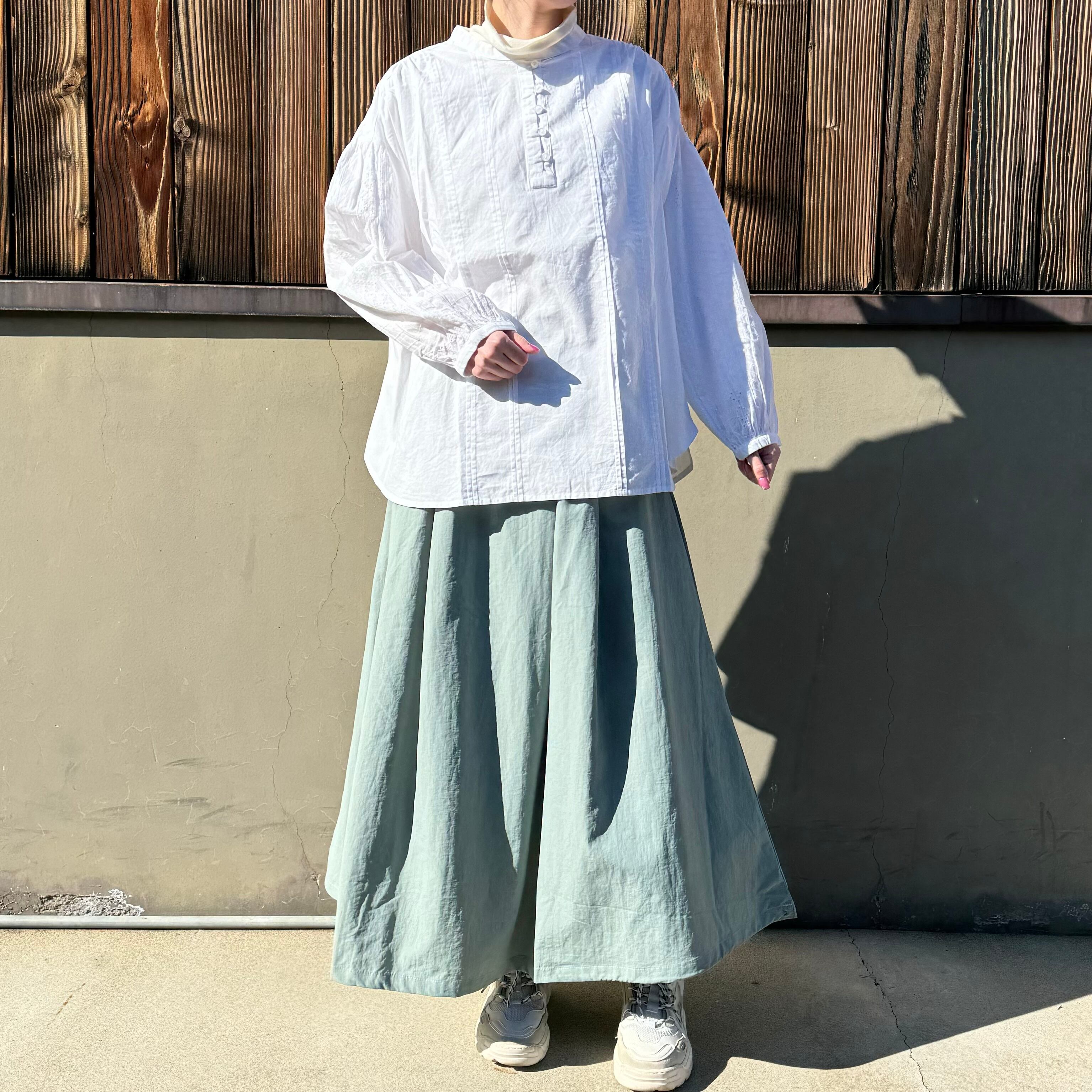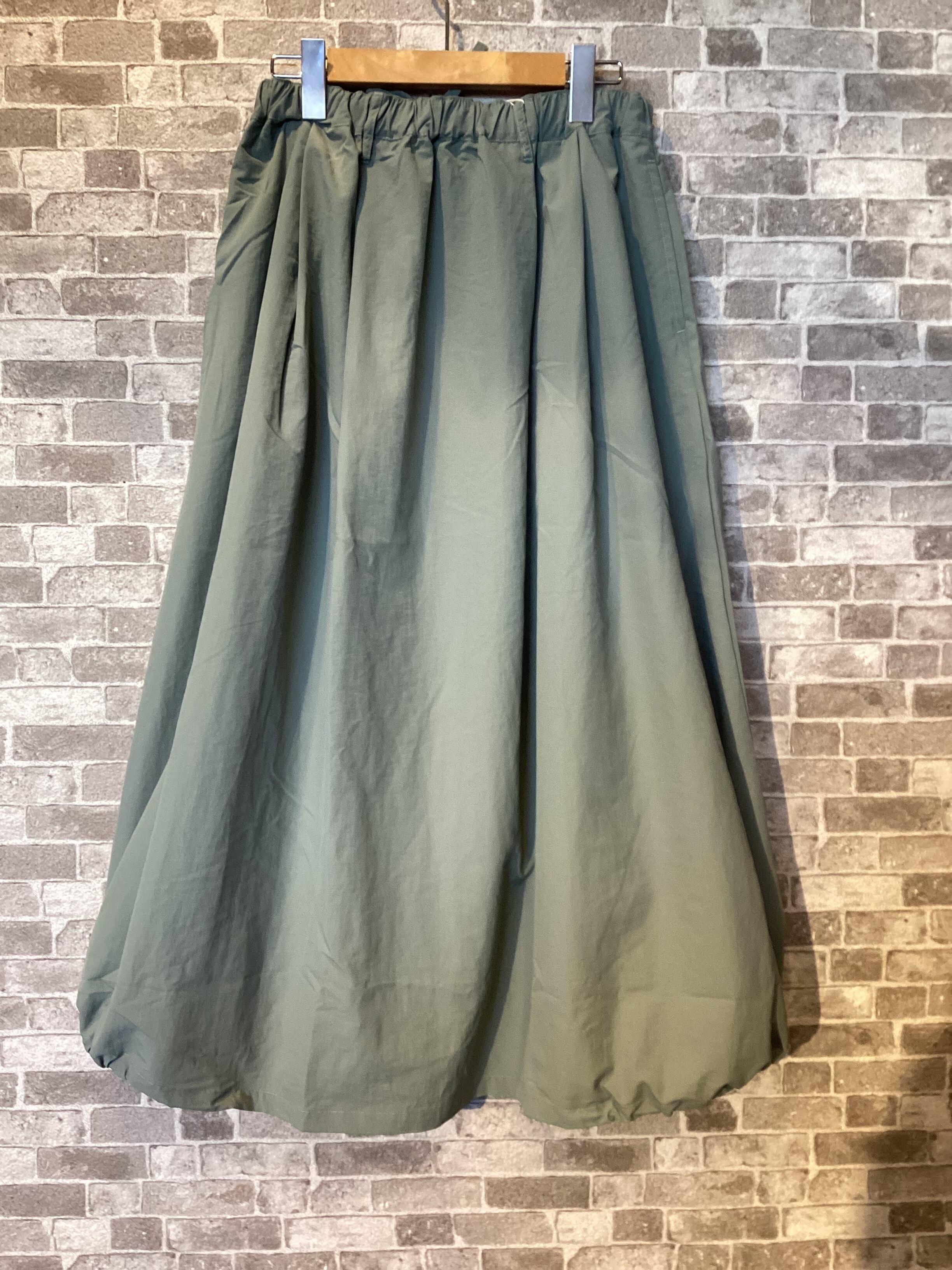 撥水加工済みのナイロン生地で仕立てたフレアスカート
