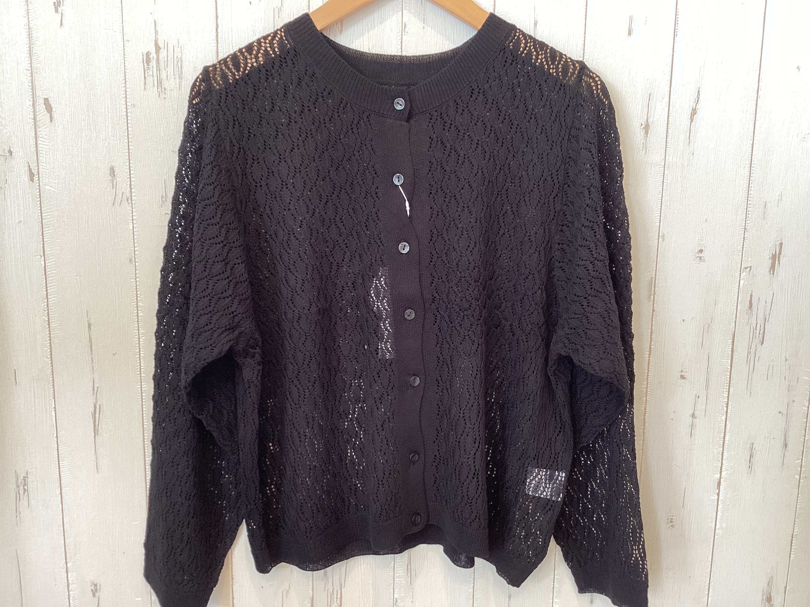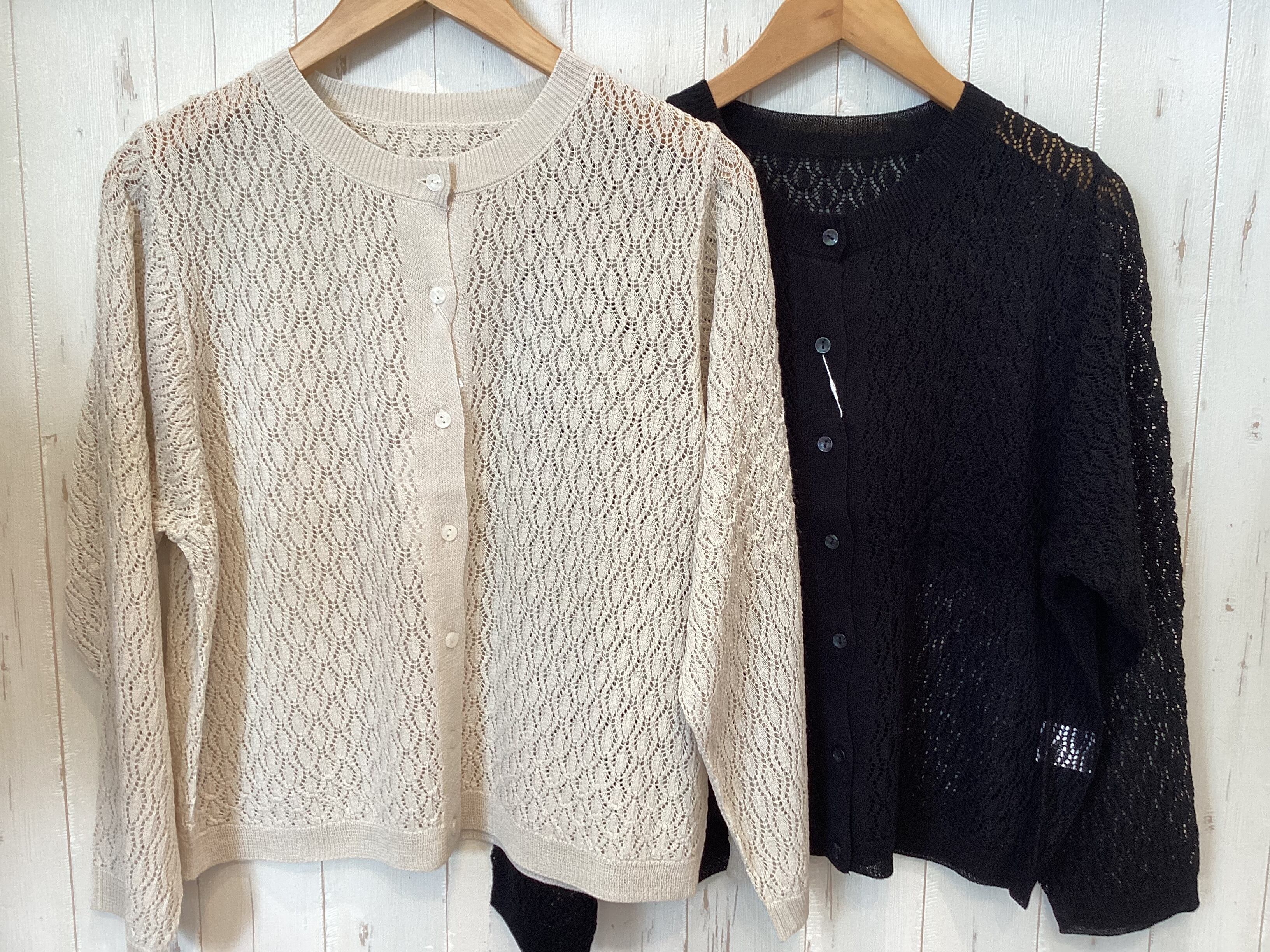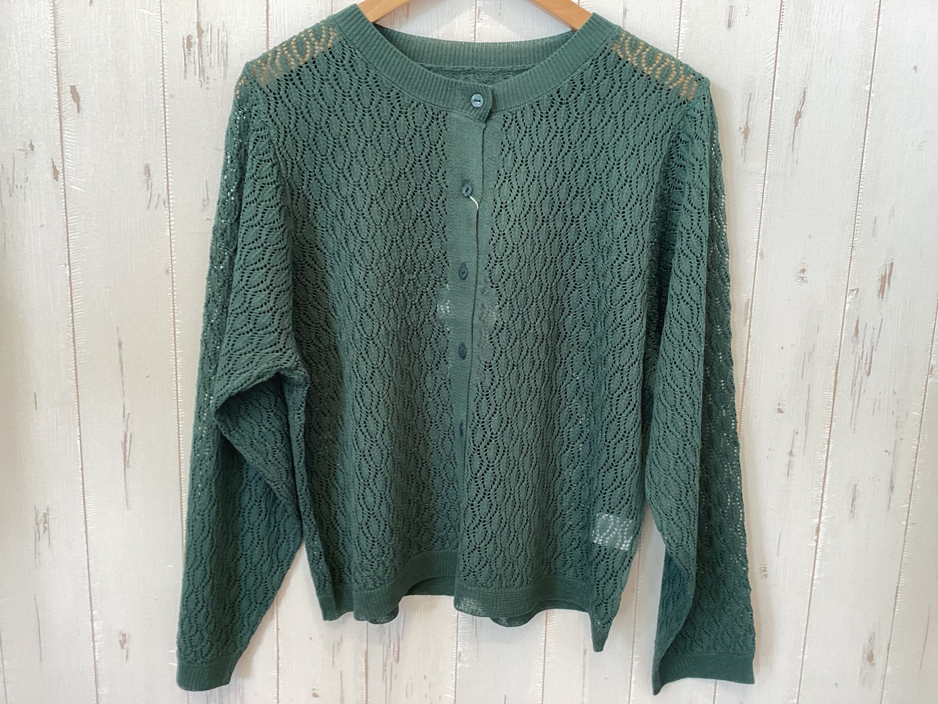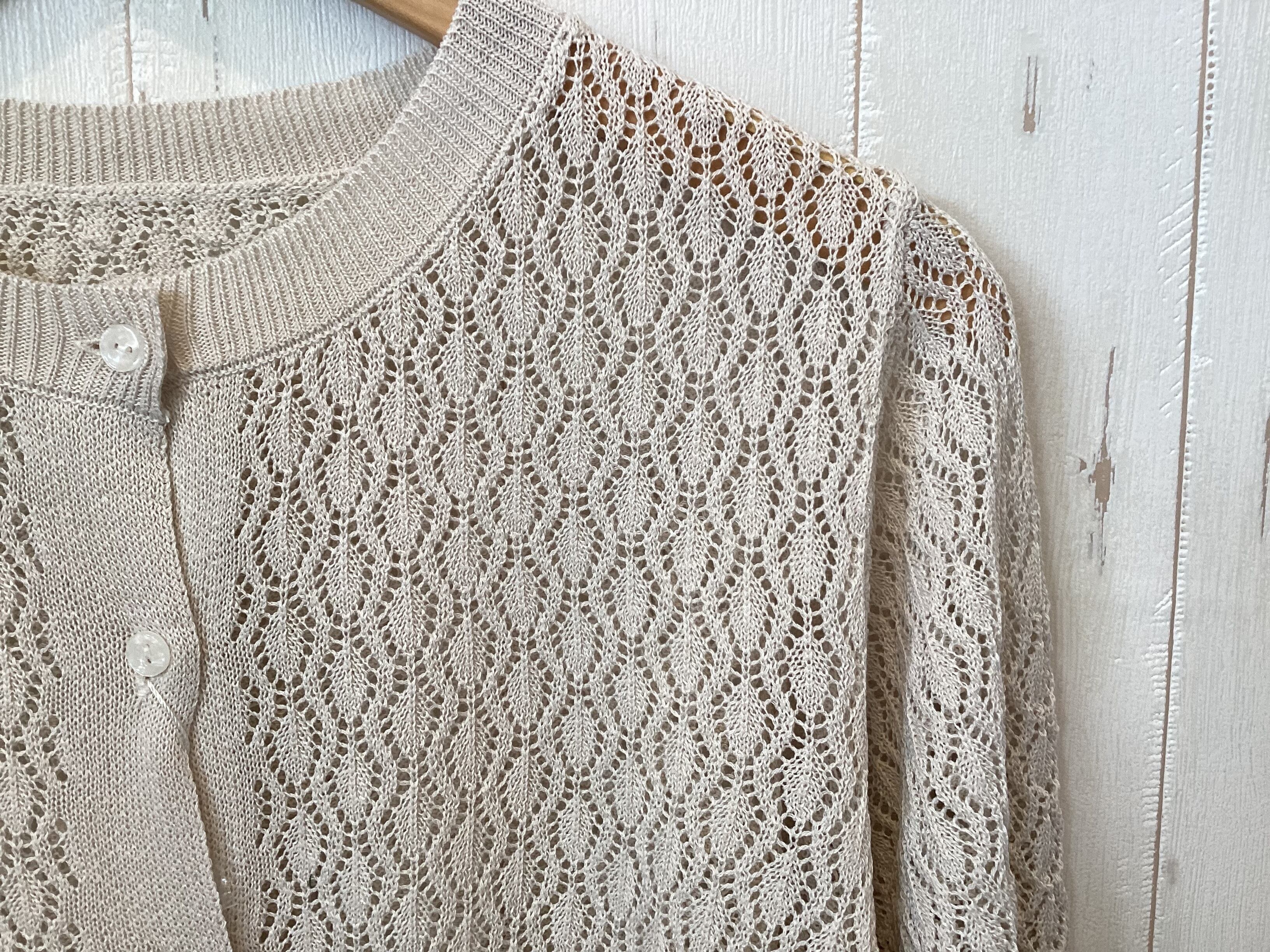 透かし柄の編み地は素材感とも相まってとても軽やかな仕上がりです