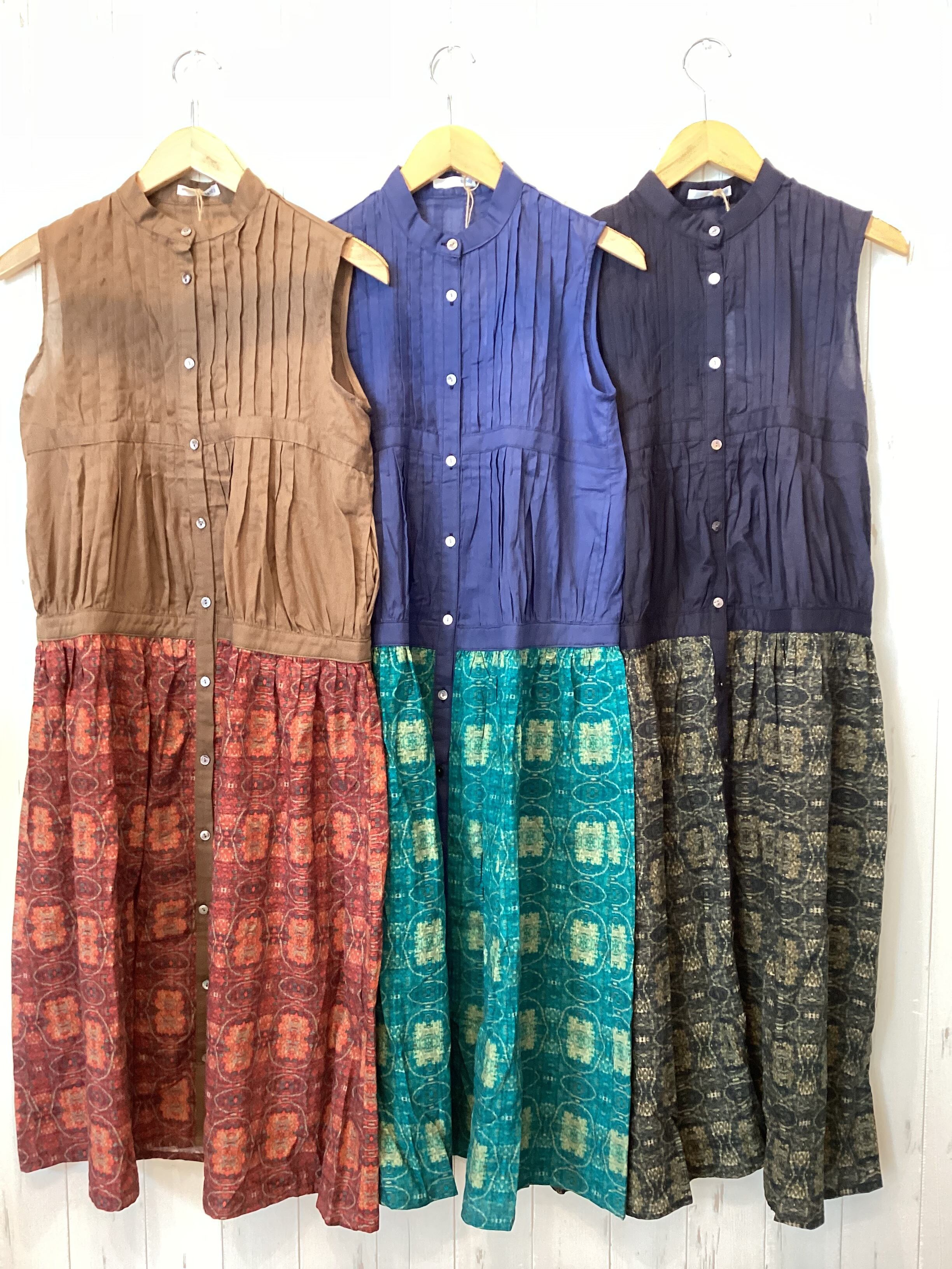 スタンドカラーノースリーブピンタックワンピース | moja*