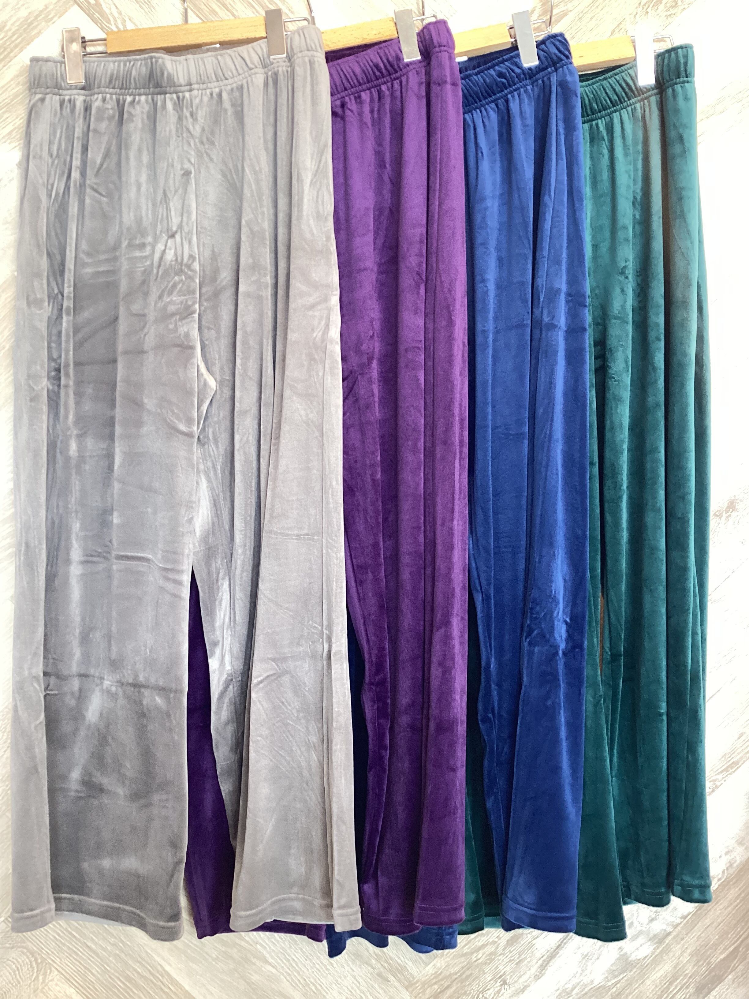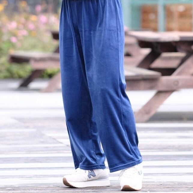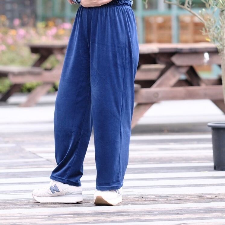 光沢感のある履き心地のいいストレッチ素材のベロアパンツです
