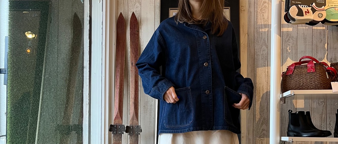 デニムで仕立てたカジュアルなカバーオールジャケット