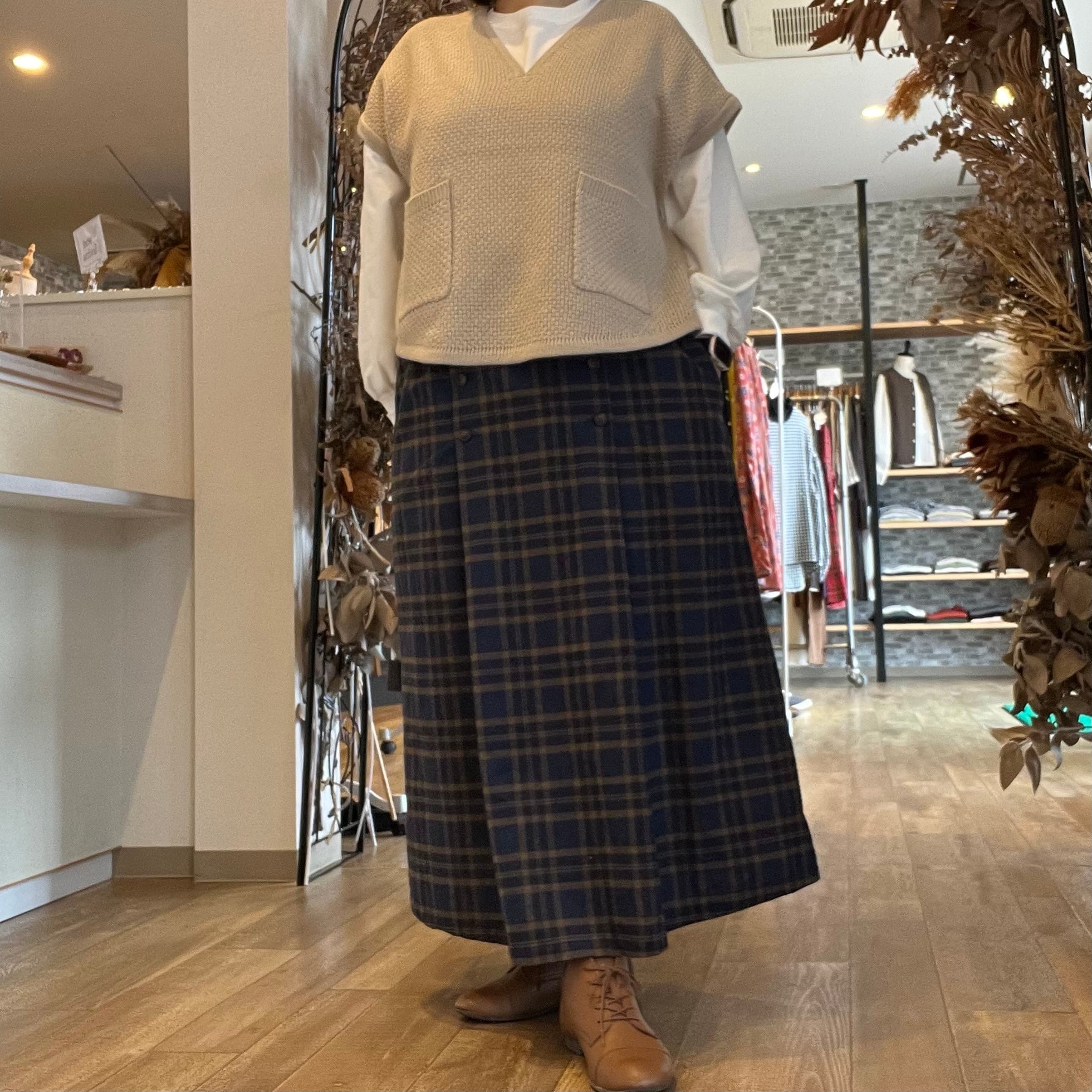 ブリティッシュなチェック柄がポイントのスカートです
