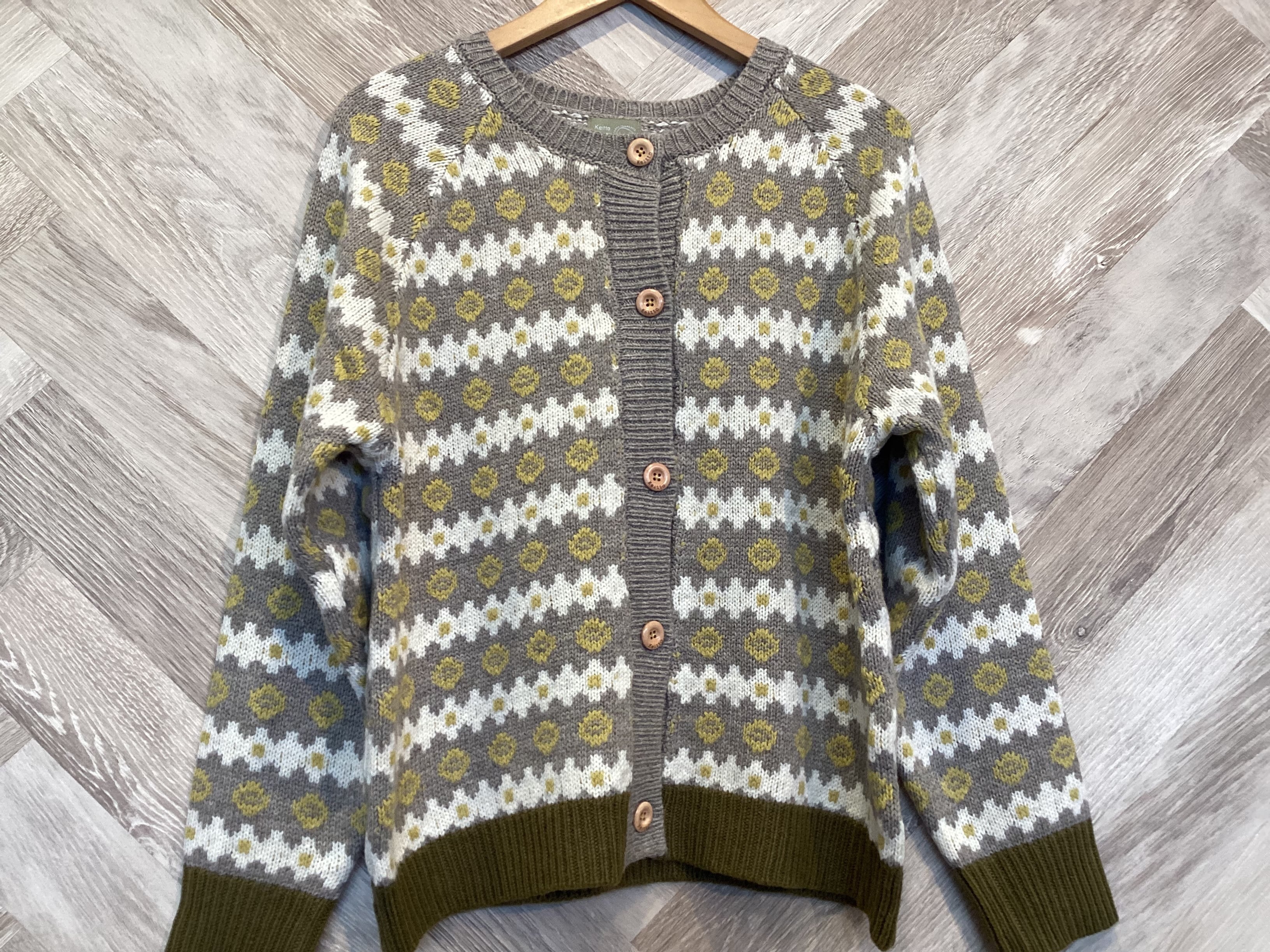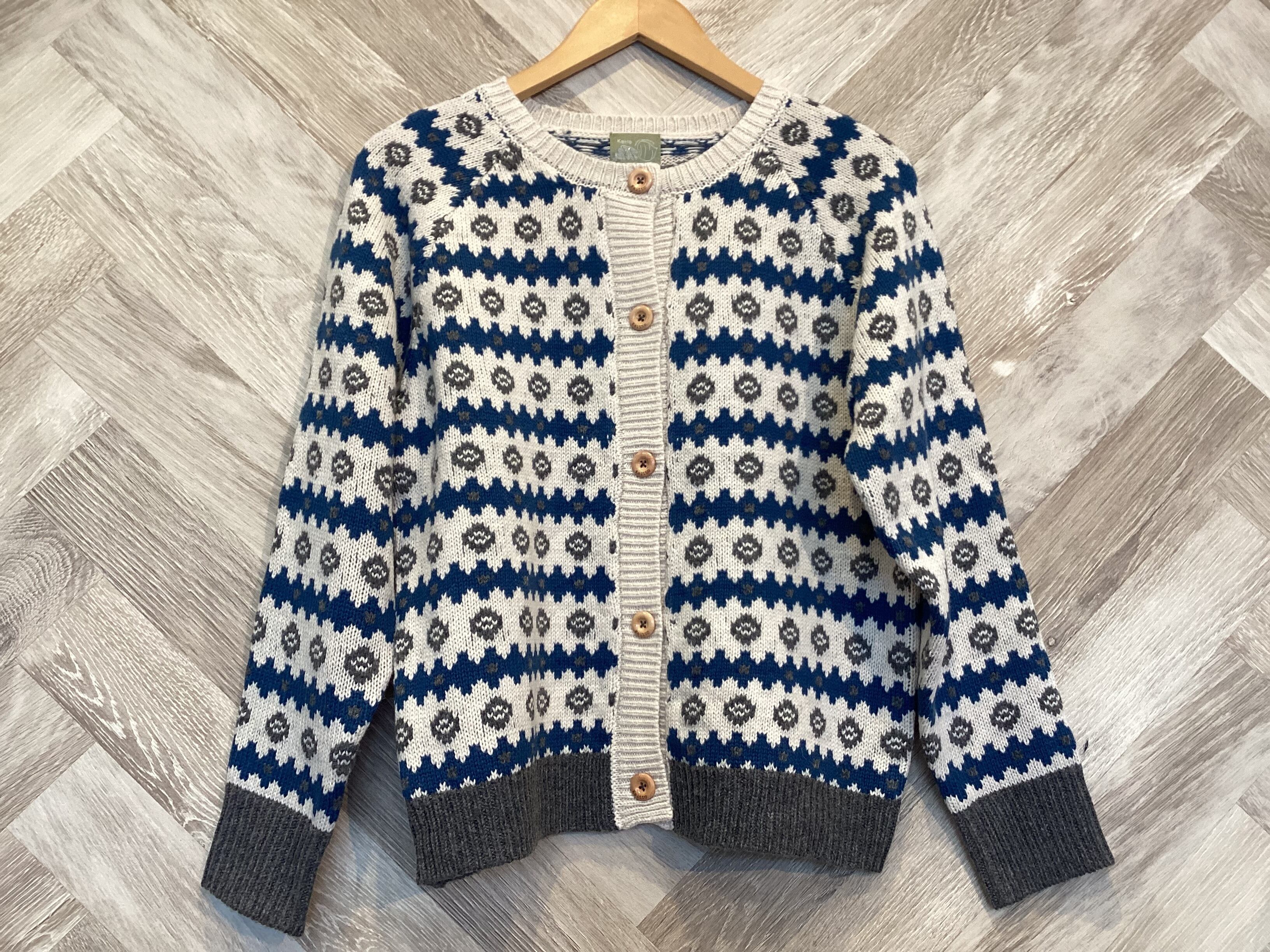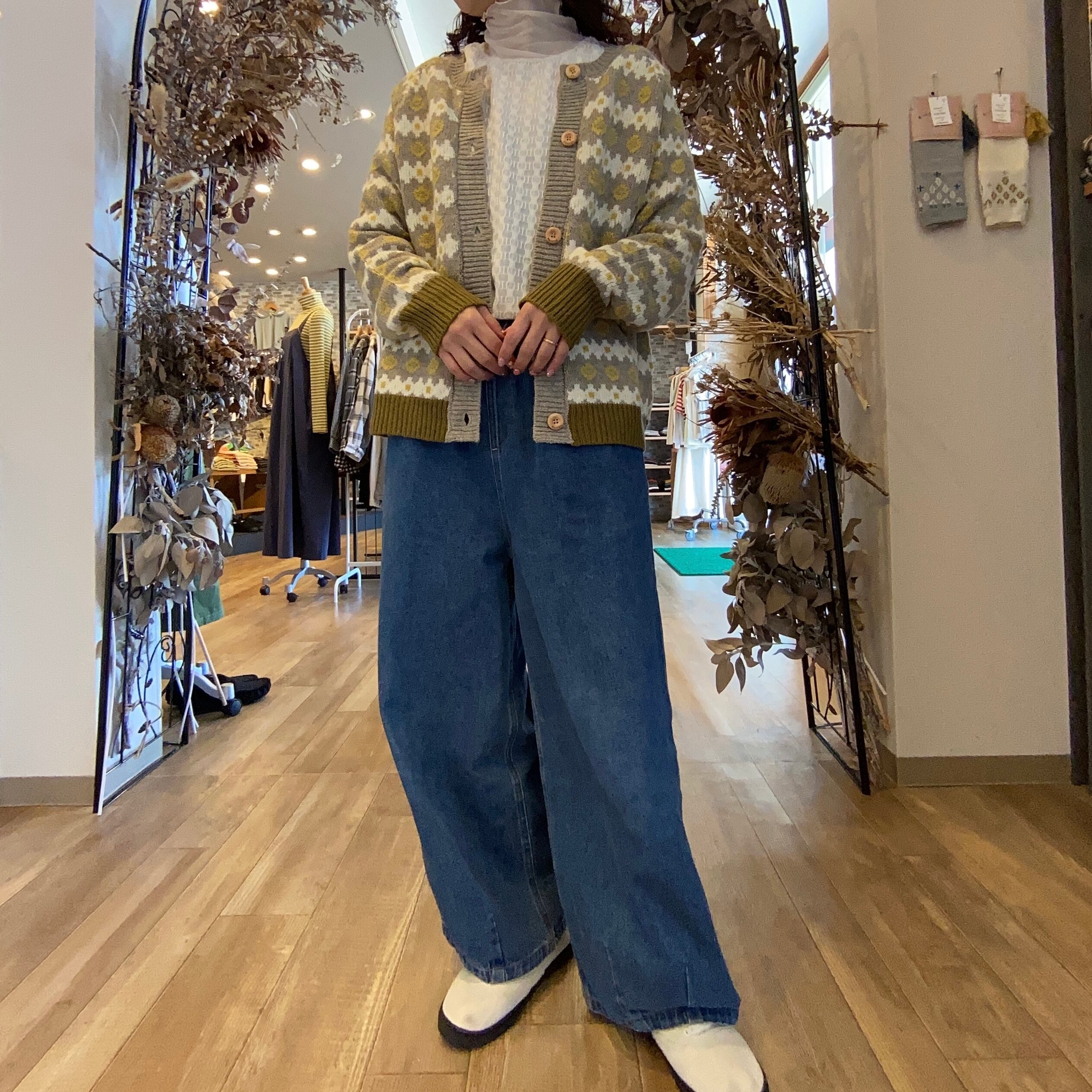 幾何学のタイル柄をイメージした総柄カーディガンです