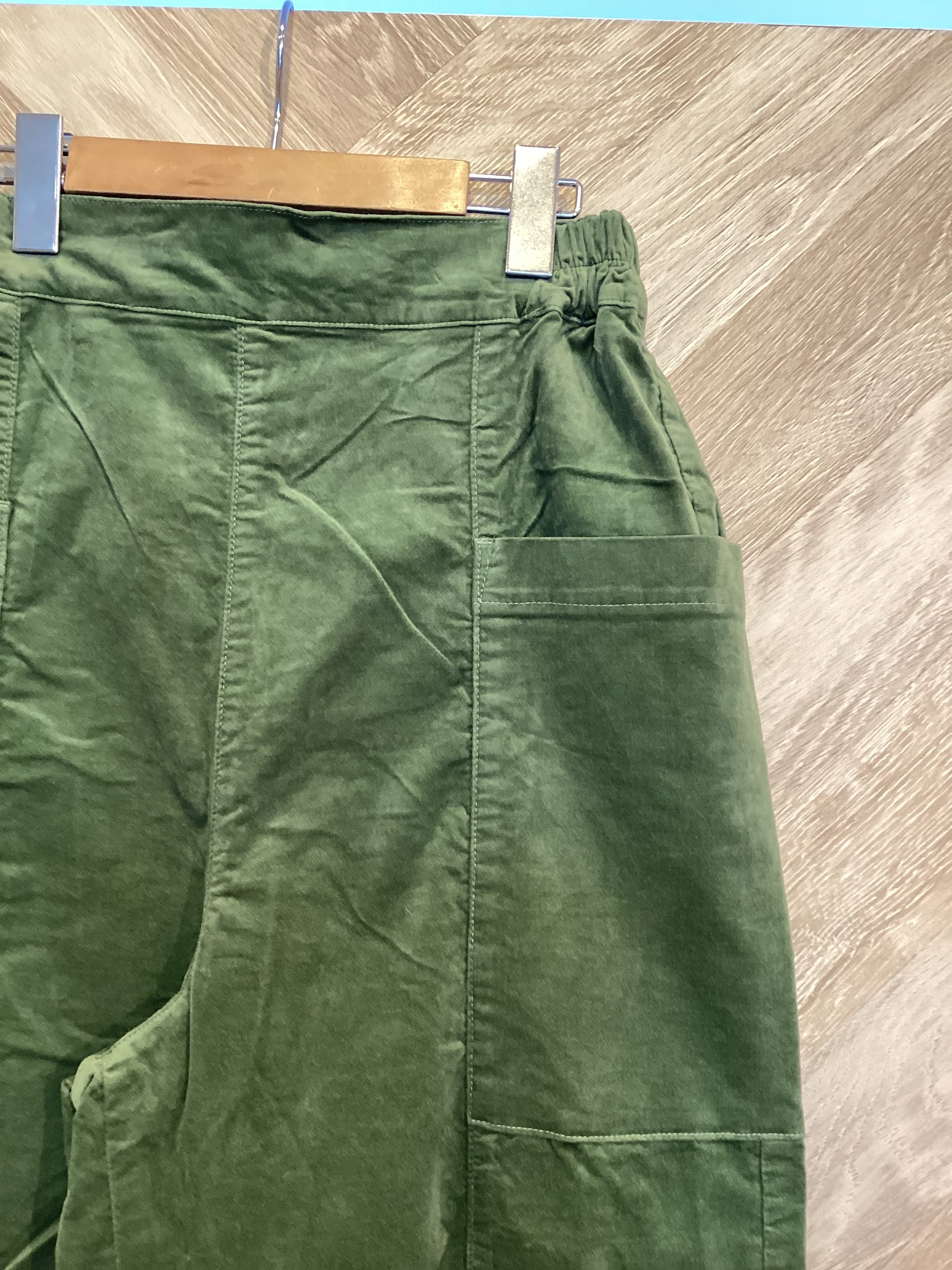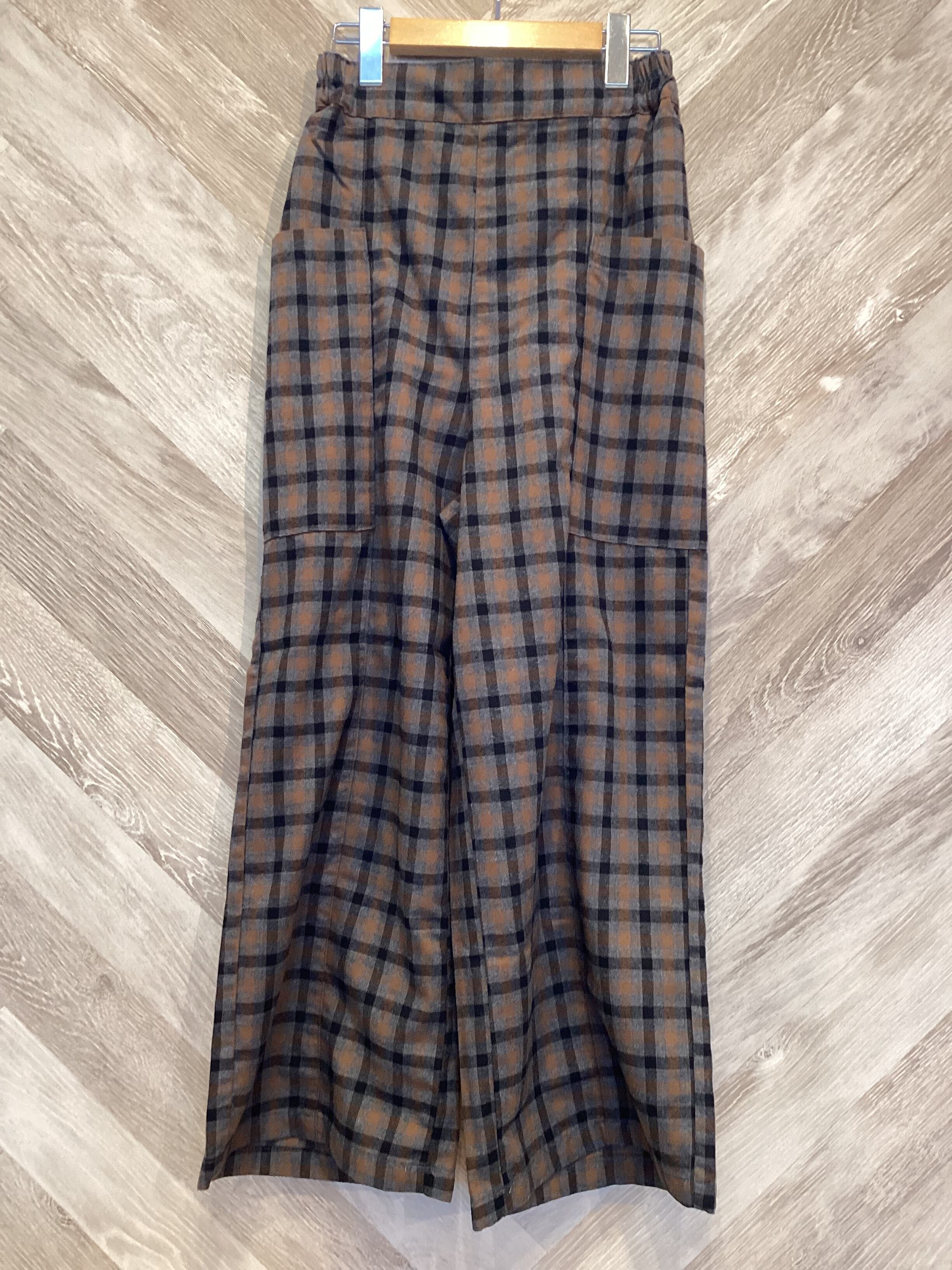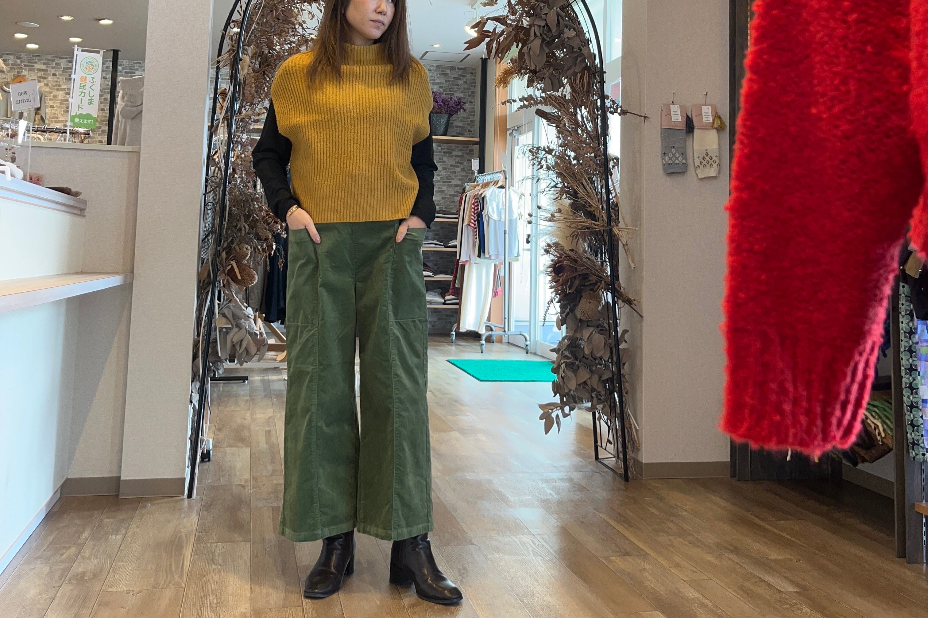 大きめのポケットが特徴のワイドパンツです