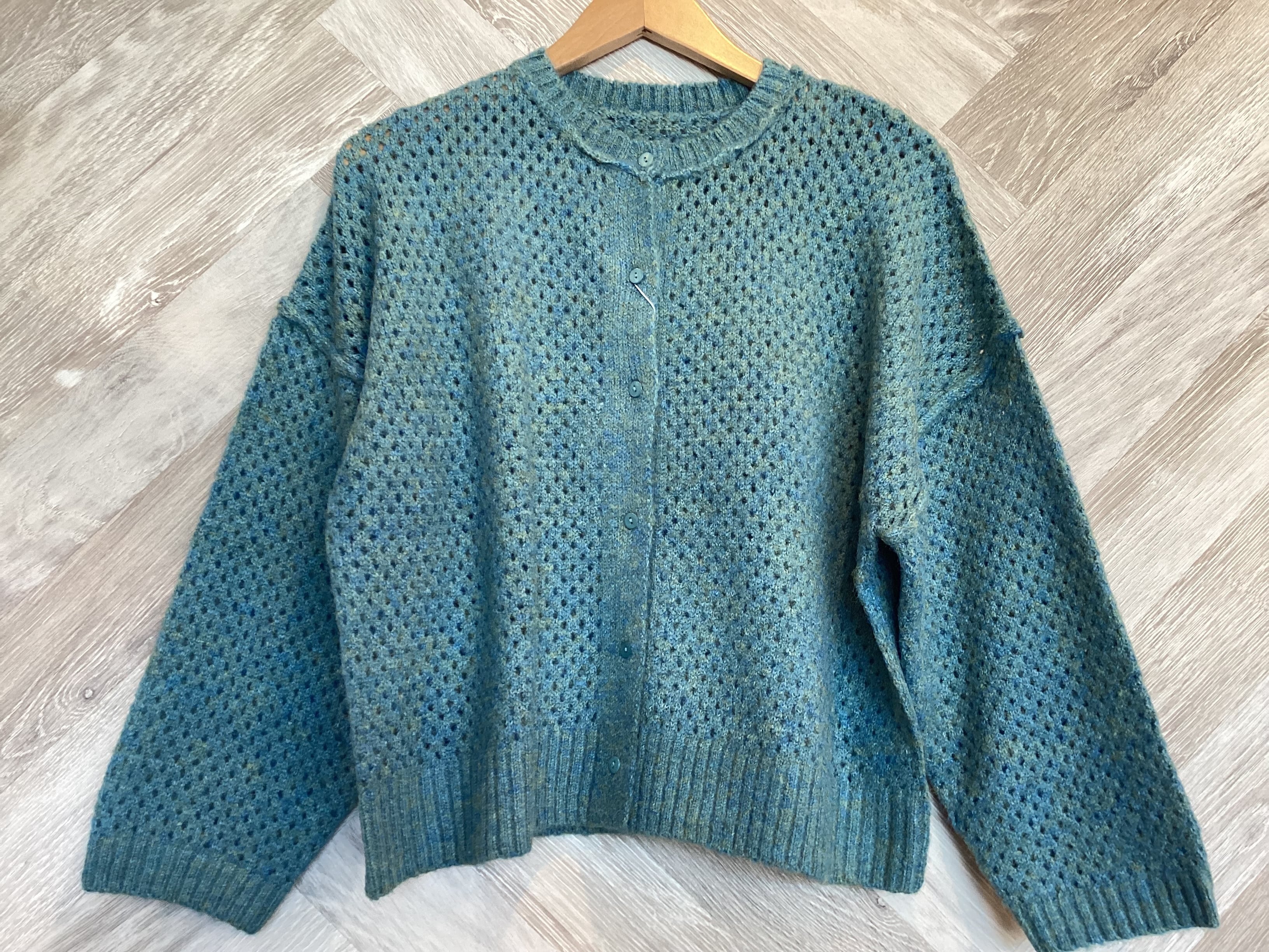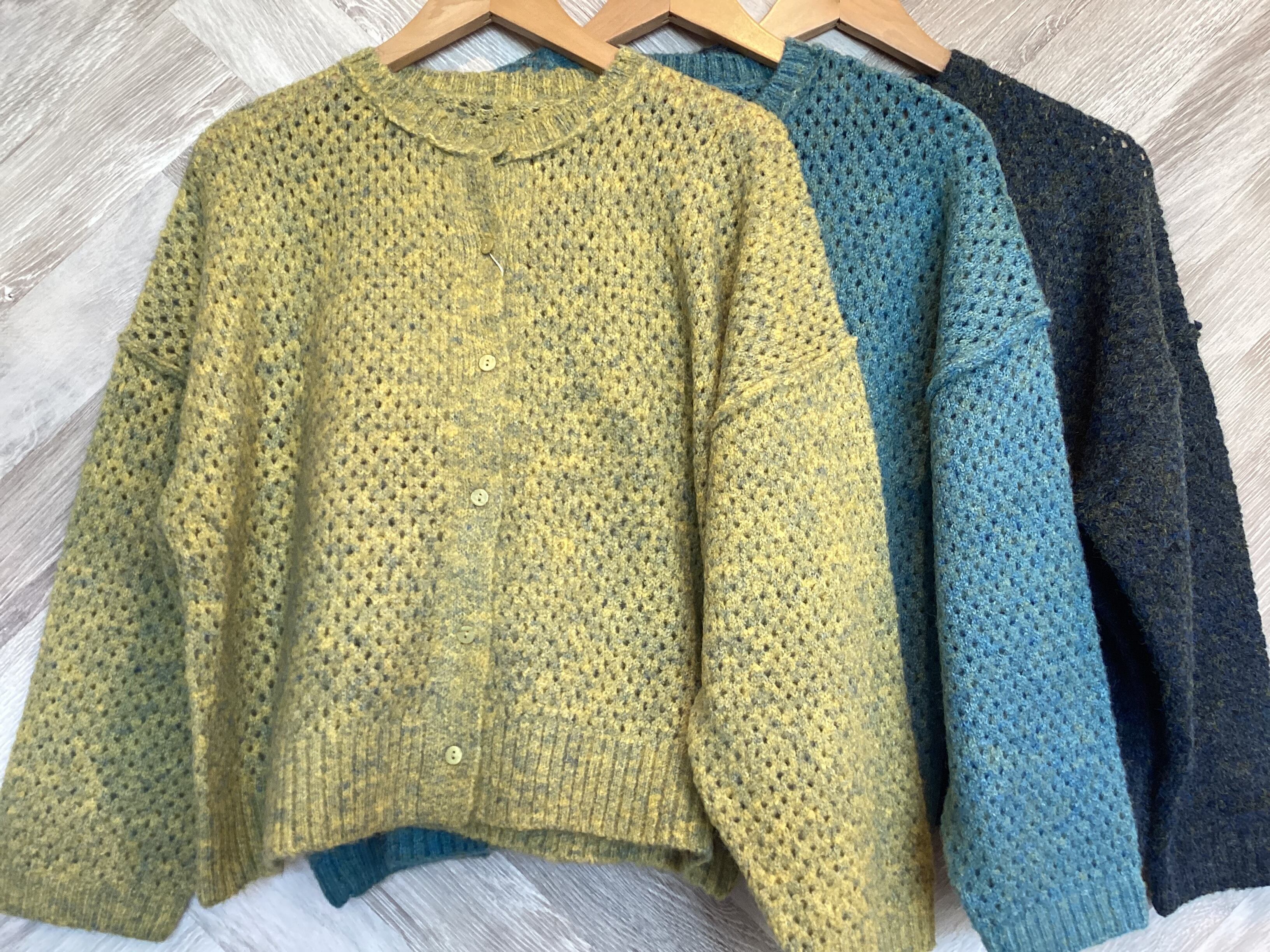 何色もMIXしたような杢カラーが鮮やかなニットカーディガンです