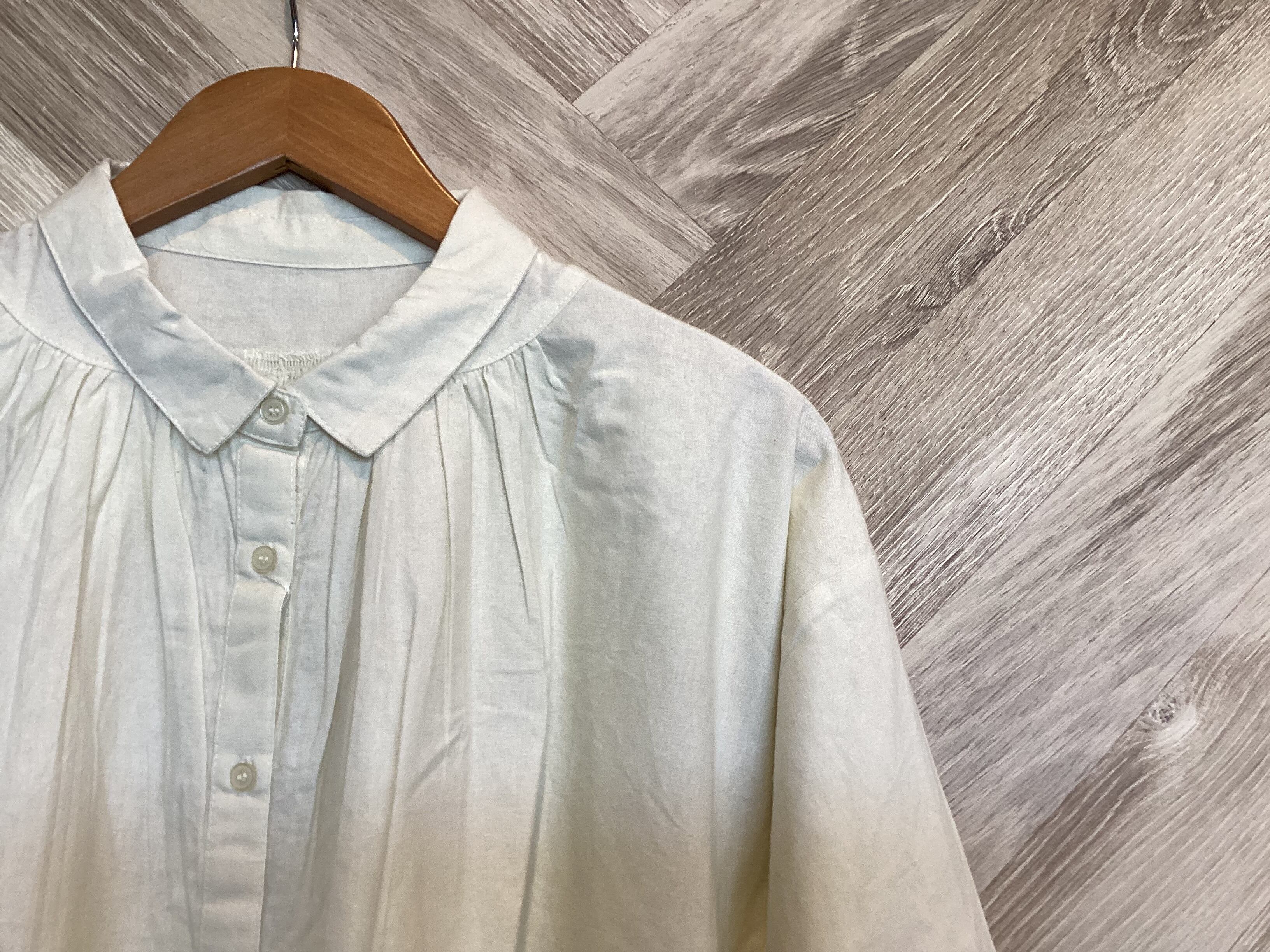 小さめの衿なので首周りをすっきり見せられるのが特徴のアイテムです