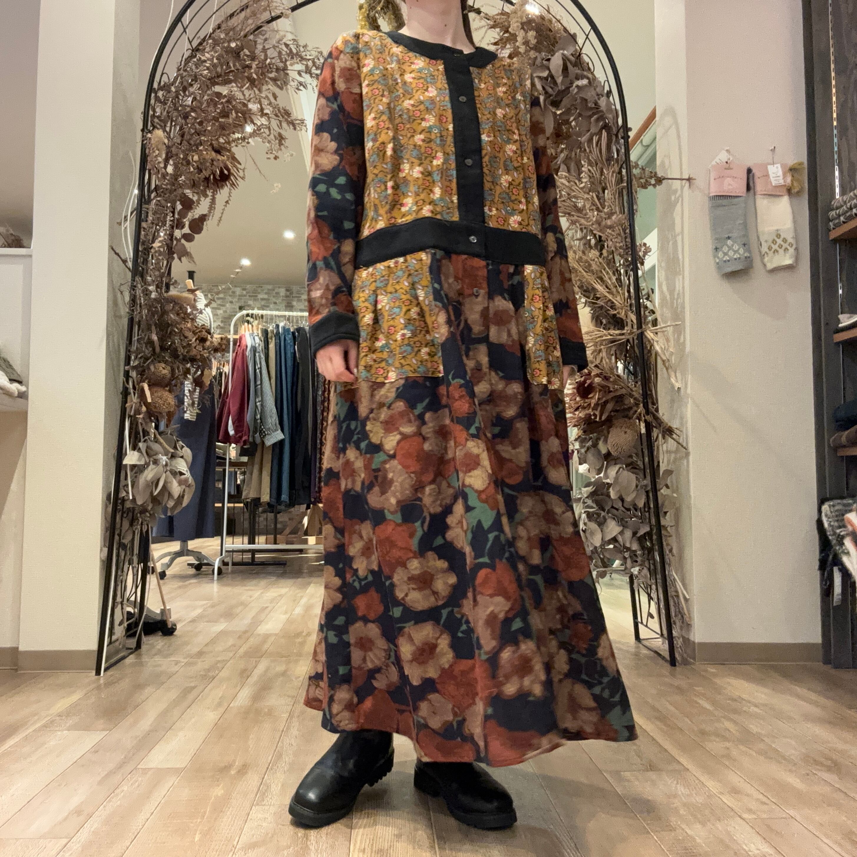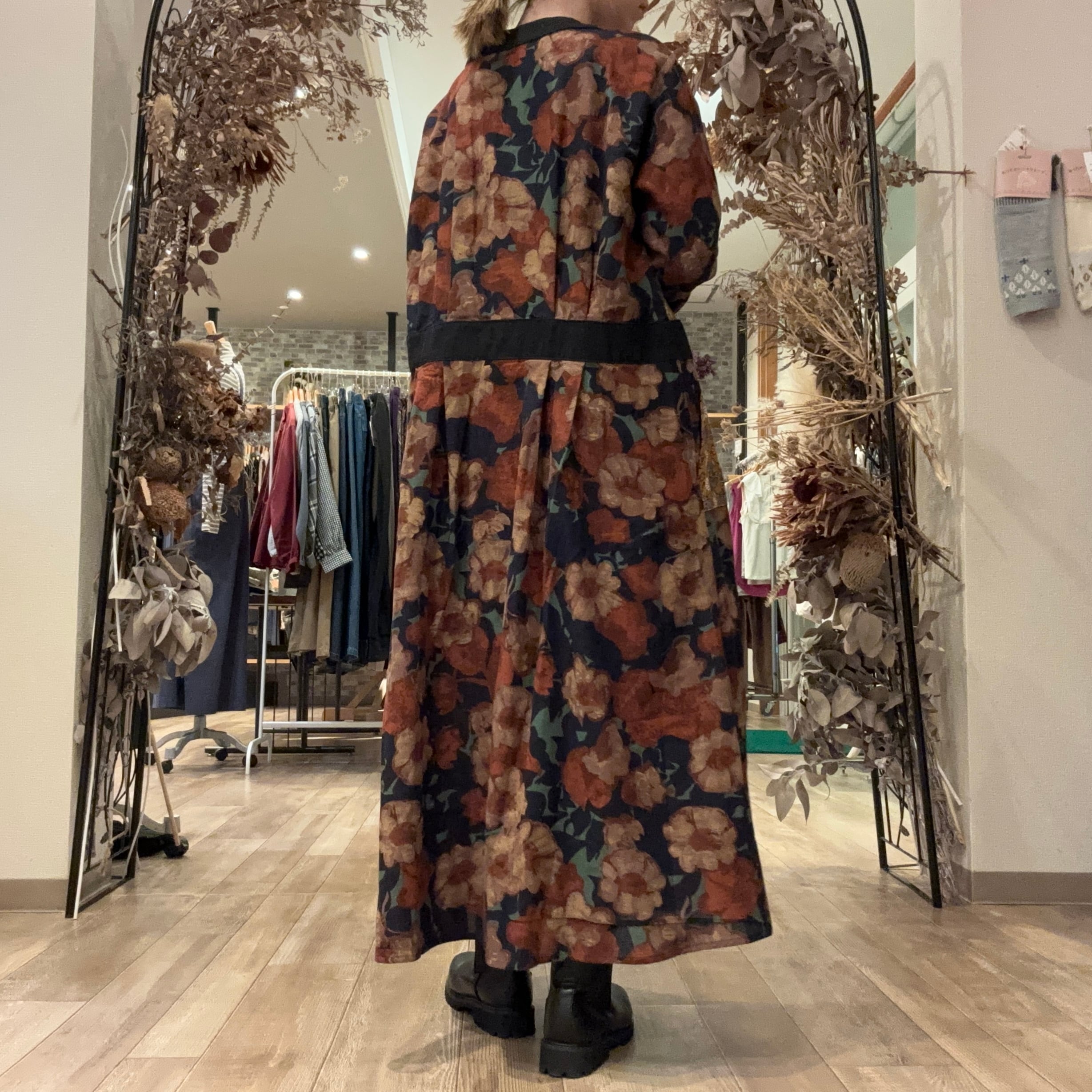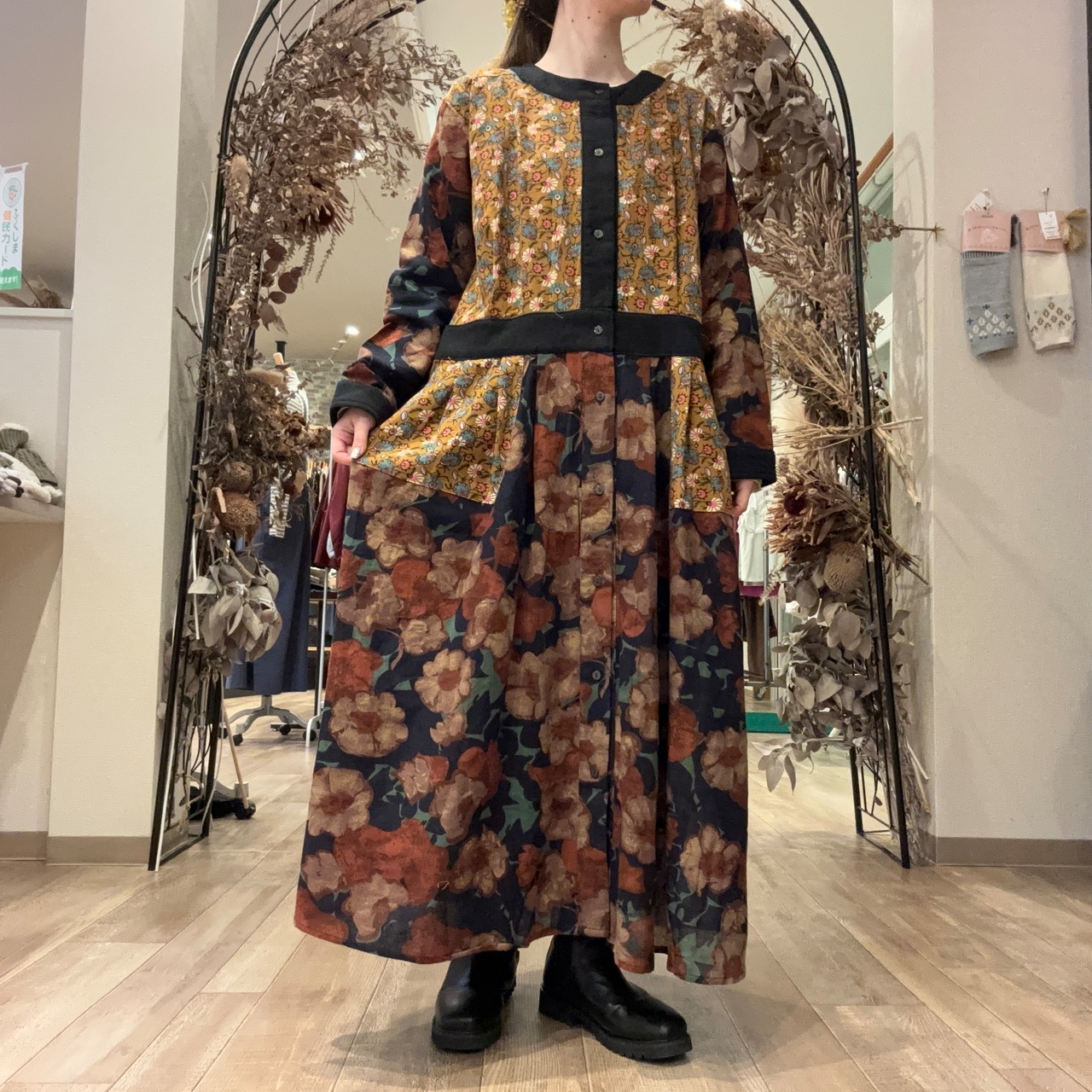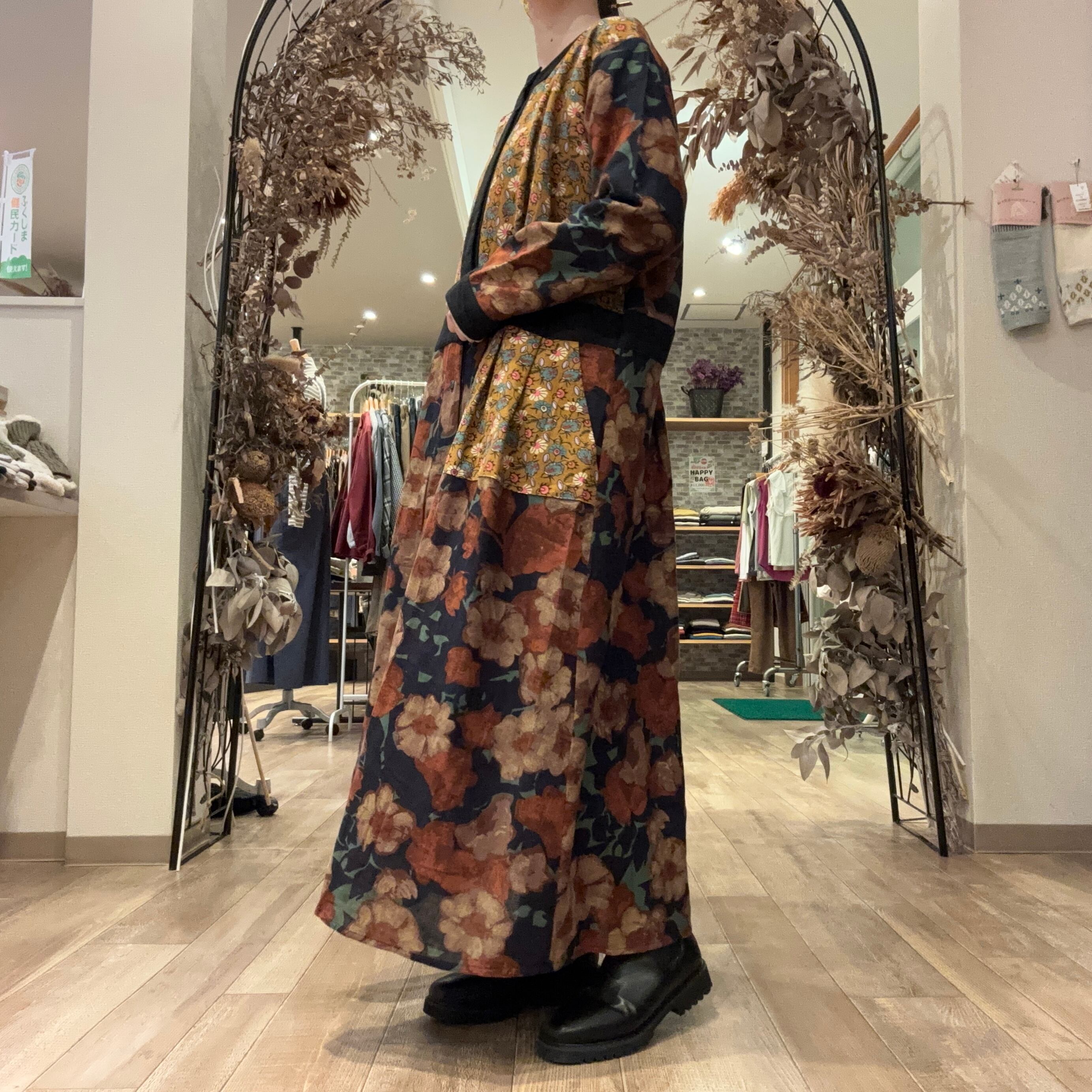 小花柄と大花柄の組み合わせで豪華なデザインのワンピース