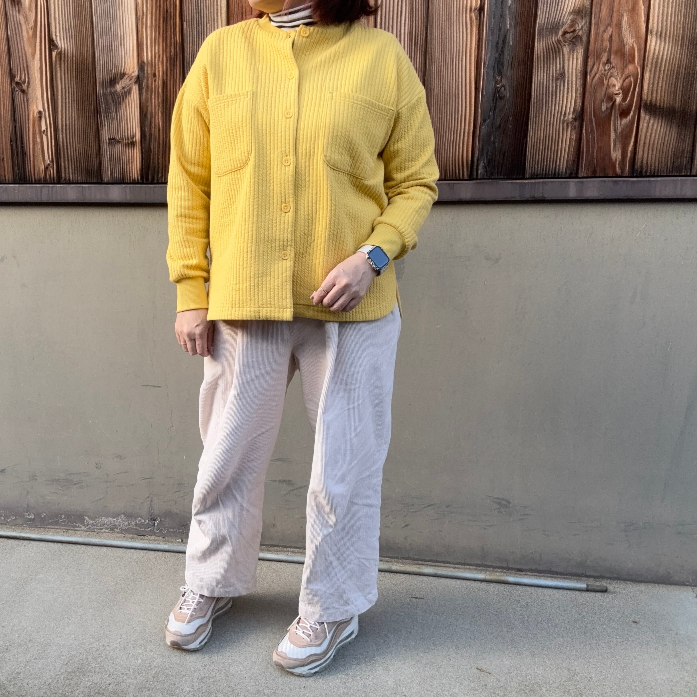 柔らかく軽い素材感で着心地も良く梅春の装いにぴったりな1枚です