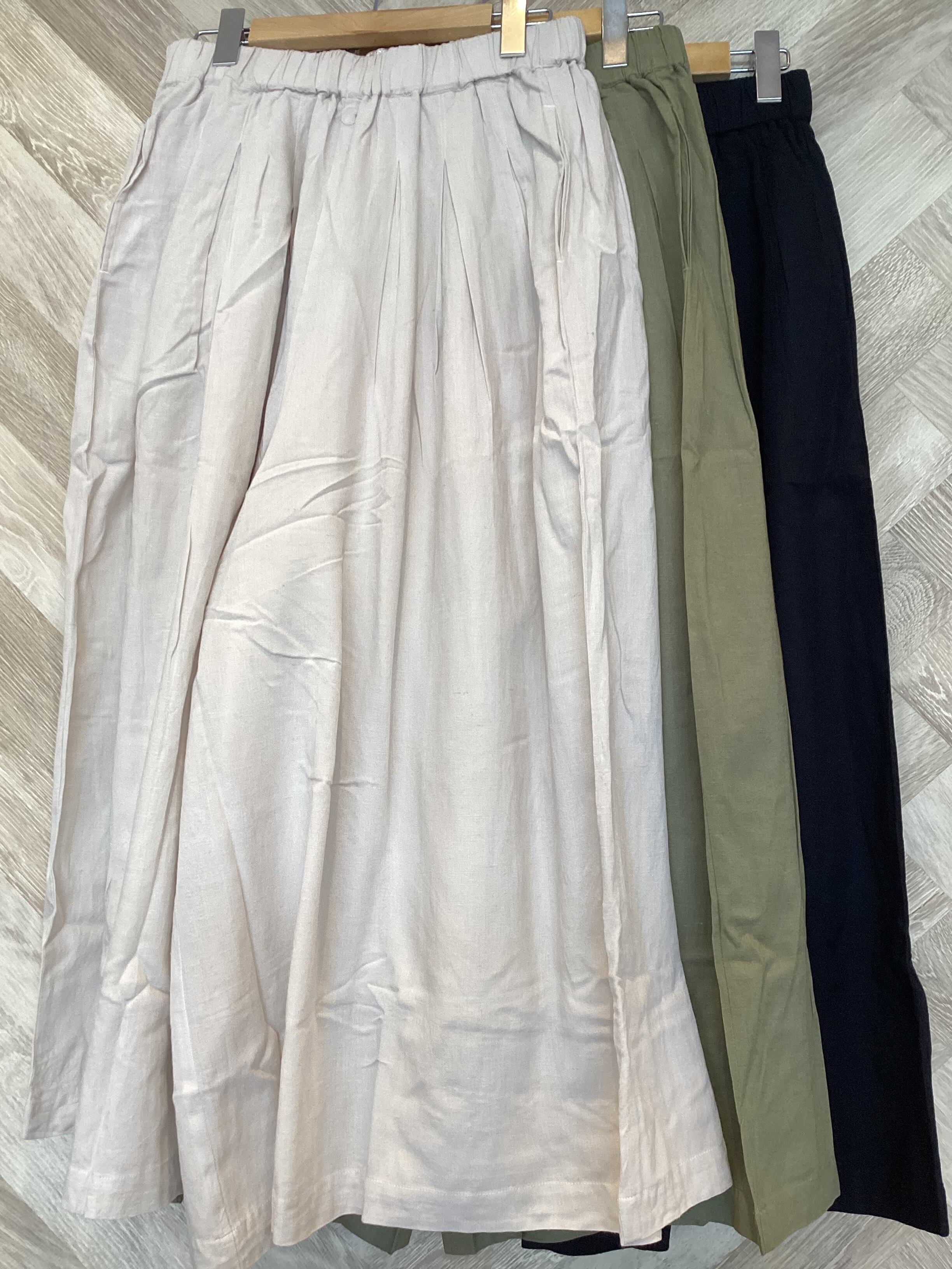 落ち感の綺麗な素材を使用したタックギャザーパンツ